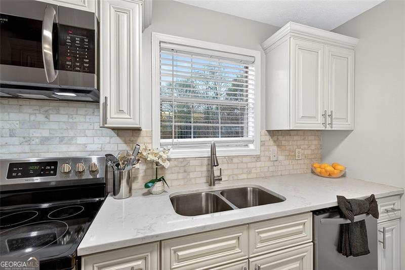Beautifully RENOVATED and move-in ready! NO HOA!!! This updated 3 bed/2 full bath home sits quietly in a cul-de-sac and showcases the owner's commitment to quality and detail with the recent updates. Enjoy brand NEW paint and trim throughout the home, brand NEW LVP floors, and NEW renovated bathrooms. Enjoy your cup of coffee in the cozy living room with the fireplace roasting, then head to the updated kitchen with the quartz countertops, tile backsplash, ceramic flooring, and stainless steel appliances. This floor offers a bright living area, dining space, and two additional bedrooms-ideal for families or a roommate-style layout. What a nice open concept. Also...you can turn one of the rooms into a guest bedroom, office, or a gym. The heart of the home is the private lower-level, the spacious owner's suite! It features an updated full bath and a brand-new custom closet. All the space needed for your wardrobe! Located just minutes from Publix, Kroger, shopping, dining, and 20 minutes to downtown and the airport, this home offers comfort, convenience, and exceptional value. A true gem-don't miss it!