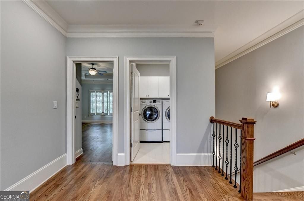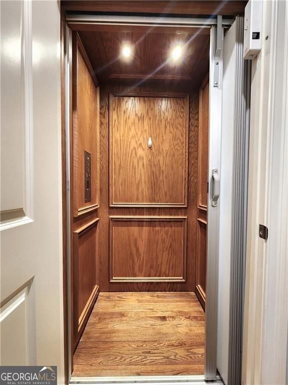 Stunning 4 BR/3.5 BA with ELEVATOR in gated intimate community conveniently located in Sandy Springs near North Buckhead. Walk to Trader Joes and Chastain Park! This spacious townhome features oak hardwoods throughout and an elevator connecting all floors. All rooms are bathed in natural light and windows have plantation shutters. Enter the cozy 2-story foyer and step into the family room complete with gas fireplace and built-in bookshelves. Separated by columns, the formal dining room with coffered ceiling and wainscoting has a butlers pantry connecting to the chef's kitchen boasting professional grade SS appliances and new vent hood. Adjacent breakfast room opens to the private deck with a stone fireplace with new insert and gas logs, for year-round enjoyment. Ascend upstairs to a central loft space centered between the elevator, two bedrooms (and a shared hall bathroom), the laundry room (with washer and dryer), and the primary suite with tray ceiling, large walk-in closet with shelving system, large tiled shower, jetted tub, and dual sinks. Fully finished terrace level has a large room that can be an additional BR, office or gym, and a full bath. In addition, there is access to 2-car garage with storage space and the private wooded backyard patio. Additional guest parking is nearby. Fantastic location near shopping, restaurants, parks, and medical facilities. Don't miss what could be your new home!