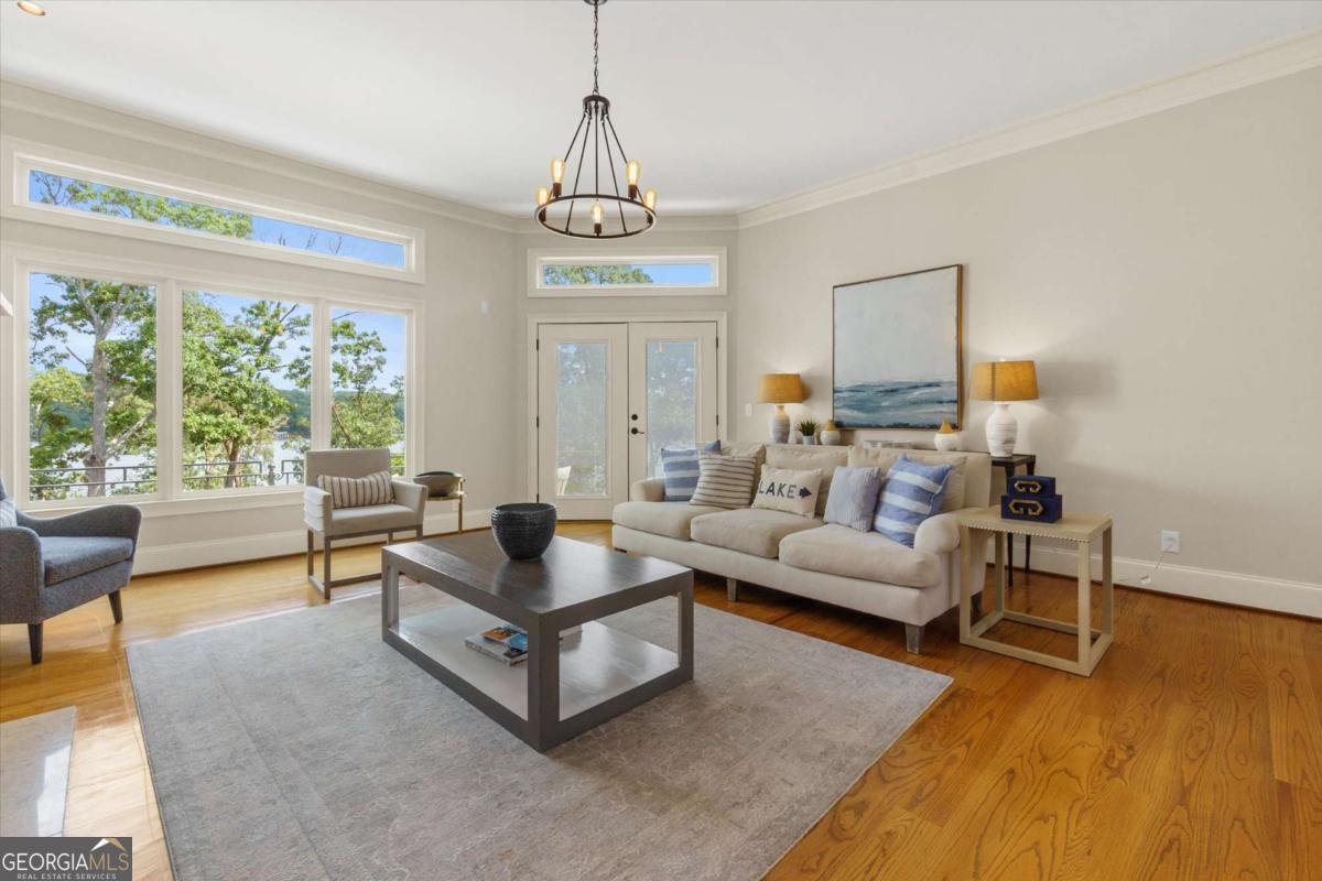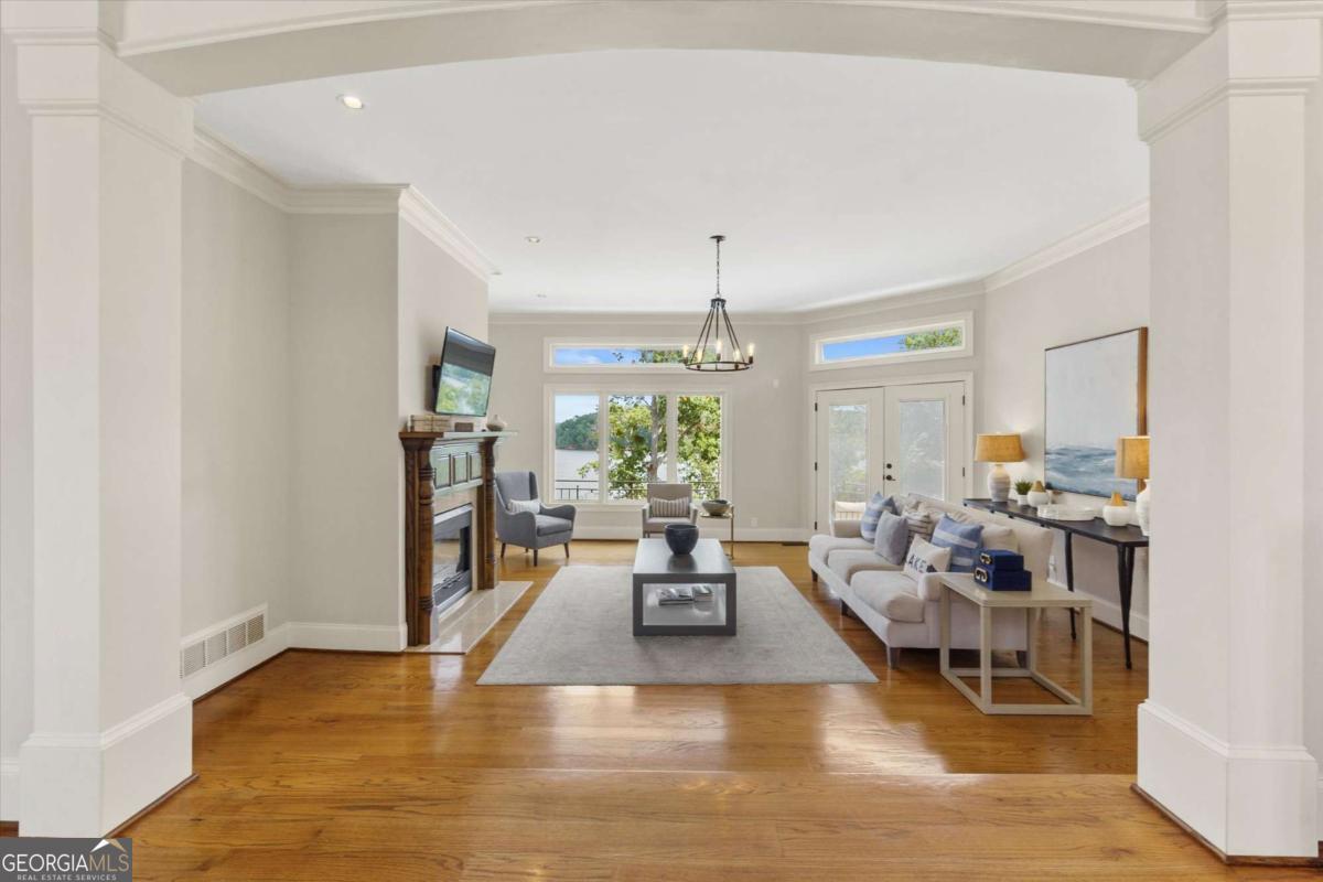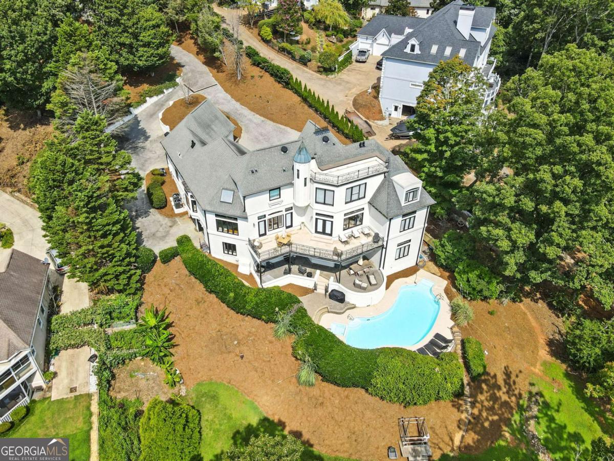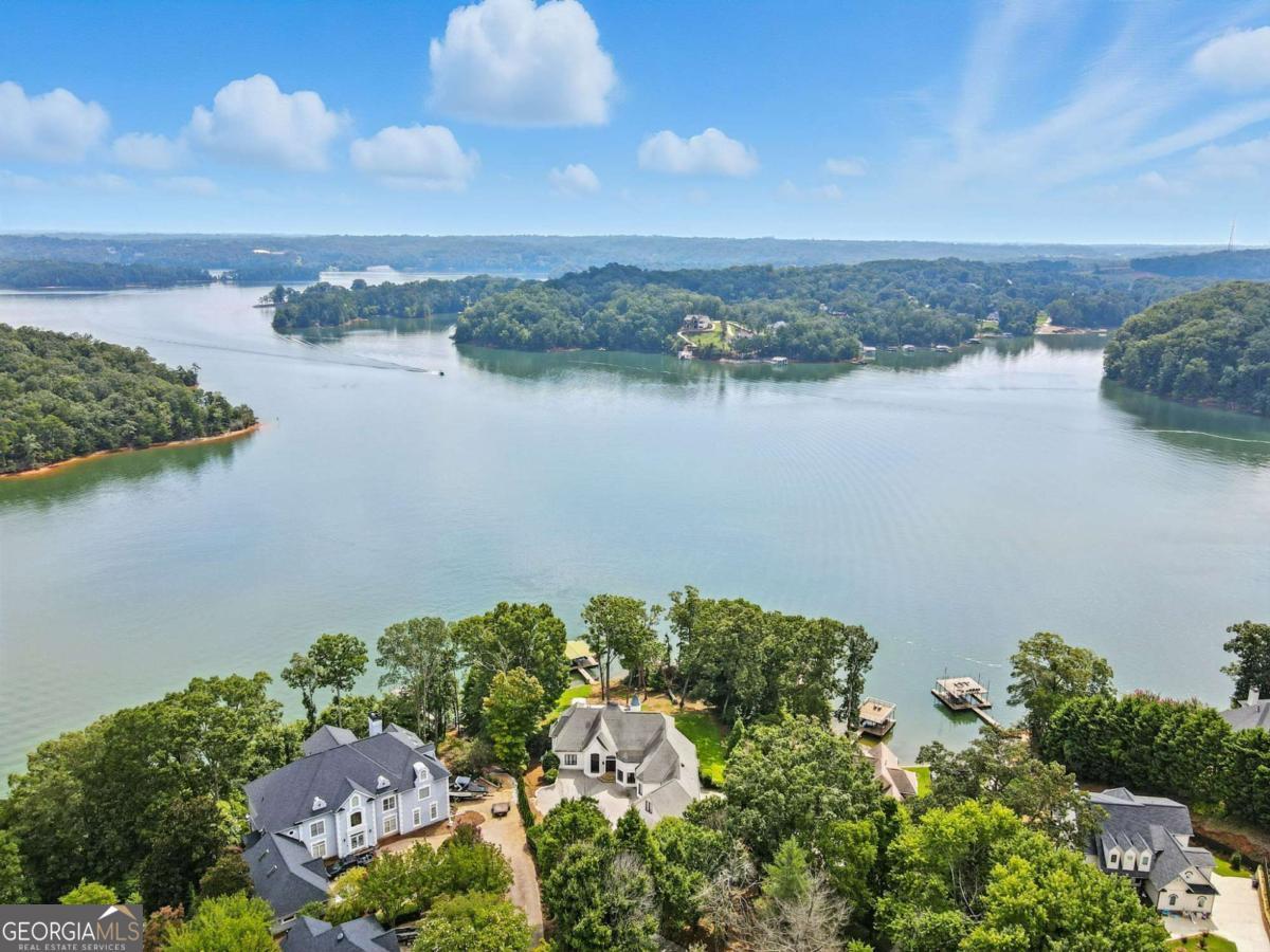 PRICED TO SELL!! Introducing The Chateau on Lanier - lakeside luxury living with this meticulously maintained estate on Lake Lanier. The estate's prime lakefront location includes a private DOUBLE-SLIP dock in DEEP water, which is just an easy stroll from the home. This residence is a truly exceptional, fully furnished 8-bedroom, 6.5-bathroom gated home and is perfectly positioned on 0.72 acres, offering breathtaking panoramic lake views from every level. Enter a world of elegance where stunning lake views are framed by multi-level balconies and expansive windows. The main level of this three-story estate features a chef's kitchen with commercial-grade stainless steel appliances, seamlessly flowing into the keeping room and dining area-all with captivating lake views. The family room opens to a balcony, making a perfect place to enjoy your morning coffee. The main level includes a massive mudroom with double washers and dryers, a sink, and a rear staircase leading to the terrace level. Two spacious guest bedrooms, one a secondary primary suite with their own private en suite bathroom, enhance the main level's appeal. Take the spiral staircase to the upper level, where the primary suite offers French doors, ample space, and panoramic lakefront views. This suite features a massive en suite bathroom with double vanities, a whirlpool tub, a grand tile walk-in shower, and a custom-built closet with an additional washer and dryer for added convenience. An additional secondary bedroom on this level also boasts an updated en suite bathroom. The terrace level is an entertainer's dream or the perfect in-law suite, complete with a full kitchen, bar, and living room. This level also includes three guest bedrooms and two full bathrooms, plus a spacious bunkroom ideal for a media room or recreational space that could be easily converted back to an additional two car garage with tons of storage. Enjoy year-round swimming in the heated pool. Perfectly located just off Dawsonville Highway, this estate is minutes away from dining, shopping, and more, offering the ultimate blend of serene lakefront living and modern convenience. Don't miss the opportunity to own this exceptional lakeside retreat.