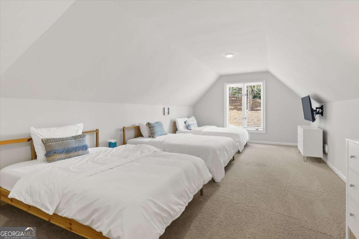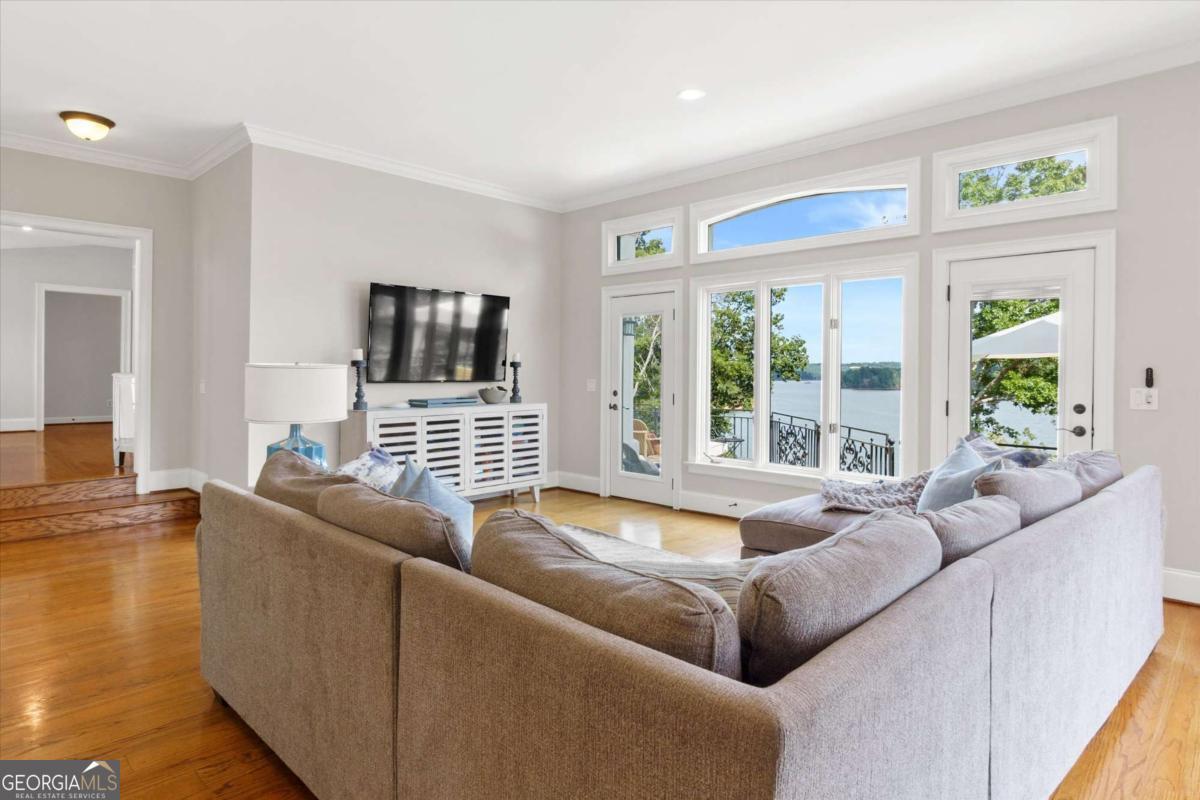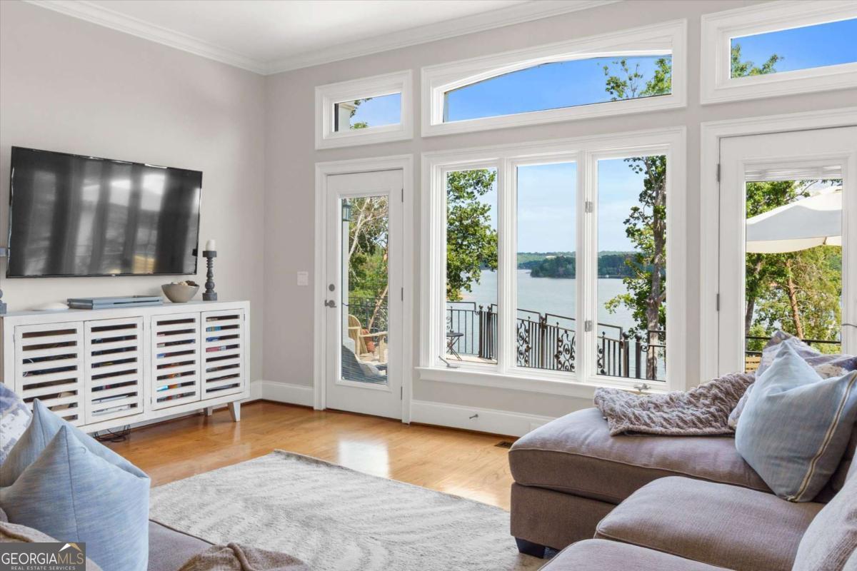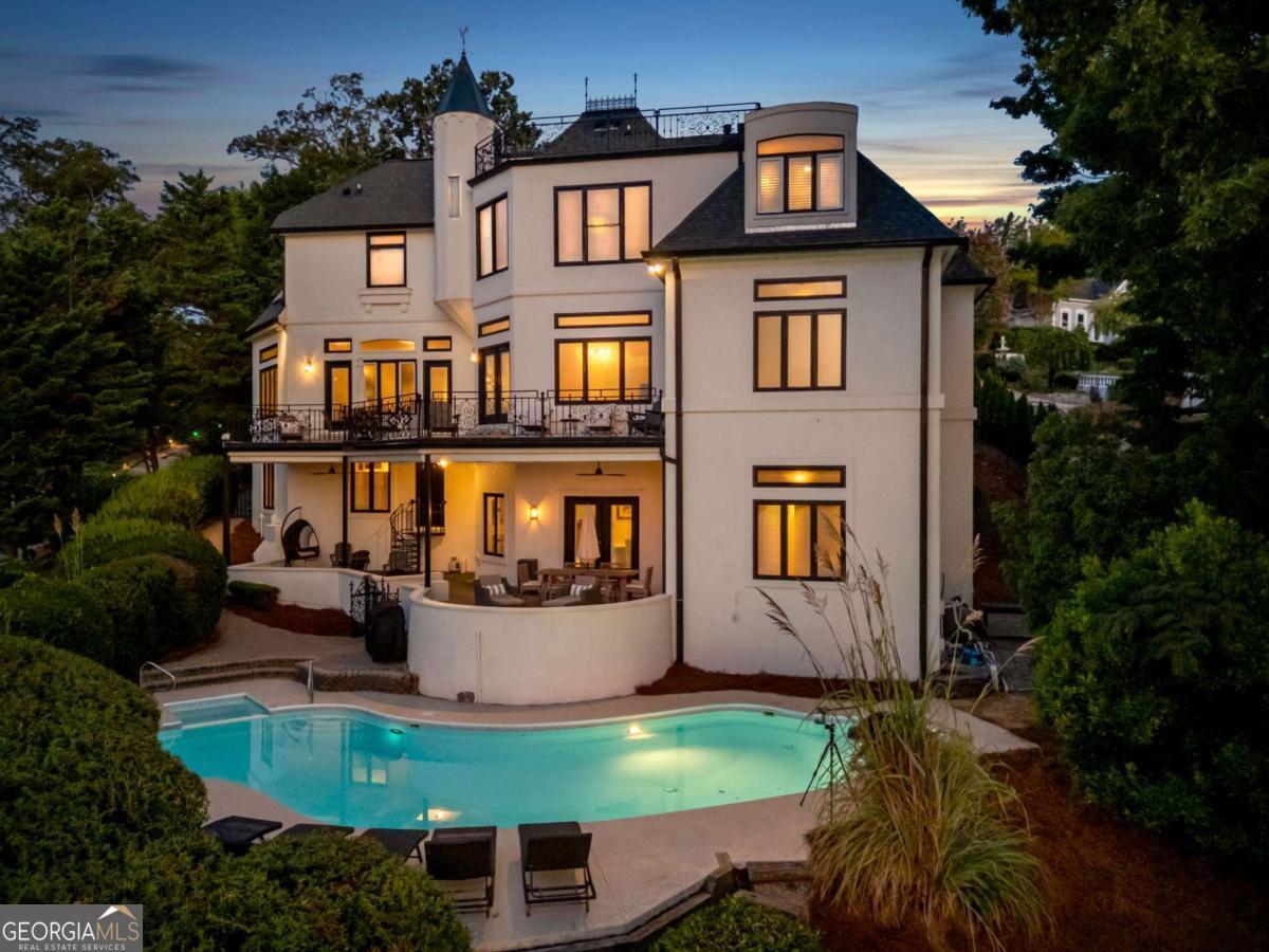 PRICED TO SELL!! Introducing The Chateau on Lanier - lakeside luxury living with this meticulously maintained estate on Lake Lanier. The estate's prime lakefront location includes a private DOUBLE-SLIP dock in DEEP water, which is just an easy stroll from the home. This residence is a truly exceptional, fully furnished 8-bedroom, 6.5-bathroom gated home and is perfectly positioned on 0.72 acres, offering breathtaking panoramic lake views from every level. Enter a world of elegance where stunning lake views are framed by multi-level balconies and expansive windows. The main level of this three-story estate features a chef's kitchen with commercial-grade stainless steel appliances, seamlessly flowing into the keeping room and dining area-all with captivating lake views. The family room opens to a balcony, making a perfect place to enjoy your morning coffee. The main level includes a massive mudroom with double washers and dryers, a sink, and a rear staircase leading to the terrace level. Two spacious guest bedrooms, one a secondary primary suite with their own private en suite bathroom, enhance the main level's appeal. Take the spiral staircase to the upper level, where the primary suite offers French doors, ample space, and panoramic lakefront views. This suite features a massive en suite bathroom with double vanities, a whirlpool tub, a grand tile walk-in shower, and a custom-built closet with an additional washer and dryer for added convenience. An additional secondary bedroom on this level also boasts an updated en suite bathroom. The terrace level is an entertainer's dream or the perfect in-law suite, complete with a full kitchen, bar, and living room. This level also includes three guest bedrooms and two full bathrooms, plus a spacious bunkroom ideal for a media room or recreational space that could be easily converted back to an additional two car garage with tons of storage. Enjoy year-round swimming in the heated pool. Perfectly located just off Dawsonville Highway, this estate is minutes away from dining, shopping, and more, offering the ultimate blend of serene lakefront living and modern convenience. Don't miss the opportunity to own this exceptional lakeside retreat.