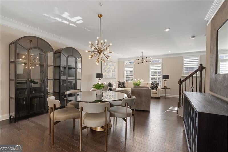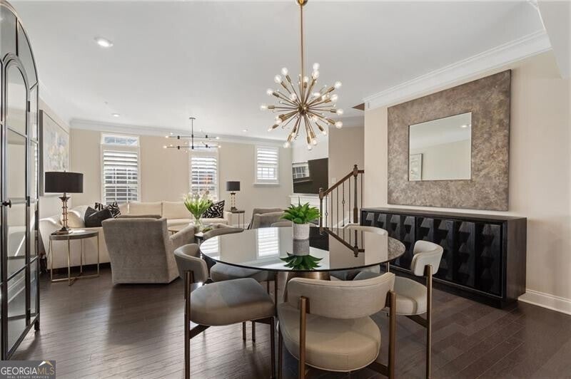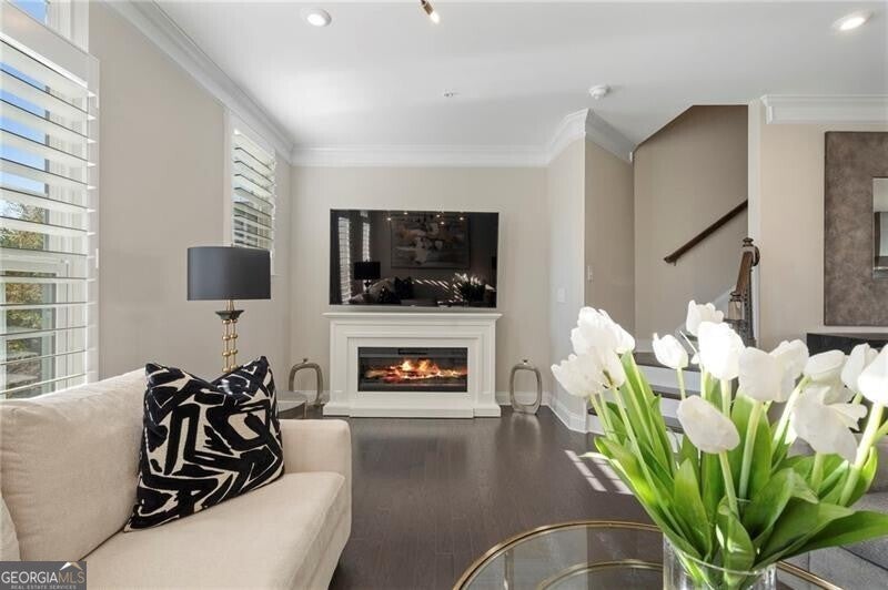 PRIME LOCATION! Live in luxury in this beautiful community tucked away in a peaceful setting across the street from the AVALON, and just minutes from downtown Alpharetta! This meticulously maintained 3-story townhome is light and bright, has a modern open concept kitchen with plenty of counter space and cabinets for storage, a spacious living/dining area, high-end finishes throughout including quartz countertops, subway tile backsplash, stainless appliances and a stainless hood, a large island with seating and undercounter cabinets for even more storage. NO carpeting just hardwoods, with the exception of the bathrooms which have tile. Plantation Shutters throughout!! Relax and unwind with your morning coffee or entertain your guests "al fresco" style on the full-size deck off the kitchen. On the upper level you will find the primary suite with a large walk-in closet and an ensuite spa-like bath retreat, vanity with double sinks and all white cabinets, an oversized shower and large tile flooring. Also on the upper level is a second bedroom with a private ensuite bath with tub/shower, vanity with double sinks and all white cabinets, tiled flooring, and a large walk-in closet. The laundry area completes this level. The first floor is where you will enter the home with a spacious foyer with high ceilings, coat closet, third bedroom or office and a full-size bath with walk-in shower and tiled floors. Access to the rear entry two car garage with room for storage. The easy lifestyle at Braedan is maintenance free, and has several green spaces, fire pits and a pool with lanai room. Location location location is the understatement, you are just a short distance to the Avalon & downtown Alpharetta featuring upscale shopping, restaurants & entertainment. Easy access to Big Creek Greenway, the AlphaLoop walking trail and to GA 400. Close proximity to Northpointe Parkway, Windward Parkway, and highly rated schools!