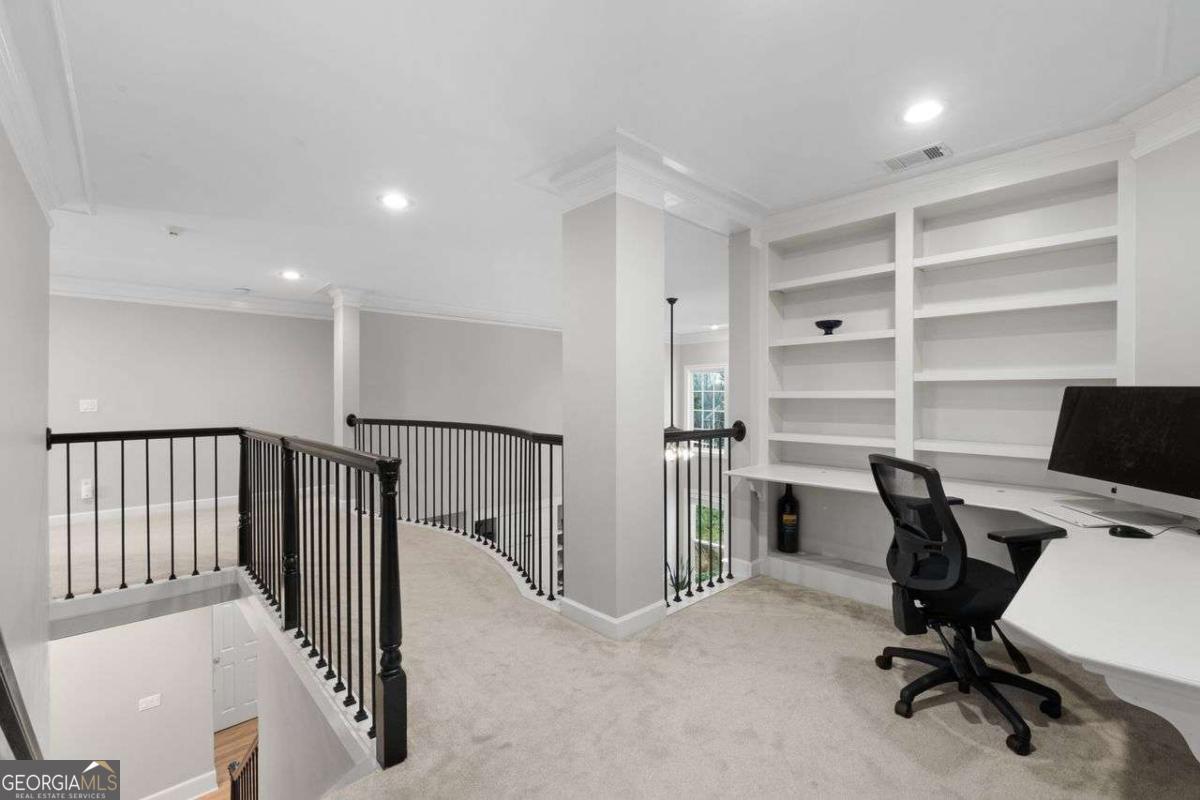 Welcome to Hampton Hall, a neighborhood celebrated not only for its beautiful homes but for the strong sense of connection among its residents. From swim and tennis teams to holiday gatherings and year-round activities, this community offers something for everyone. Nestled in the heart of Alpharetta, this updated traditional brick home provides the perfect balance of comfort, style, and an exceptional lifestyle. A gracious two-story foyer sets the tone the moment you enter, opening to a floor plan designed for both everyday living and effortless entertaining. The fireside great room, filled with natural light, flows into a bright and inviting kitchen and breakfast area. The kitchen has been refreshed with crisp white cabinetry, stainless steel appliances, double ovens, a new subway tile backsplash, and rich black granite countertops. From here, you can step outside to a stone patio overlooking the wonderfully level backyard - a private space ideal for relaxing, hosting friends, or future outdoor amenities. The main level includes multiple living areas, offering tremendous flexibility. A formal dining room, living room, full bathroom, office and a comfortable den/TV room create plenty of space for gatherings, quiet work, or leisure. Upstairs, the primary suite serves as a luxurious retreat. A spacious sitting area, spa-inspired bathroom with dual vanities, oversized shower, soaking tub, and separate his-and-hers closets ensure comfort and convenience. A versatile bonus room adjoins the suite and is perfectly suited for a nursery, home office, Peloton space, or bonus closet. A beautifully designed custom study with built-in shelving is ideal for remote work or homework. Three additional bedrooms complete the upper floor-one with its own ensuite bath and two connected by a Jack-and-Jill bath. The finished terrace level expands the home's living space even further. This level offers a media area, a game or recreation zone, a fitness room, a bedroom or office, a full bath, and abundant storage-perfect for guests, hobbies, or movie nights. The backyard is a true asset-flat, private, and usable-perfect for play, gardening, or adding a pool, spa, or outdoor kitchen. A three-car garage enhances functionality and storage. Residents of Hampton Hall enjoy resort-style amenities including a pool, clubhouse, four tennis courts, soccer field, playground, and an active social calendar that fosters connection throughout the year. The home also sits within the award-winning Johns Creek High School district. With effortless access to the Big Creek Greenway, the upcoming Waters Road Park, Newtown Park, Ocee Park, Avalon (8 minutes), and Alpharetta's vibrant downtown district (10 minutes), this home offers not only a beautiful place to live but a lifestyle that is truly unmatched.