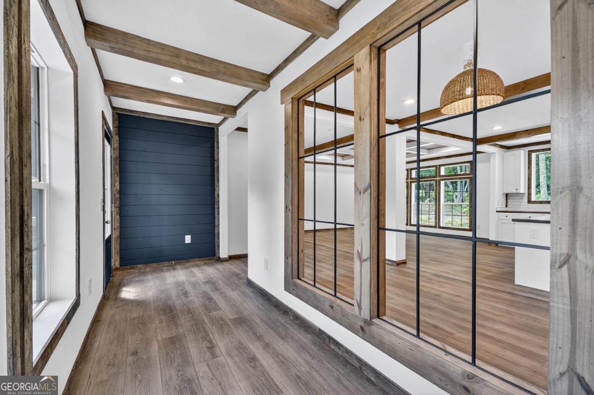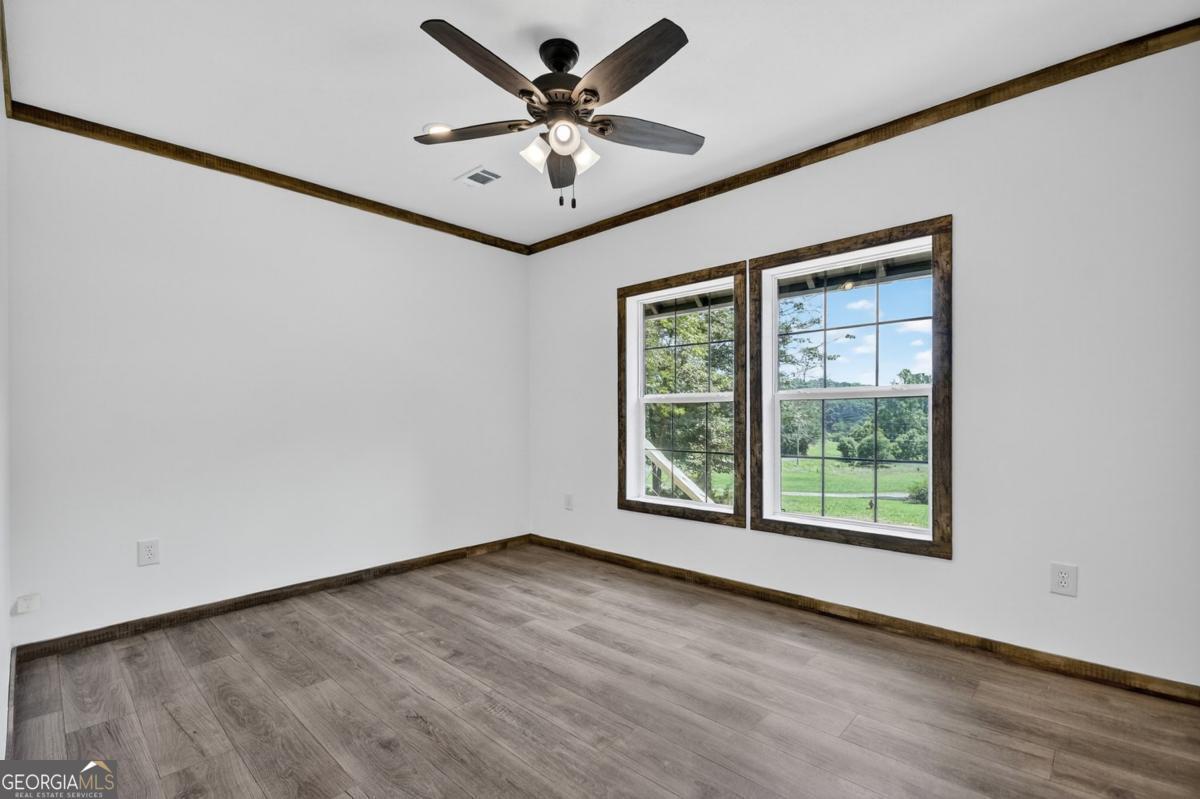 This brand-new modern farmhouse ranch offers the best of style, space, and serenity. Sitting on a generous, level lot surrounded by mature trees and panoramic mountain views, it combines country charm with well-crafted modern details throughout. The crisp white exterior, black awnings, and durable metal roof set the tone for an inviting, low-maintenance design. Inside, enjoy a thoughtfully designed open floor plan featuring luxury vinyl floors, bright white walls with warm wood trim, and a cozy great room with decorative ceiling beams. The kitchen is made for both entertaining and everyday living, complete with custom cabinetry, upgraded stainless steel appliances, apron sink, large island, and bar seating. A butler's pantry and mudroom entry-complete with storage and a seating area-add both functionality and style. The sunroom at the front offers extra space to unwind or host guests, while a dedicated office/hobby room provides flexibility. The spacious primary bedroom offers a spa-inspired ensuite bath with a stand-alone tub, walk-in shower, double vanity, and a custom walk-in closet that might just be more organized than your best intentions.Two roomy guest bedrooms share a full bath with a garden tub and plenty of elbow room. Smart home features add convenience, and the level driveway gives easy access with ample parking. You'll be just minutes from the charm of Blue Ridge and McCaysville, with trails, orchards, rivers, and everyday essentials close at hand... You can expect to save up to 50% on utility costs with this home's energy efficient design. Not to mention - this home's warranty does not expire until May of 2030! An abundance of extras such as custom tile backsplashes, storage building...a must see for full time home, getaway, or investment...