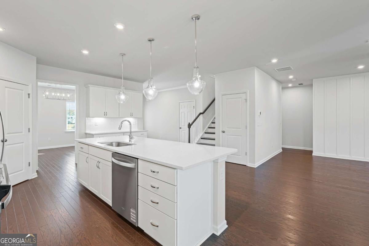 Welcome home to Berkeley Mill, Forsyth County's highly desired new construction community in Cumming, Georgia. This beautiful Mitchell home features an expansive kitchen, formal dining room, covered back patio, and guest suite with full bathroom on first floor. Enjoy entertaining in your bright kitchen with oversized island and open-concept layout, making it easy to host while still being part of the action in the nearby formal dining room and gathering room. Designer finishes have been selected and include white cabinets, quartz countertops and engineered hardwoods throughout the first floor. Your owner's retreat is located on the second floor and features a tray ceiling and walk-in shower plus soaking tub, and oversized walk-in closet. The secondary bedrooms are spacious and offer walk-in closets. Don't miss the loft towards the back of the second floor- this space makes for an ideal media room or home office. Private, tree-lined backyard with upgraded landscaping. Berkeley Mill is more than a neighborhood- it's a lifestyle, with amenities such as a pool with cabanas, playground, approximately 3 miles of walking trails, and neighborhood fire pit. Enjoy being within proximity to the new Cumming City Center, Cumming Aquatic Center, Lake Lanier, and only 1 mile from GA-400. List price reflects current builder specials. Prior to contract, pricing and promotions are subject to change without notice. Call/Text to book an appointment today before this home is gone!