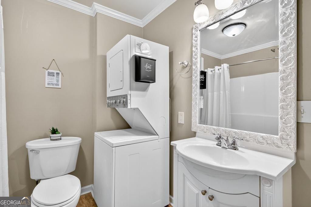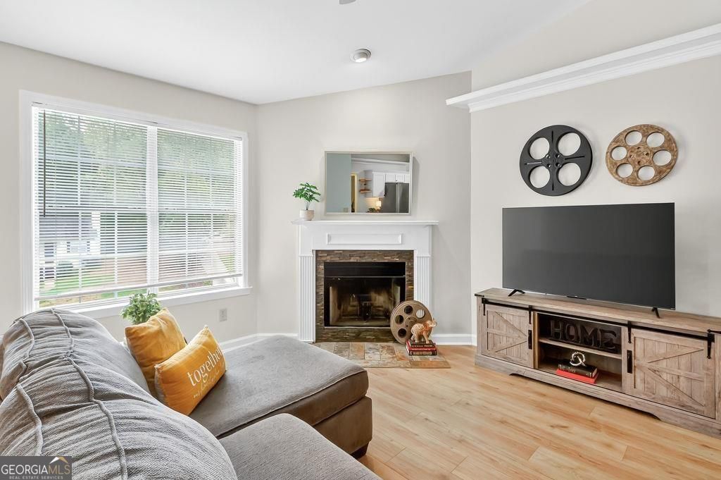 A rare find-3/2 plus 2/1... yep, two homes in one! The main level offers three bedrooms and two full baths, while the finished terrace apartment adds two more bedrooms and a full bath-perfect for multi-generational living or rental income, with no rental restrictions. The terrace level has its own private entrance, full kitchen, living and dining area, washer/dryer, and a spacious pantry or storage room. The current owners leased and hosted 30+ day short-term rentals. Inside, the open floor plan features NEW floors on both levels, vaulted ceilings in the living room and a bright eat-in kitchen with a breakfast bar and large pantry. The main-level primary suite includes a large walk-in closet with a custom system. Outside, enjoy a beautifully landscaped lot with a fire pit and koi pond. The two-car garage includes a workshop with a built-in workbench and a secondary mudroom entry to the basement. All this just minutes from GA 400, Port Royale Marina, Pelican Pete's, and Lake Lanier.
