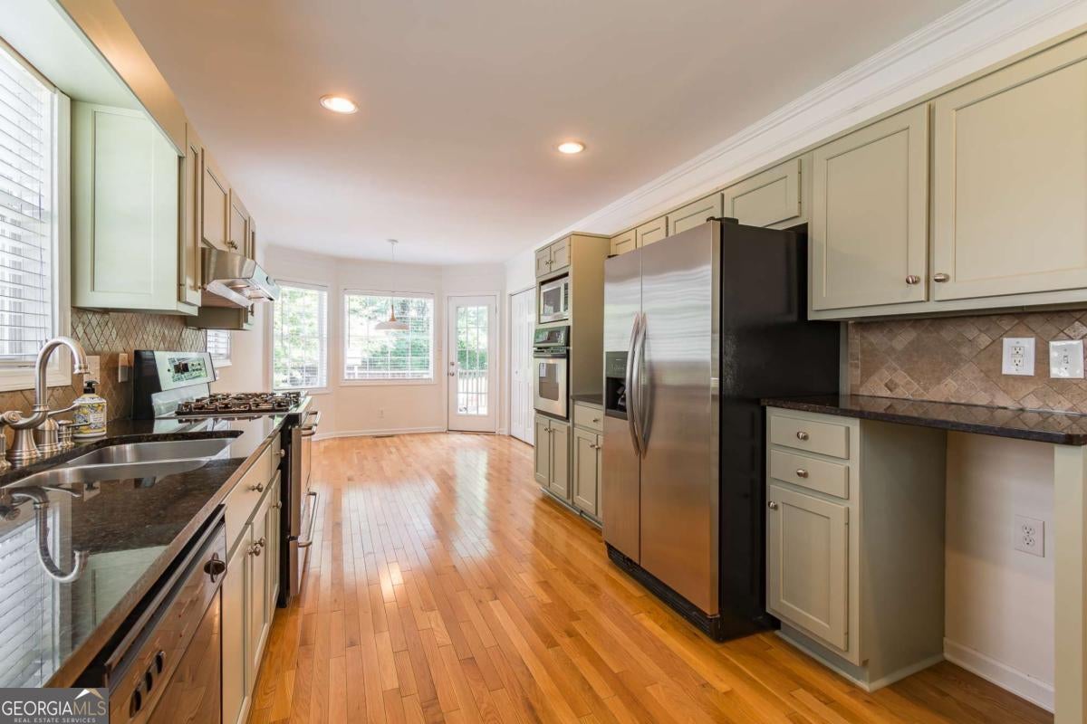 - AppliancesDishwasher, Disposal, Double Oven, Dryer, Gas Water Heater, Microwave, Oven (Wall), Oven/Range (Combo), Refrigerator, Stainless Steel Appliance(s), Washer