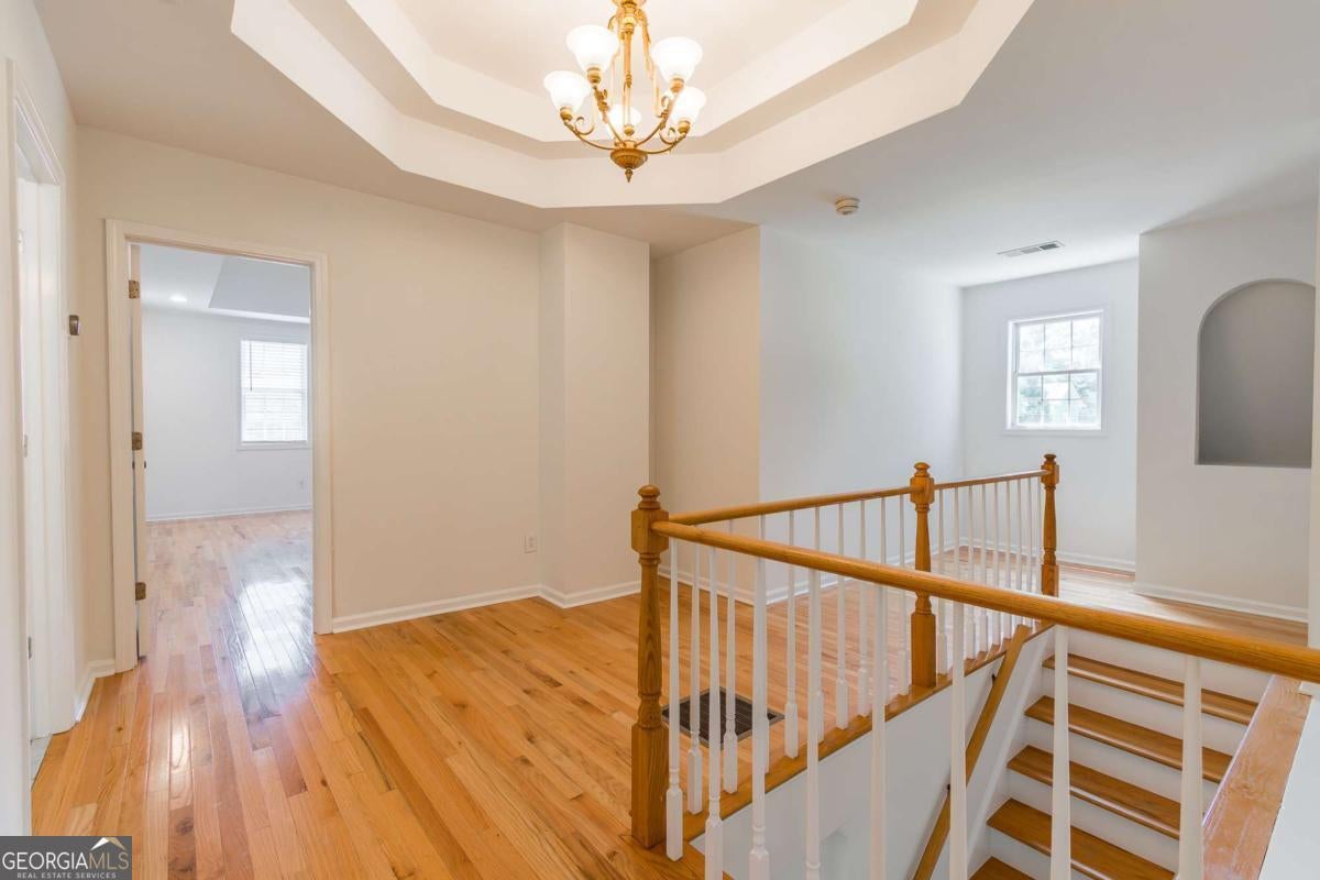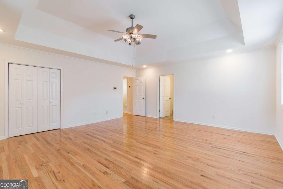 - Interior FeaturesBookcases, High Ceilings, Pulldown Attic Stairs, Soaking Tub, Split Bedroom Plan, Tile Bath, Tray Ceiling(s), Walk-In Closet(s)