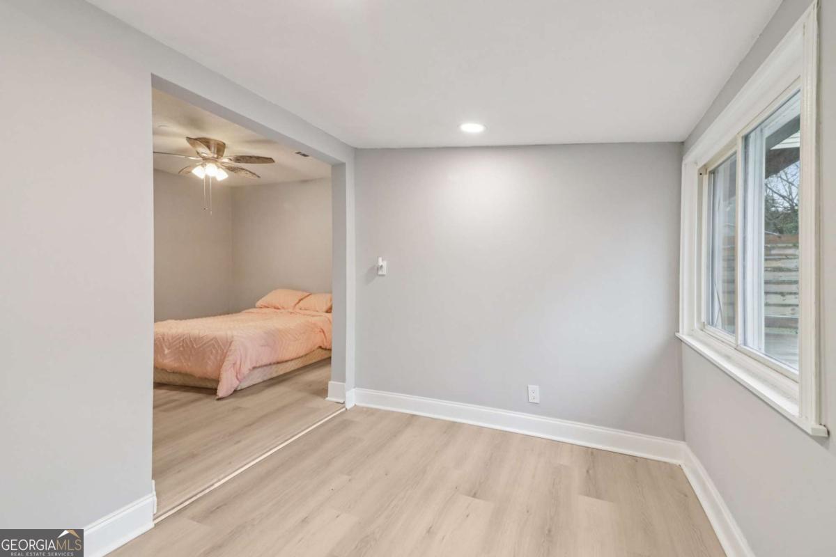 Spacious and beautifully updated, this move-in ready home sits on an impressive 0.8-acre lot with mature trees and plenty of room to enjoy the outdoors! Inside, gorgeous, low-maintenance laminate wood floors flow throughout the main living areas and bedrooms. The bright front room is filled with natural light and works perfectly as a dining room with easy access to the kitchen. The updated, modern kitchen features stainless steel appliances-including a double oven-plus abundant cabinet and counter space. The cozy living room offers a built-in display area for your favorite decor or keepsakes. Retreat to the primary suite, complete with a large sitting area ideal for a home office, nursery, or reading nook. The en-suite bath includes a spacious pedestal tub/shower. Two additional bedrooms share an updated hall bath, and a fourth bedroom provides even more versatility. Step outside to a massive backyard designed for relaxation and entertaining. The expansive deck includes both covered and uncovered areas perfect for grilling, dining, or lounging. Enjoy evenings around the fire pit, take advantage of the storage shed, and make the most of the abundant green space. Updates include new paint, fixtures, flooring, kitchen counters, roof, siding, doors, windows, HVAC, tankless water heater, switches, outlets, and plumbing. Conveniently located near shopping, interstates, and downtown Smyrna Market Village. Book your tour today!