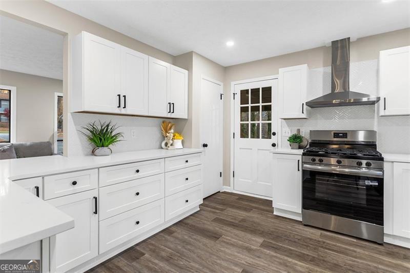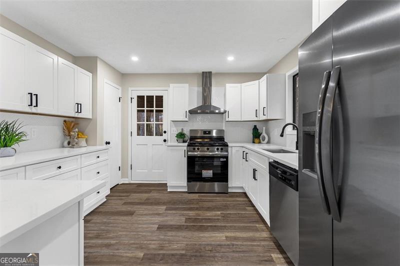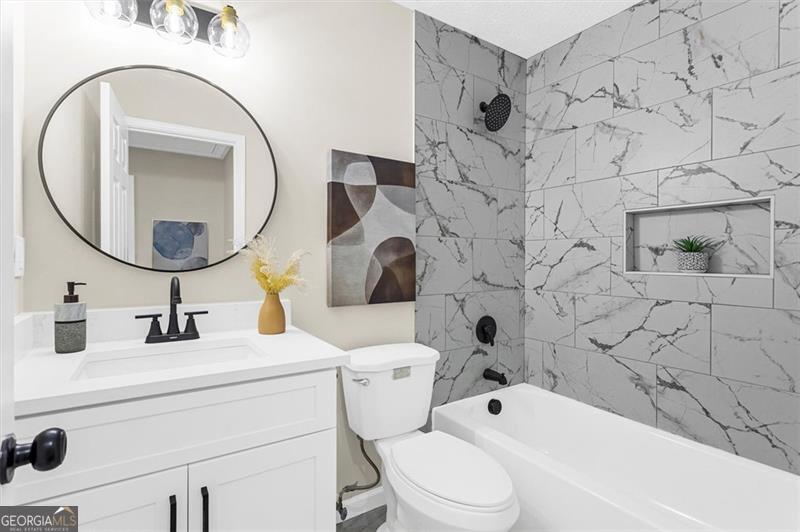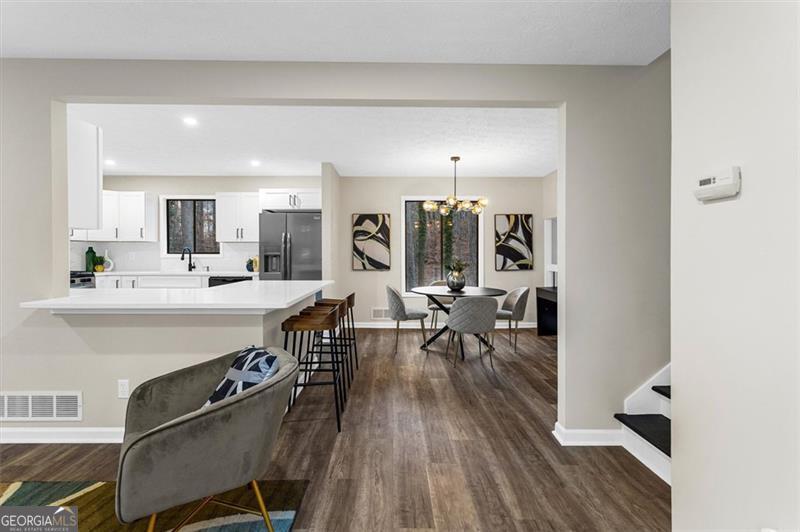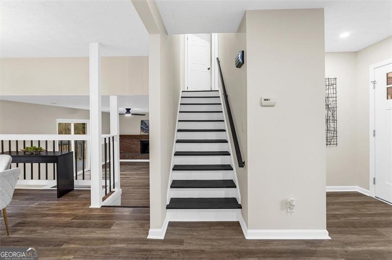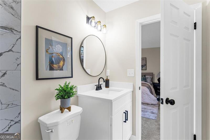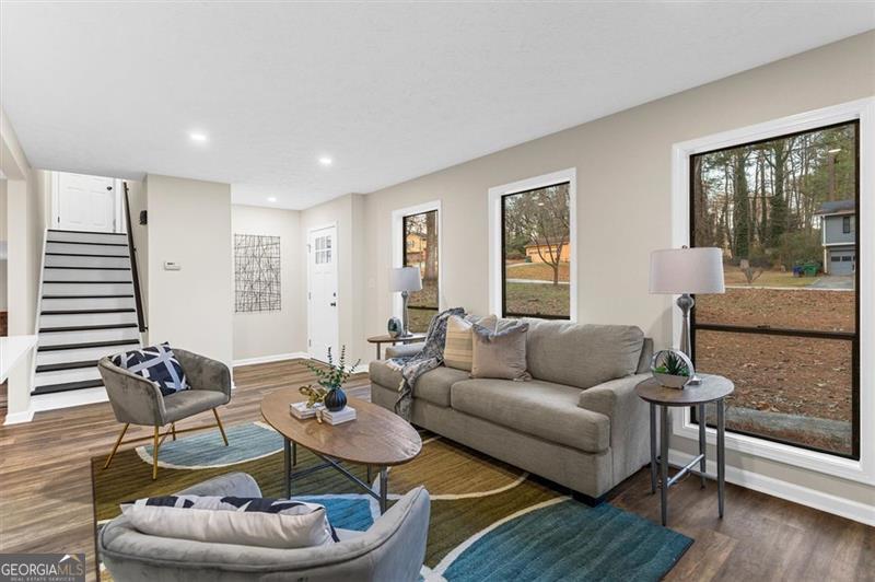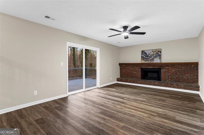 Welcome to this modern split level home conveniently located near Stone Mountain Park and Hwy 78. Step into the open-concept main level, featuring a bright living area, cozy dining room and a fully updated kitchen. The spacious kitchen has plenty of storage space for all your cooking gadgets, with quartz countertops, soft-close white shaker cabinets, and stainless steel appliances-this is the perfect kitchen for entertaining and everyday living. This home offers 4 bedrooms and 3 full bathrooms. Upstairs, you'll find the spacious primary suite featuring a modern en-suite bathroom with a beautifully tiled shower. Additionally, 2 bedrooms and a remodeled bathroom is also located on the upper level, while the remaining bedroom with an ensuite full bath is located downstairs-perfect for added privacy or flexible living arrangements. On the lower level, you will also find a laundry/utility room and a den with a fireplace overlooking the beautiful wooded and serene backyard with an updated deck. Recent upgrades include a new water heater, new HVAC system and newer roof, ensuring comfort and peace of mind for years to come. Don't miss the chance to own this move in ready gem on this nice community!