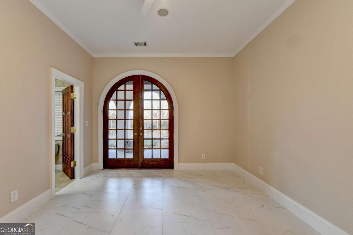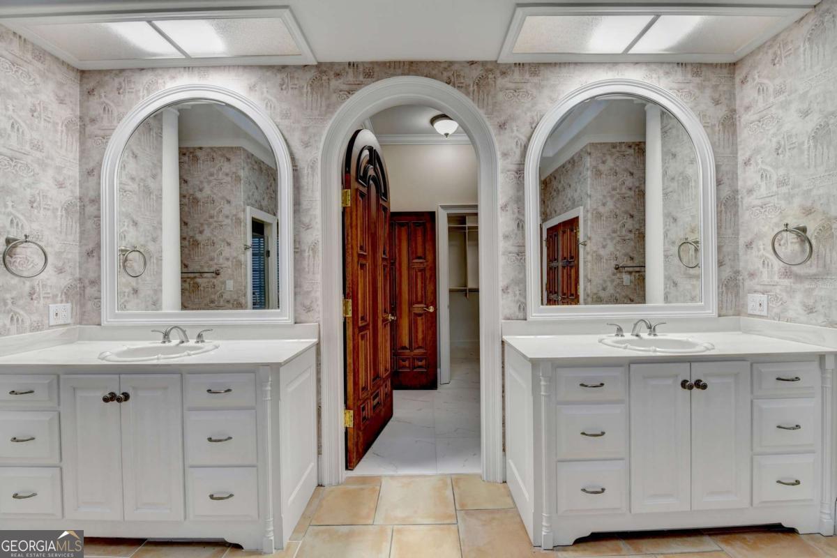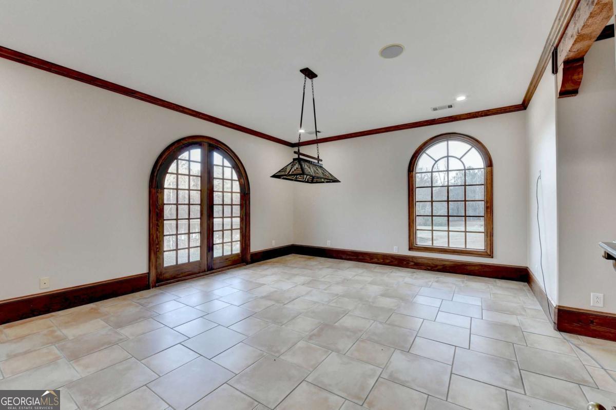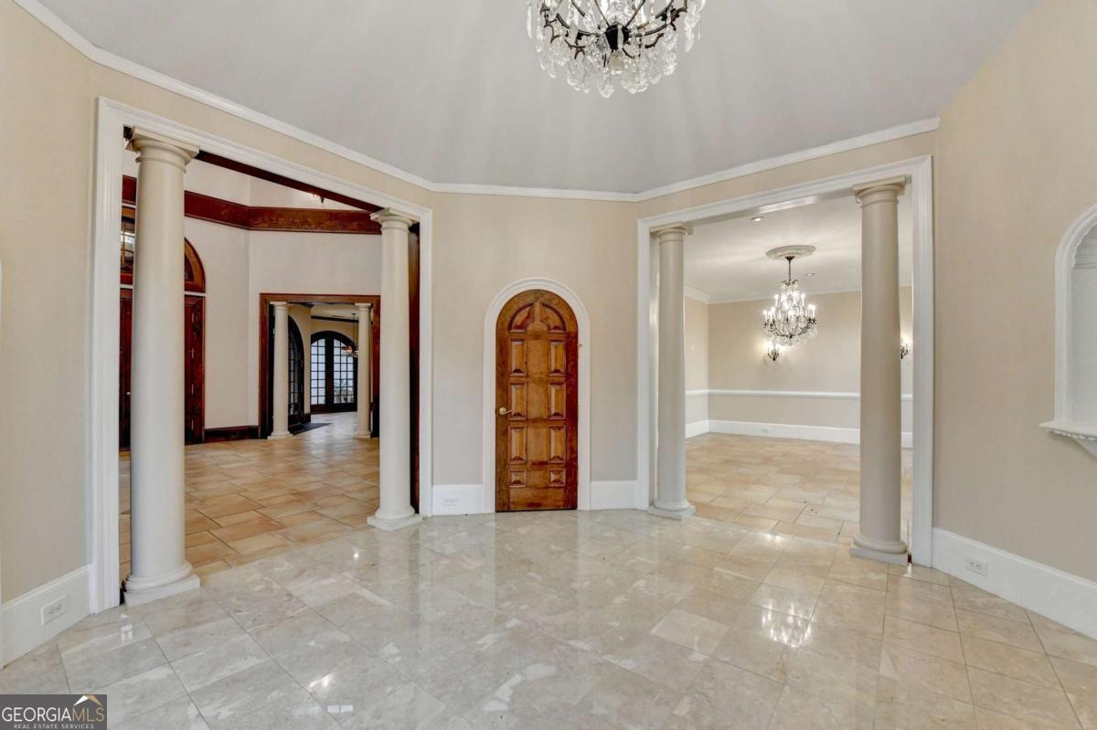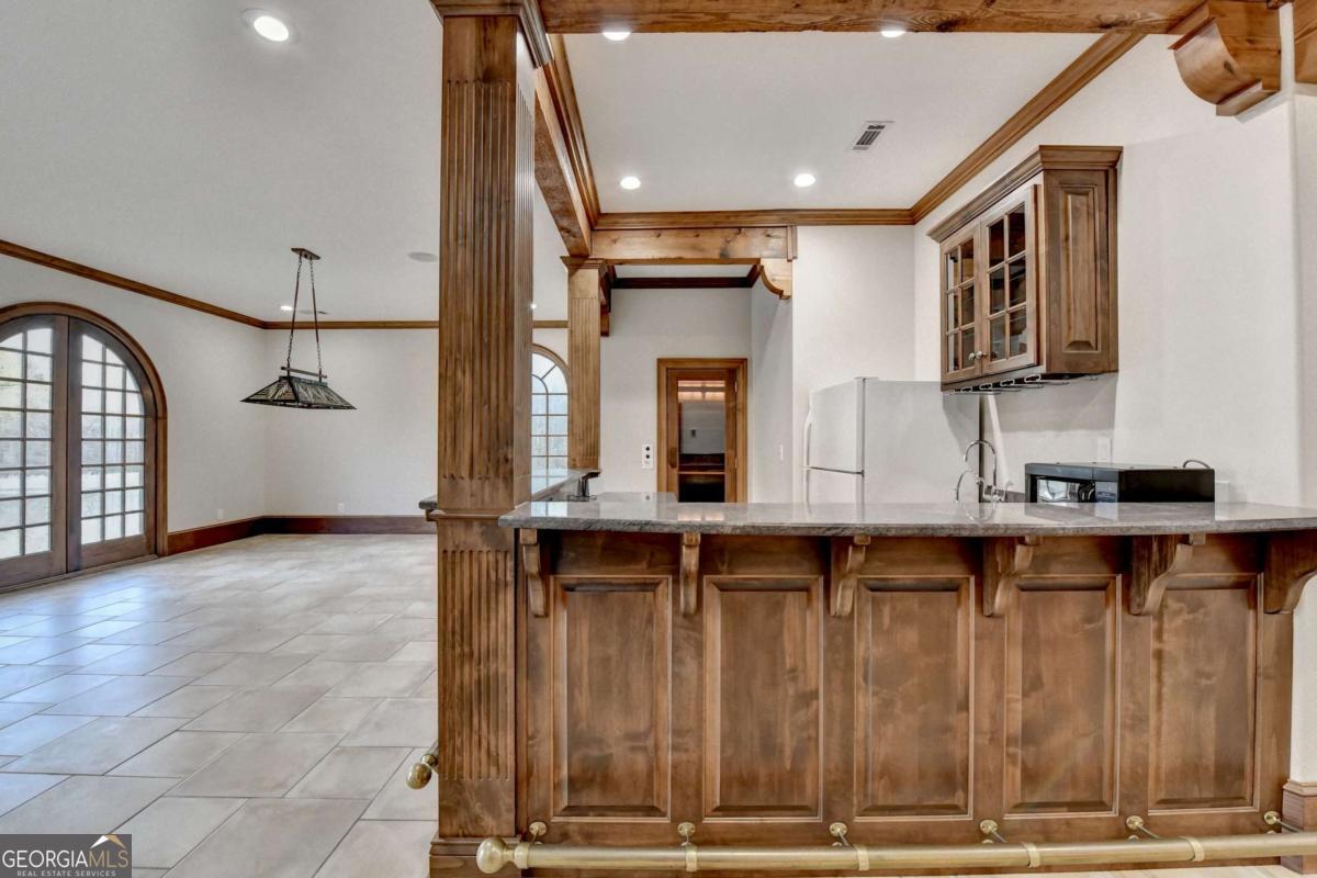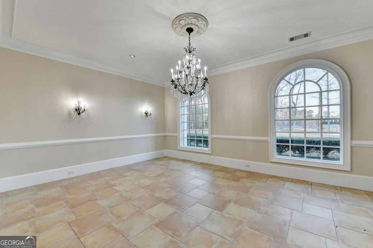 This stunning ESTATE HOME with a PRIVATE LAKE, featuring a meticulously designed Main House Overview: main house with 6,000+ sq. ft. of living space and numerous high-end amenities. Upon entering, custom-carved double wooden entry doors open into a formal solarium-style foyer, which flows into the expansive family room with a cathedral-style ceiling and cedar beams. The room is highlighted by a remote-controlled chandelier and a grand fireplace. Beautiful double doors open to a front courtyard with serene lake views, as well as a massive rear courtyard featuring a water fountain and outdoor rock fireplace. The chef-inspired kitchen is fully equipped with top-of-the-line stainless steel appliances, including a refrigerator, double ovens, microwave, warming drawer, trash compactor, wine fridge, and a Viking gas stove-ideal for any culinary enthusiast. Adjacent to the kitchen is a laundry/mudroom and a pantry that spans the length of the home, providing ample storage, a second dishwasher, and a half bath.The left wing of the home includes a half bath for guests, as well as a stately library/office, which can also serve as a 4th bedroom. This space boasts a fireplace, custom bookshelves, captain's paneling, and a private entrance to a patio with lake views. The luxurious primary suite features a sitting area with a fireplace, a private patio overlooking the lake, a wet bar, two custom closets, and a spacious ensuite bathroom with dual vanities, two toilets, a soaking tub, and a separate shower. The hallway, with arched windows and doors leading to the courtyard, connects to two additional bedrooms, each with a private bath-one featuring a covered patio with lake views. A dedicated entertainment/media room with a full bar, sauna, and lake views completes the living spaces. Throughout the home, you'll find exquisite tile floors, arched doorways, and elegant entryways, all contributing to the refined aesthetic. Guest House/Office: The guest house or office space offers a full kitchen, living room, two bedrooms, and two bathrooms. An oversized garage provides abundant storage space, and the entire guest house is designed with convenience and comfort in mind. This exceptional estate offers the perfect blend of privacy and luxury, while being conveniently located just a short drive from GA-Hwy 11, Historic Covington, Social Circle, Monroe, and minutes to I-20. This dream property is a must-see-schedule your private showing today!
