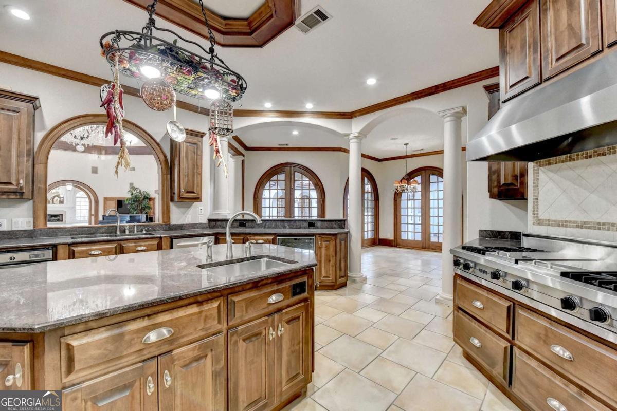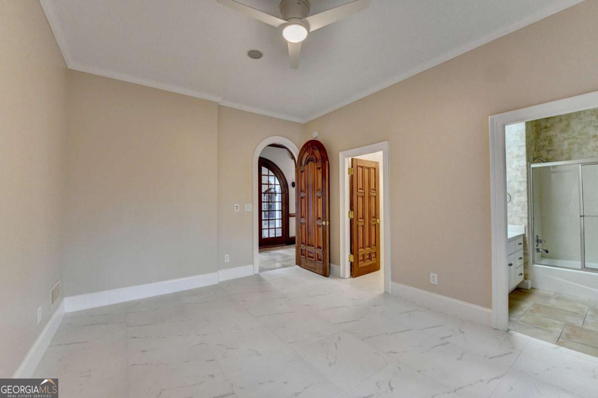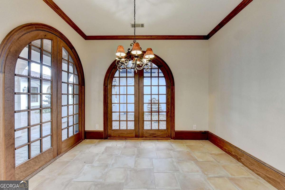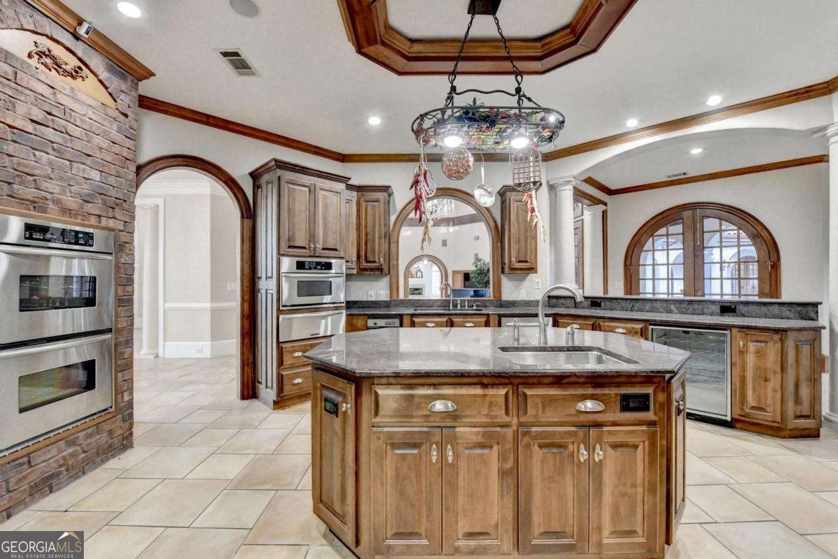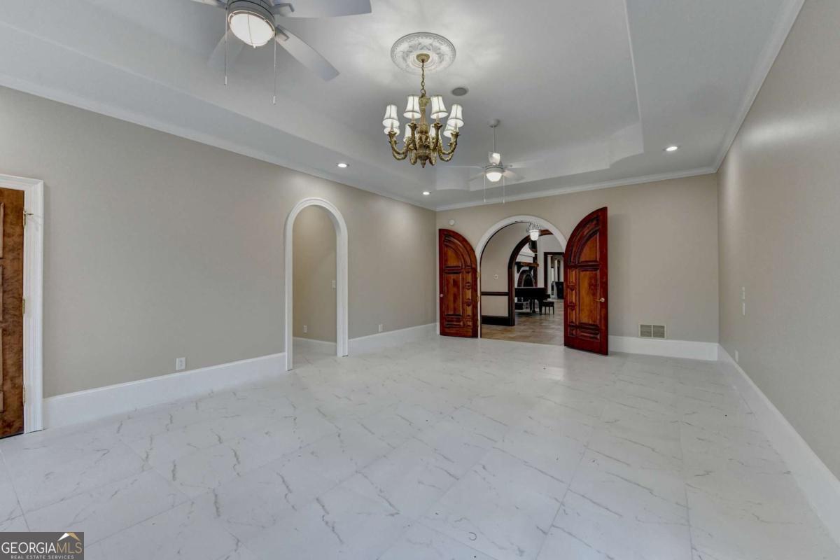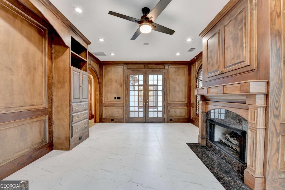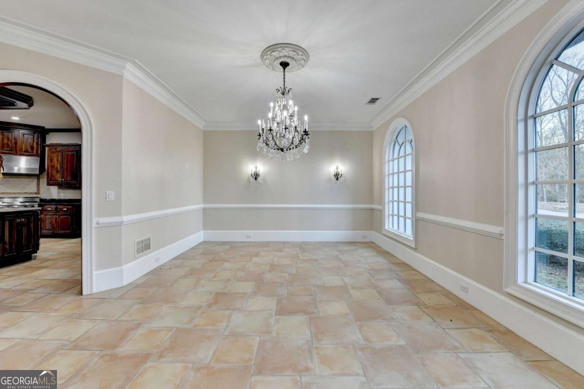 This stunning ESTATE HOME with a PRIVATE LAKE, featuring a meticulously designed Main House Overview: main house with 6,000+ sq. ft. of living space and numerous high-end amenities. Upon entering, custom-carved double wooden entry doors open into a formal solarium-style foyer, which flows into the expansive family room with a cathedral-style ceiling and cedar beams. The room is highlighted by a remote-controlled chandelier and a grand fireplace. Beautiful double doors open to a front courtyard with serene lake views, as well as a massive rear courtyard featuring a water fountain and outdoor rock fireplace. The chef-inspired kitchen is fully equipped with top-of-the-line stainless steel appliances, including a refrigerator, double ovens, microwave, warming drawer, trash compactor, wine fridge, and a Viking gas stove-ideal for any culinary enthusiast. Adjacent to the kitchen is a laundry/mudroom and a pantry that spans the length of the home, providing ample storage, a second dishwasher, and a half bath.The left wing of the home includes a half bath for guests, as well as a stately library/office, which can also serve as a 4th bedroom. This space boasts a fireplace, custom bookshelves, captain's paneling, and a private entrance to a patio with lake views. The luxurious primary suite features a sitting area with a fireplace, a private patio overlooking the lake, a wet bar, two custom closets, and a spacious ensuite bathroom with dual vanities, two toilets, a soaking tub, and a separate shower. The hallway, with arched windows and doors leading to the courtyard, connects to two additional bedrooms, each with a private bath-one featuring a covered patio with lake views. A dedicated entertainment/media room with a full bar, sauna, and lake views completes the living spaces. Throughout the home, you'll find exquisite tile floors, arched doorways, and elegant entryways, all contributing to the refined aesthetic. Guest House/Office: The guest house or office space offers a full kitchen, living room, two bedrooms, and two bathrooms. An oversized garage provides abundant storage space, and the entire guest house is designed with convenience and comfort in mind. This exceptional estate offers the perfect blend of privacy and luxury, while being conveniently located just a short drive from GA-Hwy 11, Historic Covington, Social Circle, Monroe, and minutes to I-20. This dream property is a must-see-schedule your private showing today!