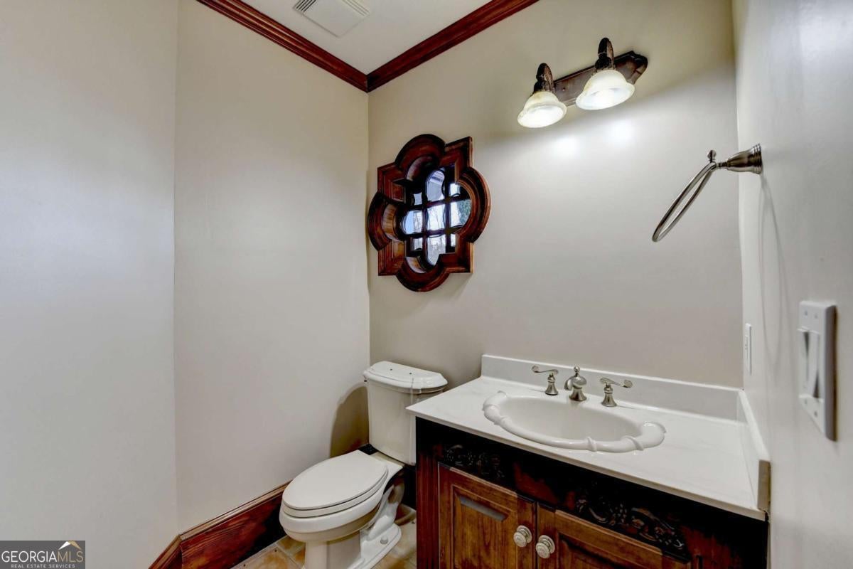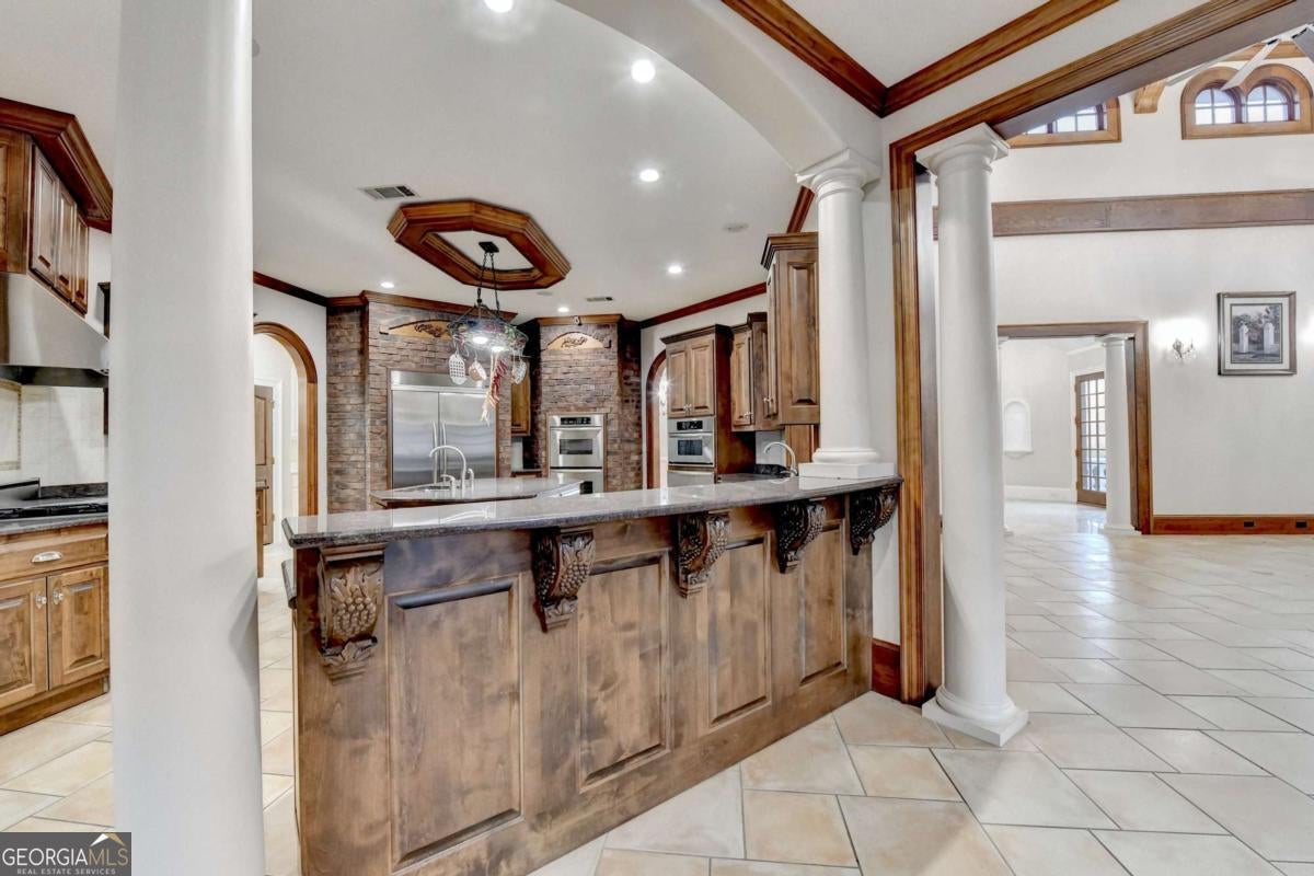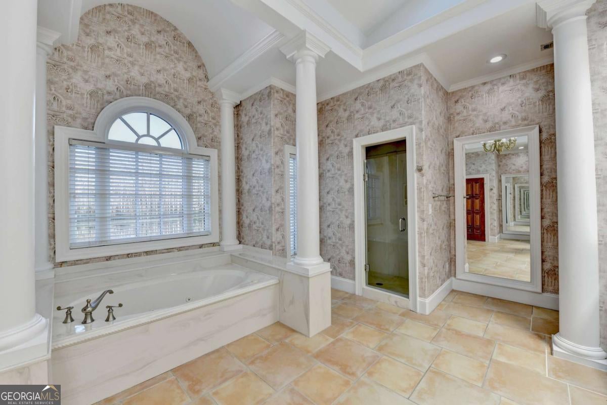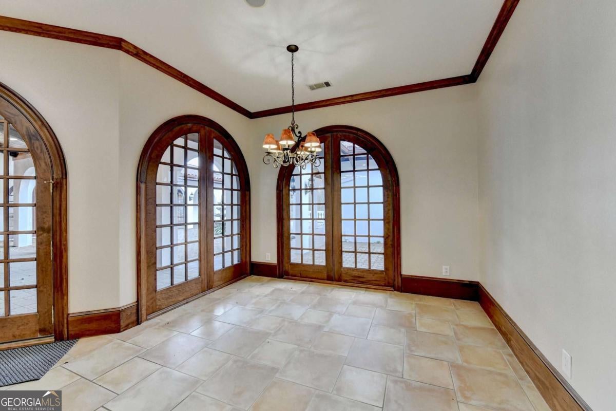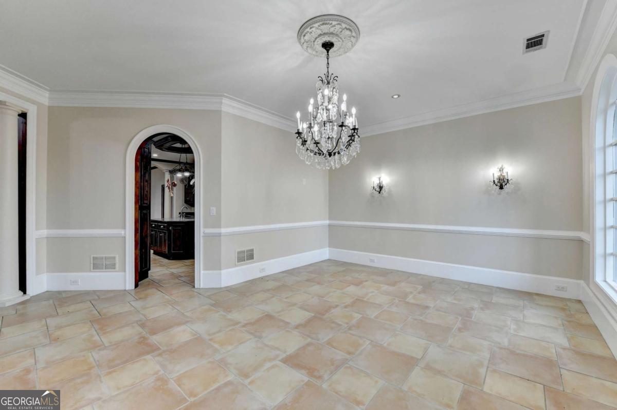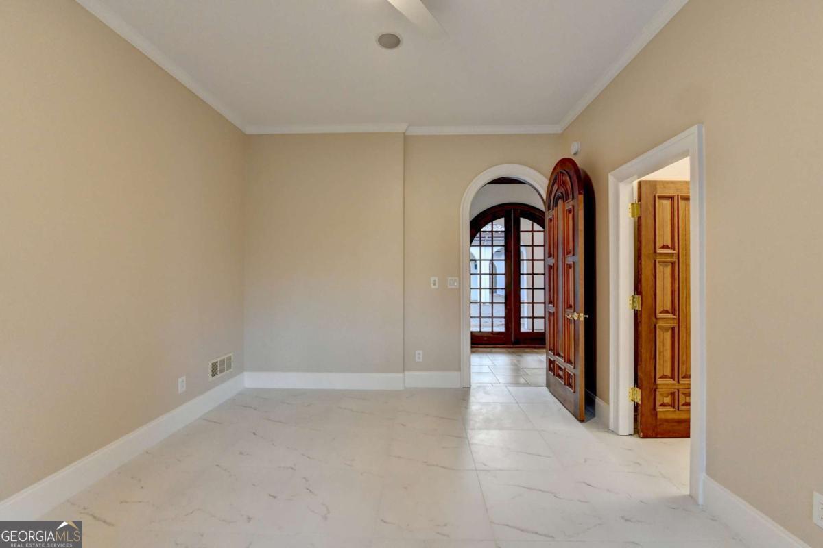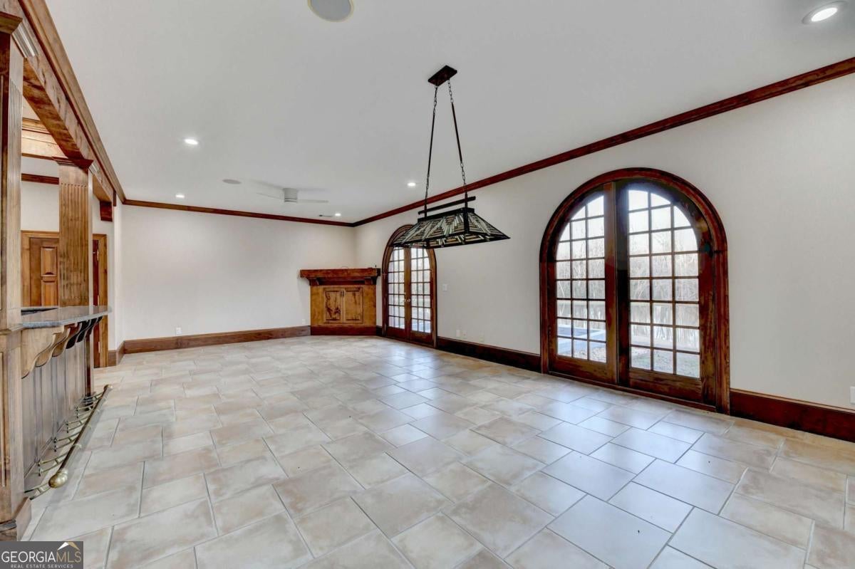 This stunning ESTATE HOME with a PRIVATE LAKE, featuring a meticulously designed Main House Overview: main house with 6,000+ sq. ft. of living space and numerous high-end amenities. Upon entering, custom-carved double wooden entry doors open into a formal solarium-style foyer, which flows into the expansive family room with a cathedral-style ceiling and cedar beams. The room is highlighted by a remote-controlled chandelier and a grand fireplace. Beautiful double doors open to a front courtyard with serene lake views, as well as a massive rear courtyard featuring a water fountain and outdoor rock fireplace. The chef-inspired kitchen is fully equipped with top-of-the-line stainless steel appliances, including a refrigerator, double ovens, microwave, warming drawer, trash compactor, wine fridge, and a Viking gas stove-ideal for any culinary enthusiast. Adjacent to the kitchen is a laundry/mudroom and a pantry that spans the length of the home, providing ample storage, a second dishwasher, and a half bath.The left wing of the home includes a half bath for guests, as well as a stately library/office, which can also serve as a 4th bedroom. This space boasts a fireplace, custom bookshelves, captain's paneling, and a private entrance to a patio with lake views. The luxurious primary suite features a sitting area with a fireplace, a private patio overlooking the lake, a wet bar, two custom closets, and a spacious ensuite bathroom with dual vanities, two toilets, a soaking tub, and a separate shower. The hallway, with arched windows and doors leading to the courtyard, connects to two additional bedrooms, each with a private bath-one featuring a covered patio with lake views. A dedicated entertainment/media room with a full bar, sauna, and lake views completes the living spaces. Throughout the home, you'll find exquisite tile floors, arched doorways, and elegant entryways, all contributing to the refined aesthetic. Guest House/Office: The guest house or office space offers a full kitchen, living room, two bedrooms, and two bathrooms. An oversized garage provides abundant storage space, and the entire guest house is designed with convenience and comfort in mind. This exceptional estate offers the perfect blend of privacy and luxury, while being conveniently located just a short drive from GA-Hwy 11, Historic Covington, Social Circle, Monroe, and minutes to I-20. This dream property is a must-see-schedule your private showing today!