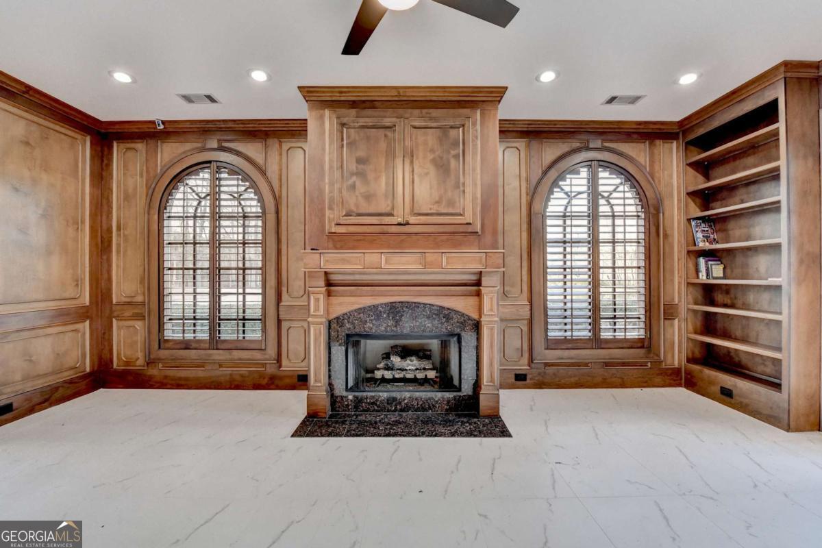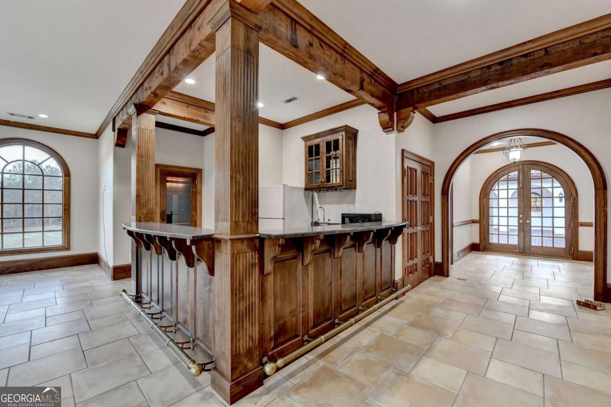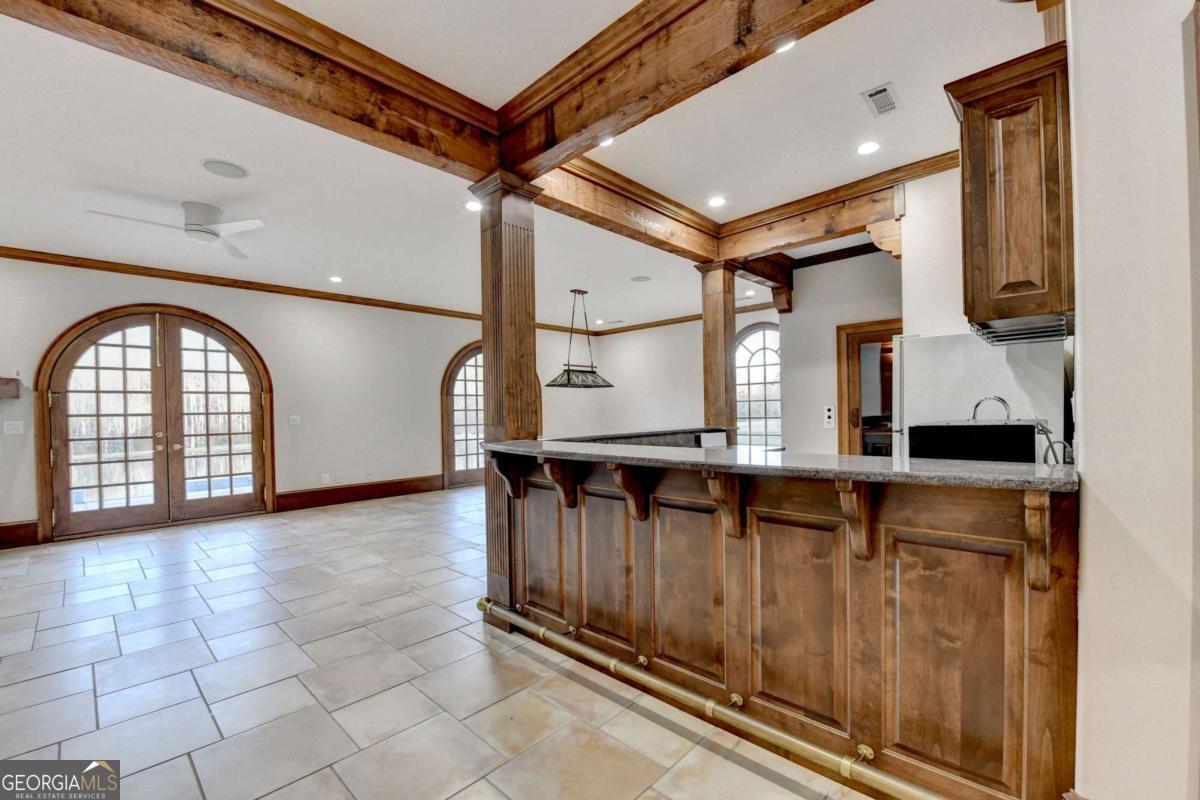 - Interior FeaturesBeamed Ceilings, Bookcases, Double Vanity, Tray Ceiling(s), Walk-In Closet(s), Wet Bar