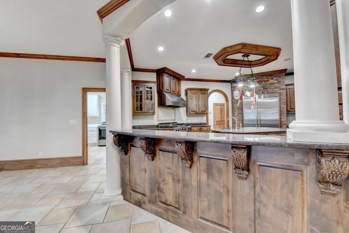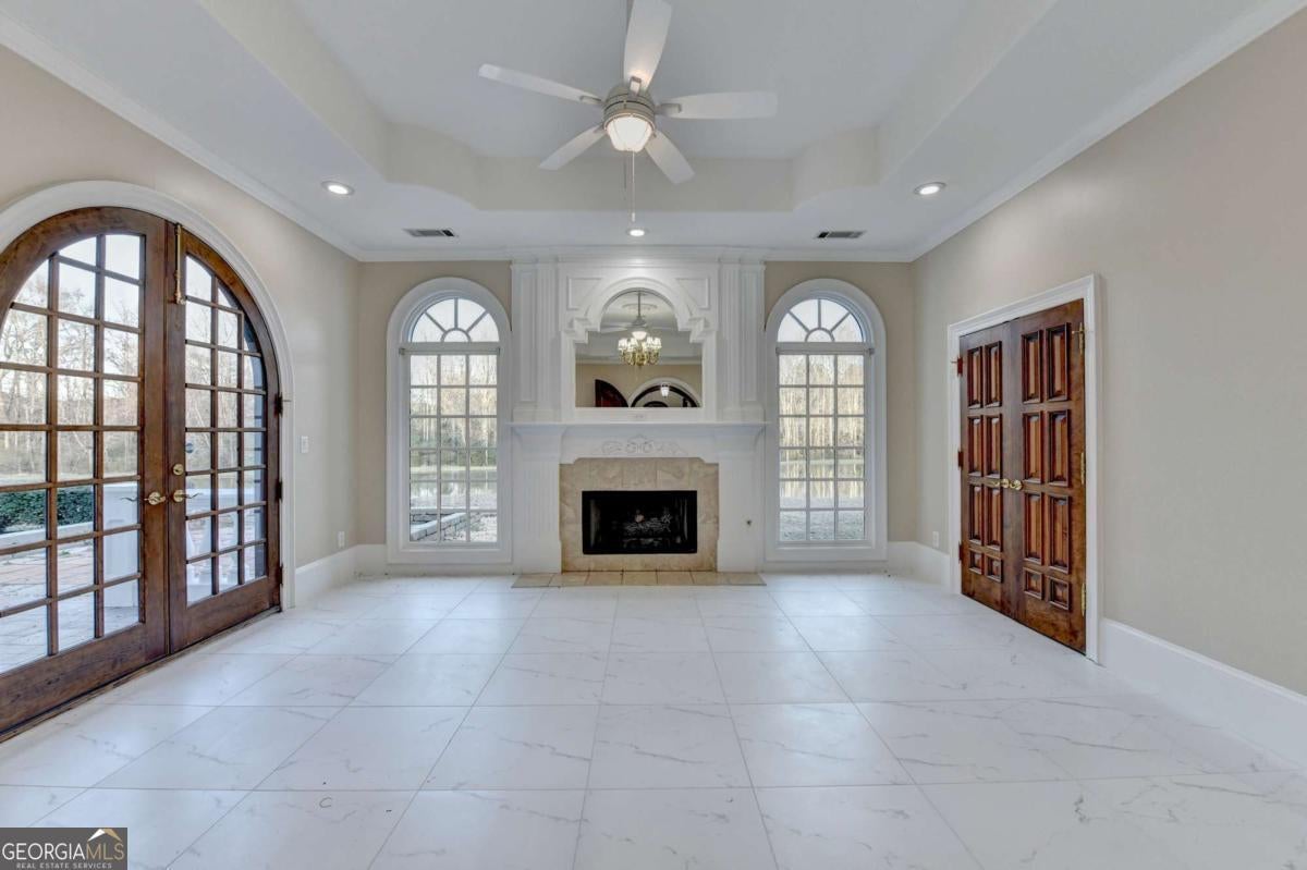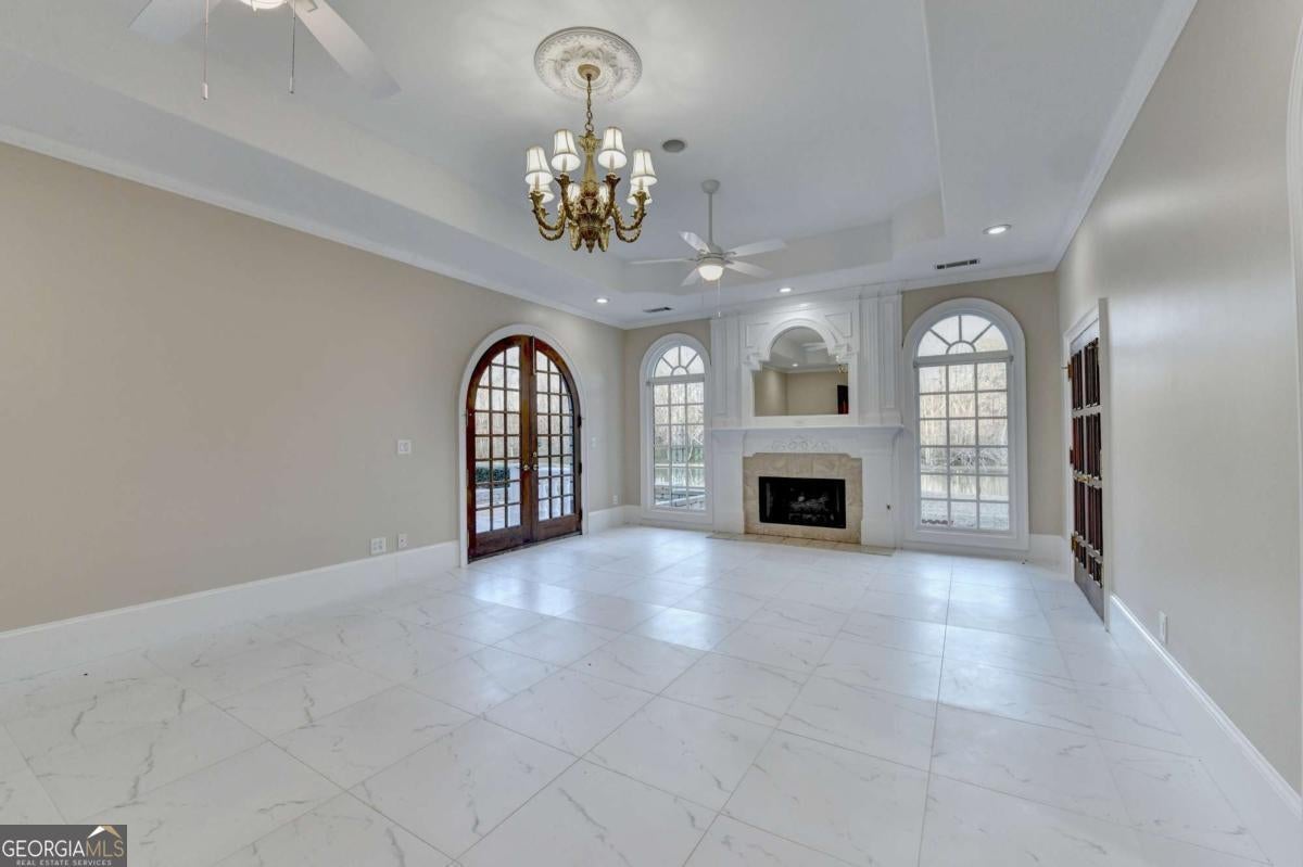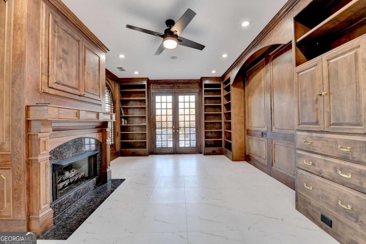 - Interior FeaturesBeamed Ceilings, Bookcases, Double Vanity, Tray Ceiling(s), Walk-In Closet(s), Wet Bar