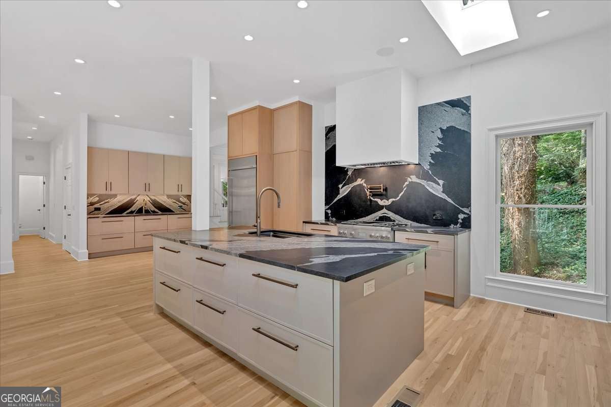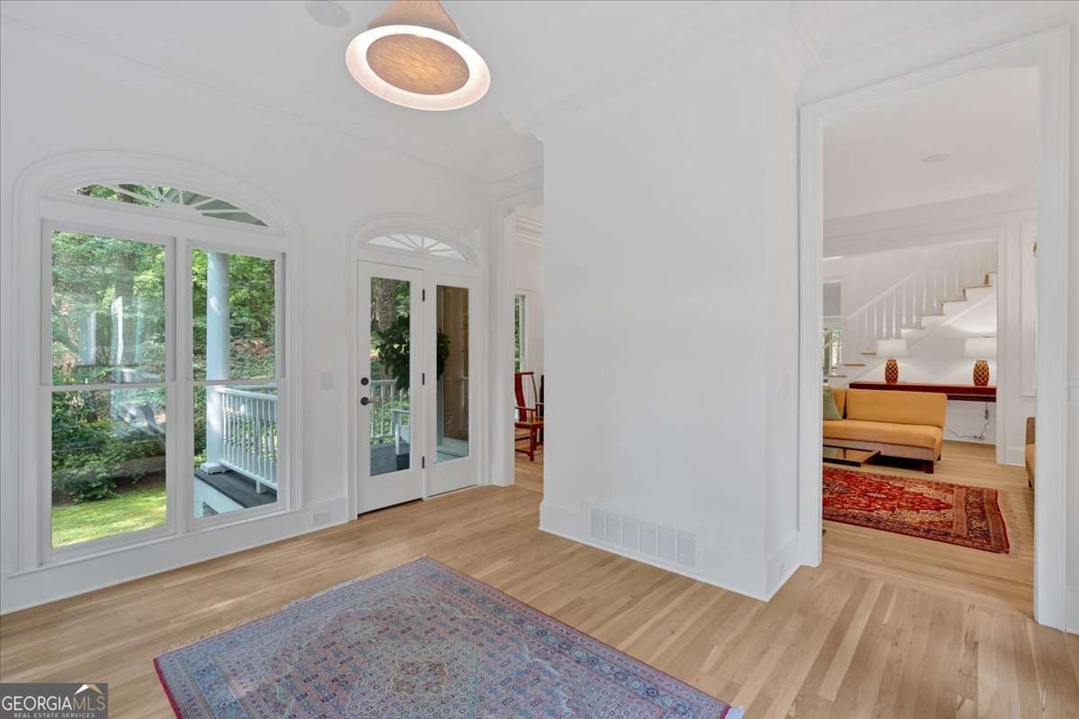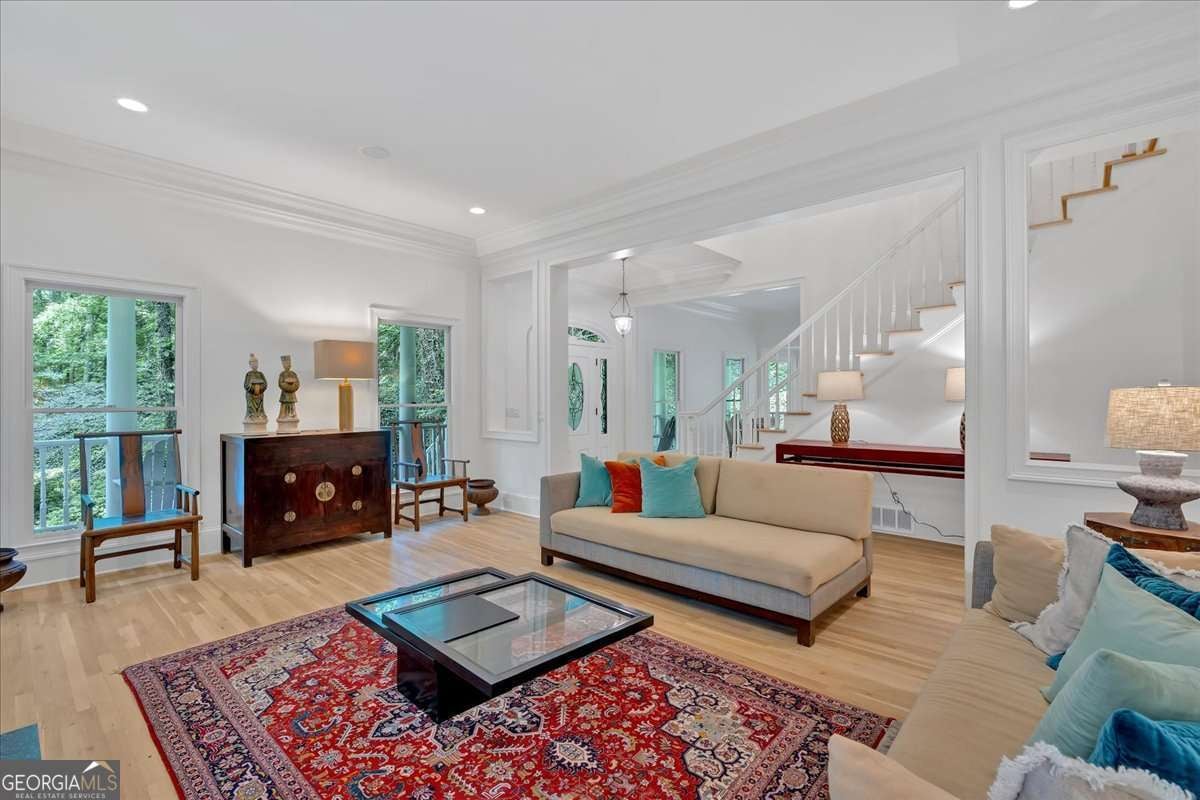 Motivated seller - priced to sell. Please bring all offers!! Tucked behind secured gates in the heart of Buckhead, this beautifully remodeled Southern estate sits on a rare, level one-acre lot just moments from top-rated schools, shopping, dining, and major commuter routes. Mature trees and lush landscaping create a private, peaceful setting that's hard to find anywhere else in the city. A classic wrap-around front porch welcomes you inside to a bright two-story foyer, flanked by a spacious dining room and a fireside formal living room. Just beyond, a stunning sunroom wrapped in arched windows fills the home with natural light and opens onto both the front and side porches. The open chef's kitchen has been thoughtfully redesigned with imported stone counters, premium appliances, custom cabinetry, and a large center island with gas cooktop. A cozy breakfast room with fireplace flows into the keeping room and a generous fireside family room with triple French doors leading out to the oversized back deck. The main-level primary suite offers true luxury with private deck access, a sitting area, and a newly finished spa bath featuring a glass steam shower, freestanding soaking tub, dual vanities, and a walk-in closet that feels like a boutique. A built-in sauna adds a resort-level touch. Upstairs are three spacious bedrooms and two updated baths. The fully finished terrace level expands the home even further with two additional bedrooms, two full baths, flexible office or hobby spaces, a gym area, and a large recreation room perfect for gatherings or multi-generational living. Additional highlights include new flooring throughout, upgraded fixtures, smart-home features, a three-car garage with Tesla charger, and an extended parking pad for guests. Outdoor living shines here-stone patios, multiple deck areas, and professional hardscaping create a series of beautiful, usable outdoor spaces. All of this sits within the highly sought-after Sarah Smith Elementary district. This is a rare opportunity to own a truly move-in-ready estate that blends timeless Southern charm with modern luxury-right in the heart of Buckhead.