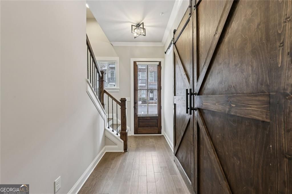 THIS HOME HAS A 4.25% ASSUMABLE LOAN!! Wonderful Opportunity to be in the Sought After Adyn Park Community in Downtown Woodstock! Just Steps Away from all Downtown has to Offer. This 4 Bedroom 3.5 Bath Townhome is Better than New w/ Over $55K in Upgrades and Improvements and Features Hardwood Floors Throughout, New Paint, 10 Ft Ceilings, 3 Decks, 2 Pantries, EV Charging Outlet in Garage, and is ELEVATOR READY! Three Levels Offer Ample Storage and Flexible Living Space. The Main Level Includes a Chefs Kitchen with Oversized Island, Quartz Countertops, Stainless Steel Appliances, Gas Oven/Cooktop, Microwave Drawer, Custom Cabinets, Tiled Backsplash, 2 Pantries including 1 Walk-in. Spacious Dining Area Opens to a Large Covered Private Back Deck Overlooking a Peaceful Natural Setting. Bright Open Family Room w/ Custom Fireplace, Floating Shelves, Custom Cabinets, Ceiling Fan, and Access to a Balcony w/ Community Views. Oversized Primary Bedroom Upstairs with Hardwood Floors, Trey Ceiling, Crown Molding, 2 Separate Walk-In Closets, and Private Balcony. Beautiful Primary Spa w/ Tiled Floor, Custom Dual Vanity w/ Quartz Top, and Huge Tiled Shower w/ Seamless Glass. Two Spacious Secondary Bedrooms Up w/ Hardwood Floors and Full Bath. Lower Level Includes a Guest Suite and Full Bath Perfect for Guests, Teens, In-Laws, or Media Room. Don't Miss this Incredible Opportunity in a Prime Location, Offering both Relaxation and Convenience.