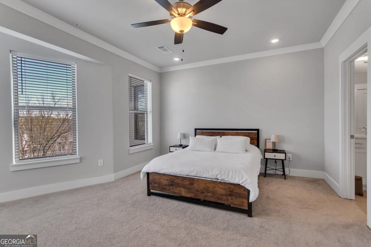 Motivated Seller has already moved out! Townhouse style condo living in the heart of historic Riverside. Experience the best of Atlanta's vibrant upper westside in this beautifully designed townhouse-style condo. Located in the sought-after One Riverside West on Main community, the exterior shell of this condo unit was built in 2008, but the interiors were only built out in 2022 - making this almost new construction. Enjoy the energy of a rapidly growing neighborhood-without any yard work or exterior maintenance. Simply move in and enjoy! Interior highlights include interior construction with fresh paint and newer carpet throughout, durable LVT flooring in the light-filled living room and kitchen, open second-floor layout that blends living, dining, and kitchen spaces seamlessly. The sleek, modern kitchen featuring a center island, stainless appliances and quality finishes. Flexible dining room or den/office or small bedroom on the main living level, complete with a convenient half bath. The bedroom suites feature an oversized primary suite with a beautifully tiled bathroom, separate oversized shower, large walk-in closet. The huge secondary bedroom with its own large ensuite bathroom is ideal for guests, roommates, or family. The outdoor living features both a front balcony and a rear deck-perfect for morning coffee, evening relaxation, or watching the world go by. Rear-entry with a private one-car garage. Situated in the thriving Upper Westside, steps from shopping, dining, and new developments and just minutes to major commuter routes, parks, breweries, and all the excitement of intown living.