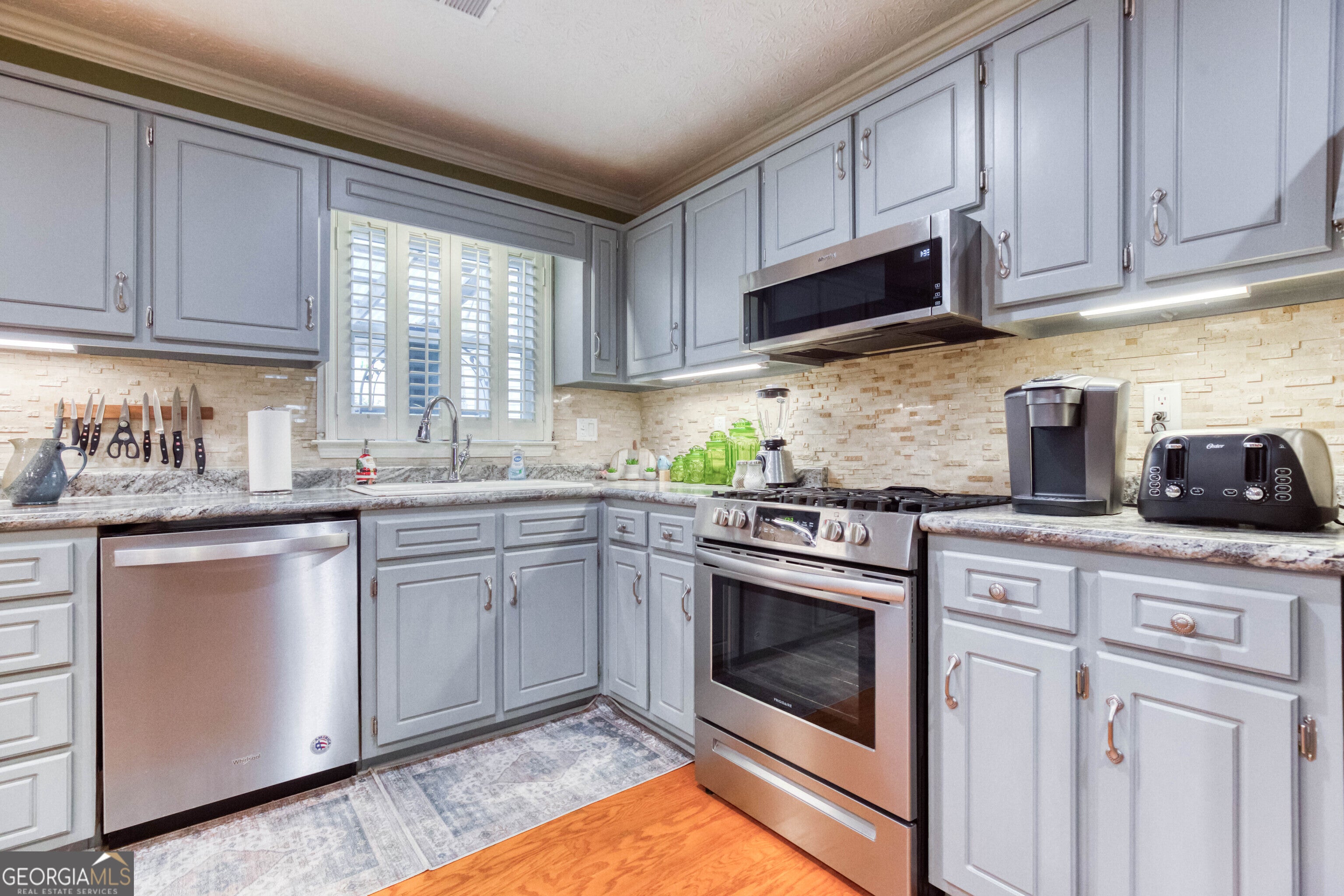 - AppliancesDishwasher, Gas Water Heater, Microwave, Oven/Range (Combo), Refrigerator, Stainless Steel Appliance(s)