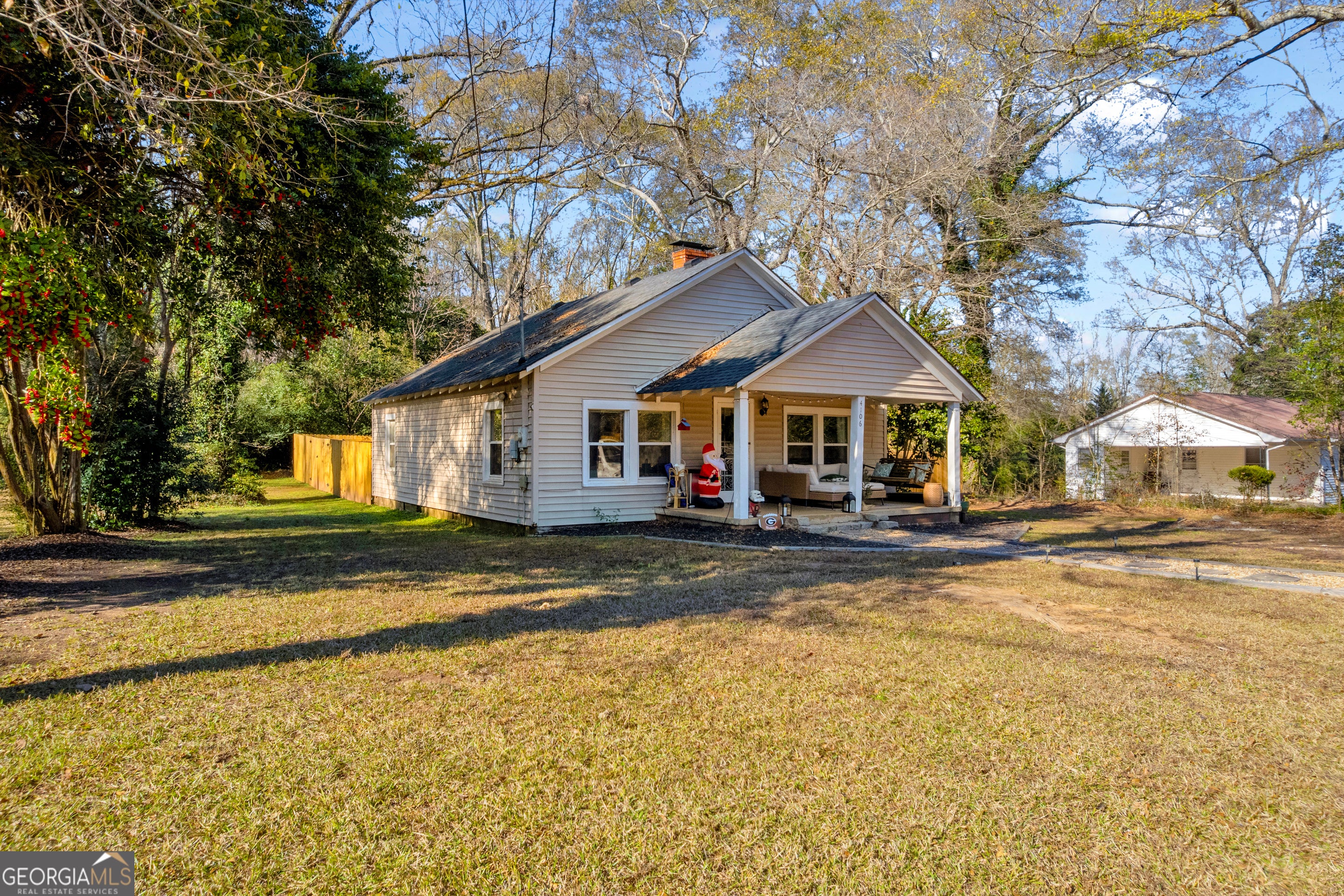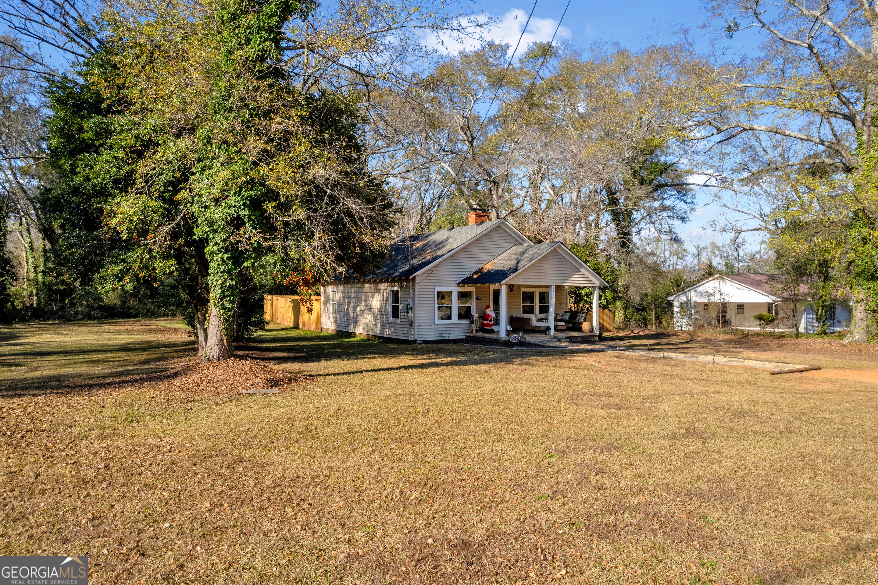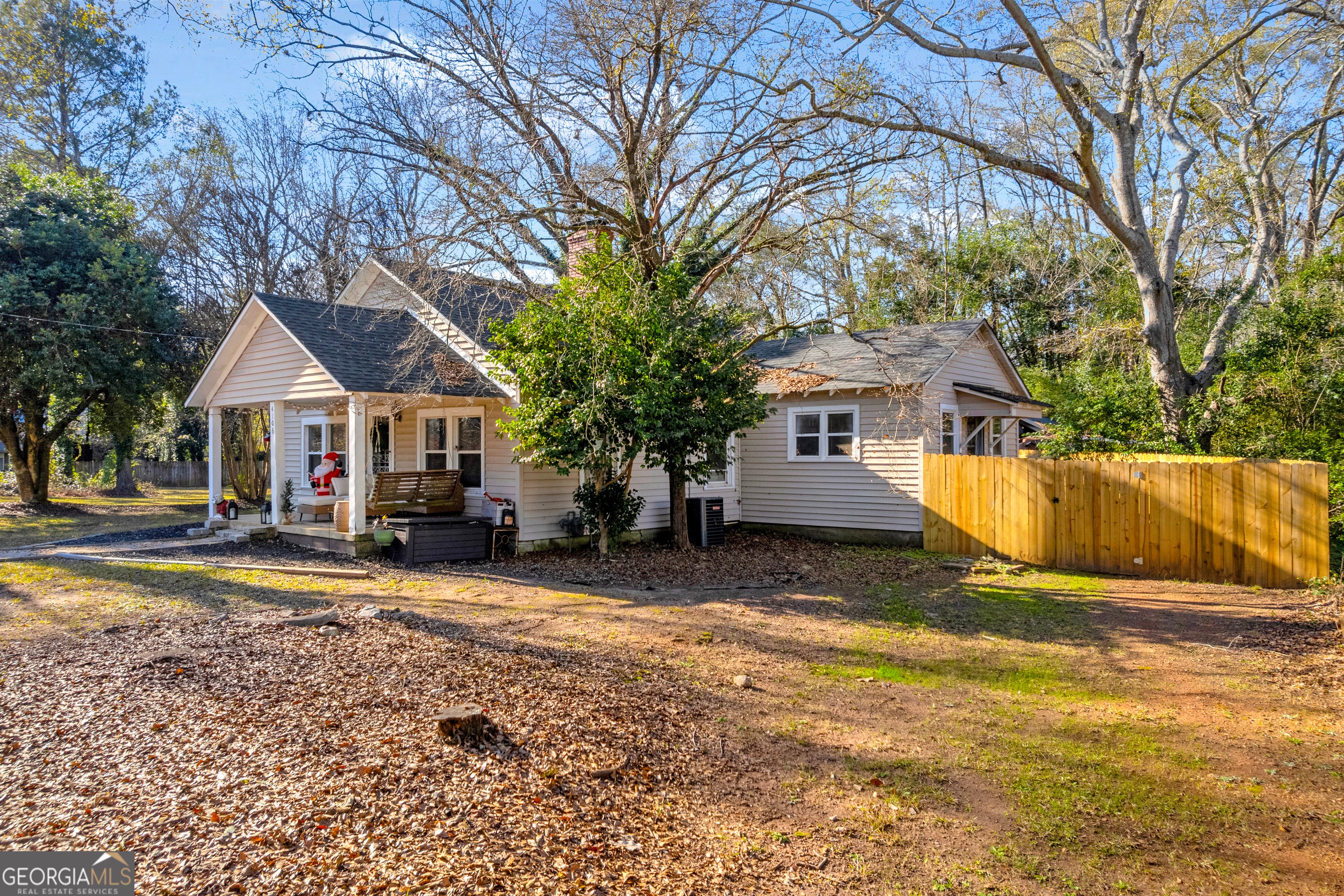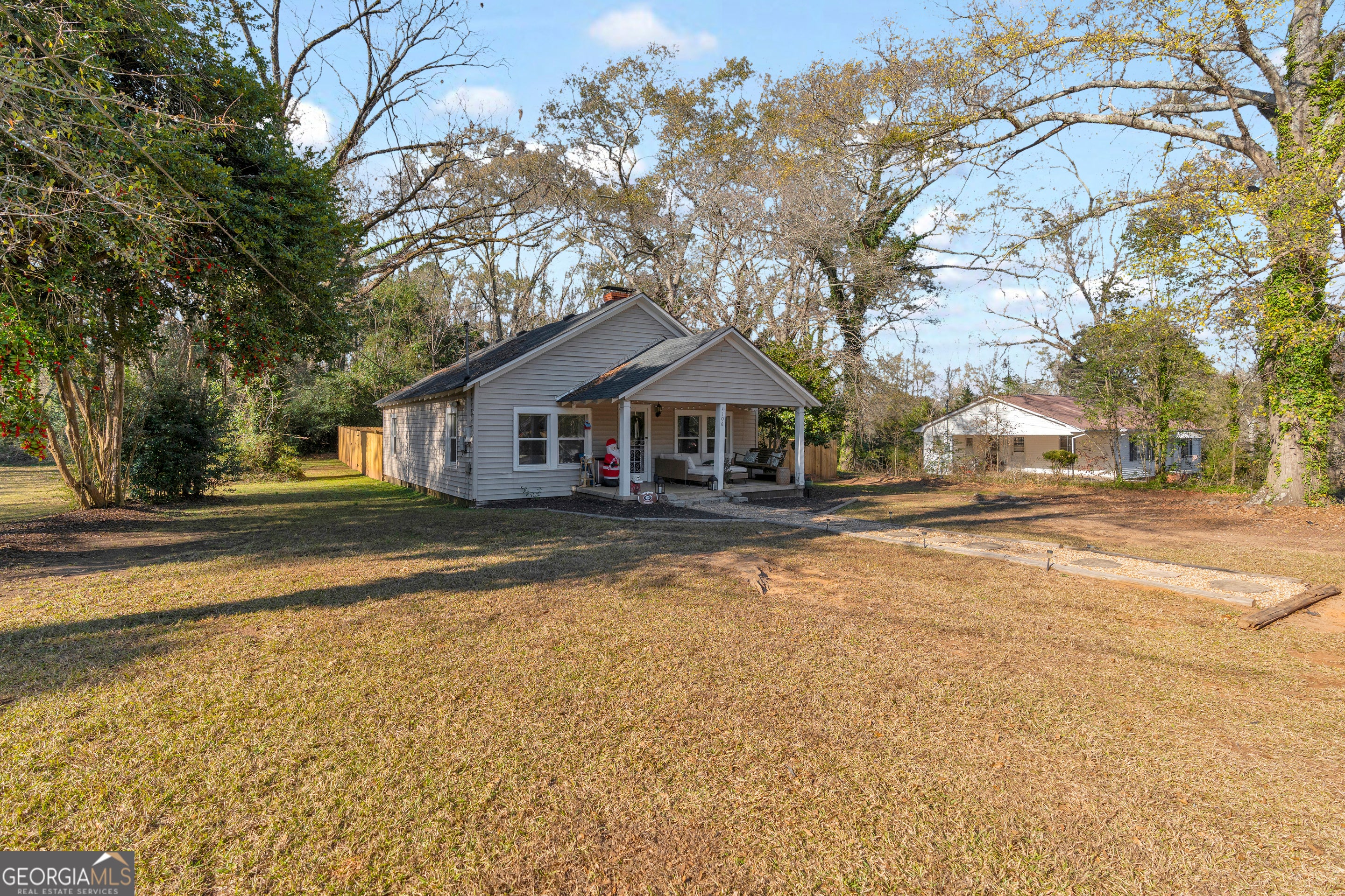 Quaint two bedroom two bath cottage, large country kitchen, family room with fireplace. Separate dining room or flex space. Hardwood and tile flooring. Enjoy private living on 1.6 acres. Roof and HVAC system only three years old. Privacy Fenced gathering space with sod. Convenient to Athens Tech, UGA. Great roommate plan.