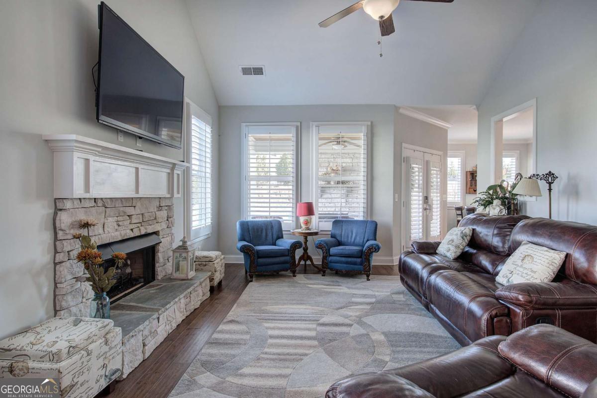Discover the perfect blend of comfort, convenience, and flexibility in this immaculate 3-bedroom, 2-bath ranch located in the highly sought-after Encore at Etowah, Cartersville's premier 55+ community. This rare offering features the neighborhood's most popular floor plan-one that seldom comes on the market. Enjoy true one-level living with a stepless entry, an inviting 2-car garage, and an open layout designed for everyday ease. The large kitchen is a standout, offering abundant counter space and a huge walk-in pantry, perfect for the home cook or entertainer. Host holidays and gatherings in the exceptionally large dining room, ideal for bringing everyone together. The unfinished upper level provides incredible potential-already framed for a 4th bedroom and stubbed for a 3rd bath, with plenty of storage remaining. Finish it to fit your needs or keep it as extra space. Relax year-round on the covered rear patio with a cozy fireplace, perfect for morning coffee or evening unwinding. Beautifully designed and thoughtfully laid out, this home is a rare opportunity in one of Cartersville's most desirable active adult communities. Don't miss your chance to make it yours! Encore at Etowah is an Active Adult 55+ Community located in Cartersville, on Douthit Ferry Road, near Sam Smith Park and the Senior Aquatic Center.