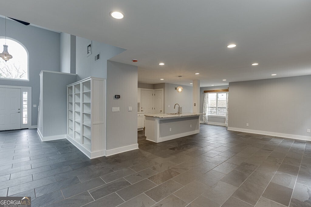 Move-In Ready and Affordable in the North Gwinnett School District! Welcome home to a beautifully updated property that offers incredible value in one of Gwinnett's most desired school districts. Fresh interior and exterior paint, brand-new windows, and beautiful, durable slate flooring throughout the main level create a clean and inviting first impression. The reimagined kitchen is the heart of the home. It has been opened up to overlook the living room, and features a stunning quartz island, newer stainless steel appliances, and modern finishes. The family room is anchored by a contemporary tile fireplace that adds warmth and style. A spacious flex area provides the perfect spot for an office or additional living room, and includes built-in bookshelves and large picture windows that fill the space with natural light. Upstairs, the home continues to shine with comfortable bedrooms and great light throughout. The owner's suite includes a large walk-in closet with a custom shelving system, and an additional separate room that works well as a workout space or home office. Two secondary bedrooms share a convenient Jack-and-Jill bathroom. Outside, you will find one of the largest backyards in the neighborhood. It is flat, fenced, and ideal for play, pets, gardening, or future outdoor living plans. All of this is within walking distance to shops and nature trails, giving you everyday convenience and easy access to the outdoors. This home offers an affordable opportunity in North Gwinnett with the updates buyers want and the space they need. It is truly ready for move-in from day one.