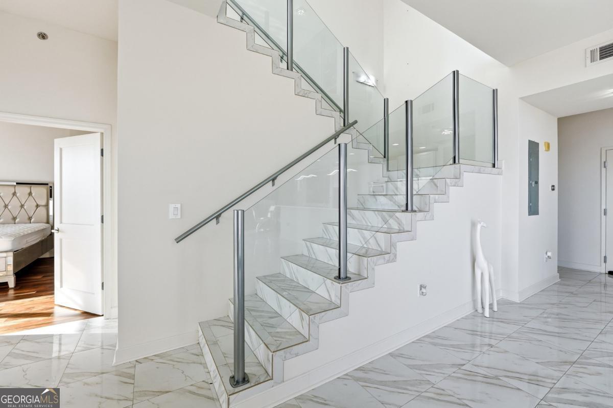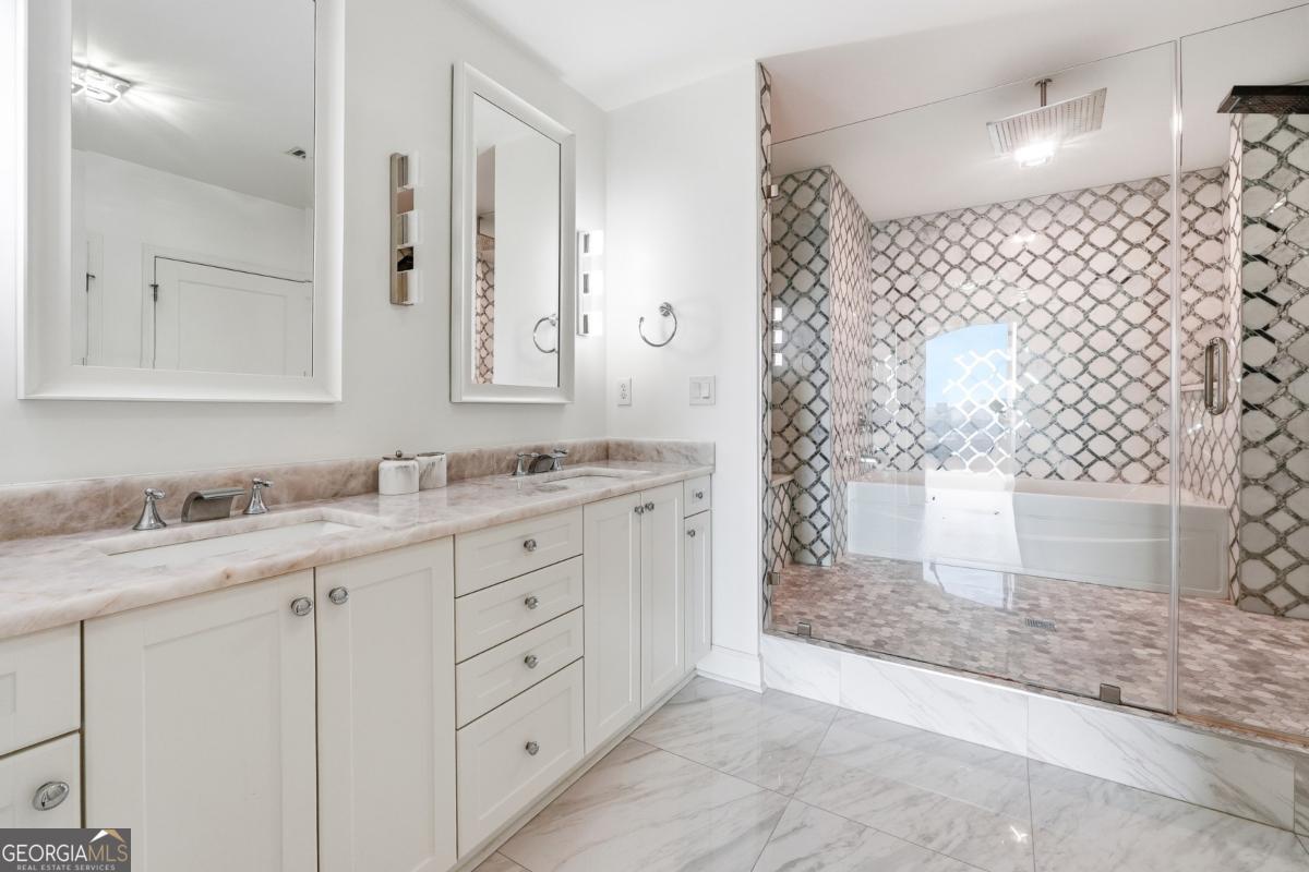 Experience luxury living in this impeccably renovated high-rise penthouse located in the vibrant heart of Buckhead. Soaring ceilings, expansive windows, and an open floor plan create a bright, modern atmosphere perfect for both relaxation and entertaining. Step inside to gleaming white tile and elegant marble flooring that flow seamlessly throughout the main level. The spacious living area opens to a sleek, contemporary kitchen and an impressive wet bar complete with a wine fridge and ice maker-ideal for hosting in style. The primary owner's suite on the main level offers exceptional convenience and privacy, featuring spa-inspired finishes and generous closet space. A second owner's suite on the upper level provides flexibility for guests or multigenerational living, each with its own luxurious en-suite bath. Located in one of Atlanta's most desirable neighborhoods, this penthouse offers unmatched walkability to Buckhead's premier dining, shopping, and entertainment. Modern. Elegant. Move-in ready. Welcome to penthouse living at its finest.