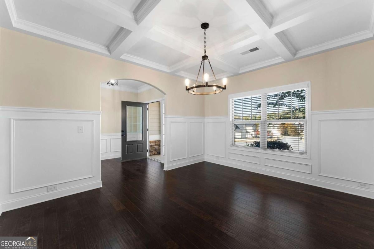 Stunning Custom Craftsman in Carter Grove at The Bluffs! Welcome to this beautifully designed custom Craftsman home located in one of Cartersville's most sought-after neighborhoods, Carter Grove at The Bluffs. Every detail of this home reflects quality craftsmanship and thoughtful design. Step inside the grand walk-in foyer, where you'll be greeted by a formal dining room featuring elegant coffered ceilings perfect for gatherings and special occasions. The main level showcases gleaming hardwood floors, a spacious living room with a cozy gas fireplace, and a convenient powder room for guests. The gourmet kitchen is an entertainers dream, complete with stainless steel appliances, granite countertops, a large center island, tile backsplash, and pantry for ample storage. Upstairs, you'll find four generously sized bedrooms, including an oversized primary suite offering a true retreat. The ensuite bath features double vanities, a soaking tub, walk-in shower, and a private water closet. The laundry room is conveniently located upstairs, making household chores a breeze. Outside, enjoy one of the largest backyards in the neighborhood, fully fenced with a craftsman style playset and complete with a patio area ideal for outdoor entertaining, barbecues, or relaxing evenings under the stars. Residents of Carter Grove enjoy an exceptional lifestyle with access to resort-style amenities, including a swimming pool, tennis courts, playground, community clubhouse, cabana, green spaces, and ponds. Families will appreciate the proximity to the A-rated Cartersville School System, including Cartersville Primary School, located right within the community. Golf enthusiasts will love being just a short golf cart ride from the scenic Woodland Hills Golf Course, a peaceful 18-hole course offering multiple membership options and year-round recreation. Located less than 10 minutes from Downtown Cartersville's award-winning restaurants and boutique shopping, this home combines elegance, convenience, and community in one exceptional package. Don't miss this rare executive rental opportunity in one of Cartersville's premier communities where luxury living meets small town charm.