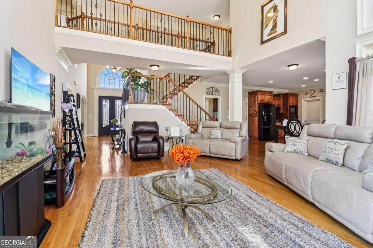 Welcome Home!!!! Conveniently located near supermarkets, shopping, and entertainment, this home offers the perfect blend of elegance, comfort, and functionality. Boasting a 3-car side-entry garage plus an additional parking pad, this home offers ample space for vehicles and guests alike. Meticulously maintained and UPDATED with a NEW water heater, NEWER HVAC (main & upper), front door, roof, gutters, deck, kitchen faucet, microwave, dishwasher, windows in key areas, remodeled basement, and more! Step through the wrought-iron doors into a soaring 2-story foyer with gleaming hardwood floors, flanked by formal living and dining rooms and a butler's pantry leading to the large, beautiful eat-in kitchen- perfect for preparing nourishing meals. The kitchen opens to a sun-drenched, 2-story, fireside family room with walls of windows, while the main level also includes a guest room and hall bath. Ascend the dual staircases to the oversized owner's suite featuring a cozy fireplace, seating area, luxurious en suite, and huge daylight walk-in closet. Three additional bedrooms feature walk-in closets, including one with a private en suite and two that share a convenient Jack-and-Jill style bathroom. The finished walkout terrace level is ideal for entertaining, featuring a wet bar, media/theater room, living area, two bonus rooms, full bath, and ample storage. Step outside to the spacious backyard and deck for outdoor gatherings. Offering abundant natural light, versatile spaces for living, working, and relaxing. Just perfect for luxury, comfort, and style! Don't miss out on this lovely property-make it your home! Book your private showing today!