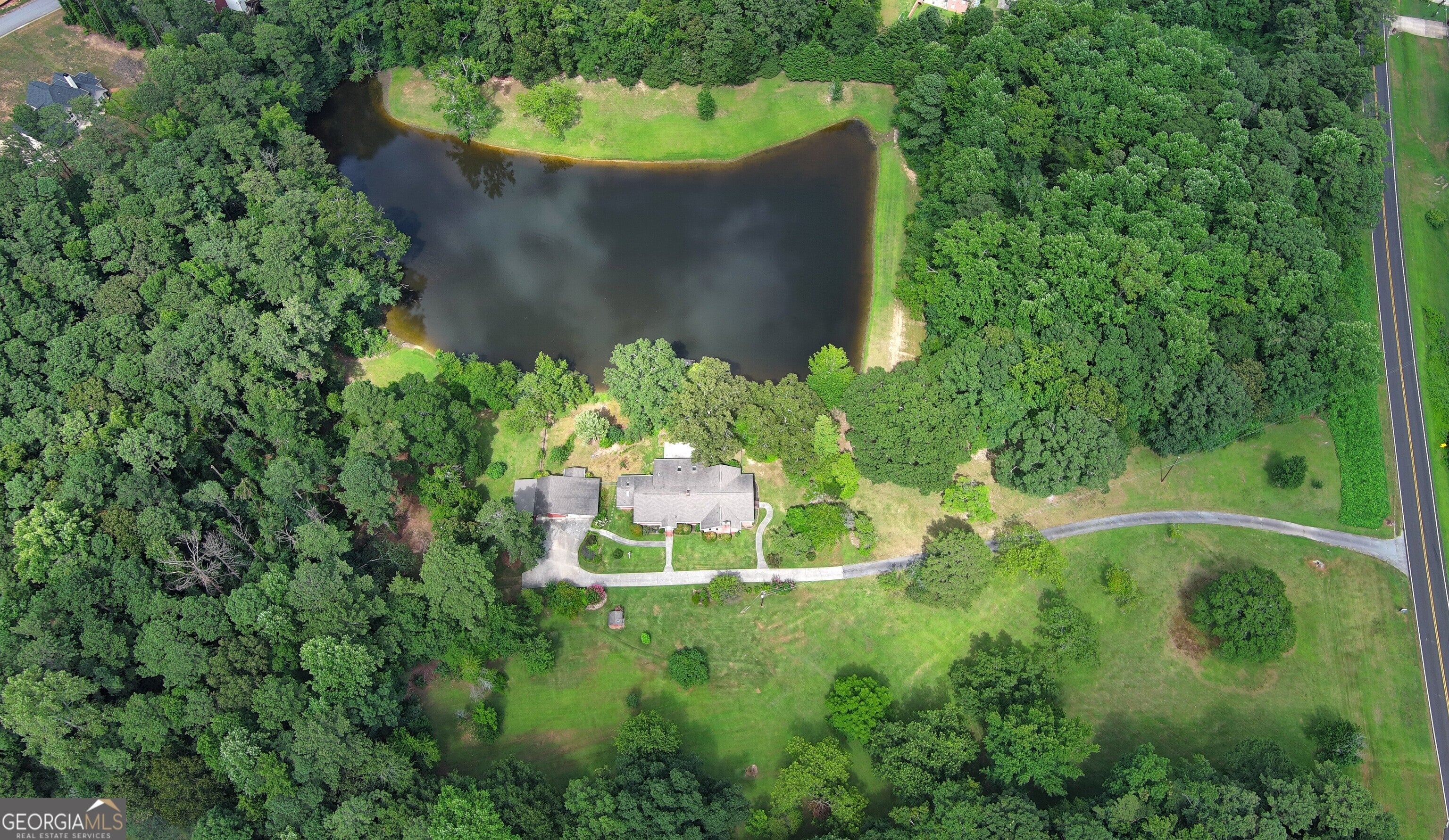 Welcome to your dream estate at 3102 Walt Stephens Road! This stunning 3-bedroom, 2.5-bath home is nestled on a sprawling 10.691-acre property that includes a private 2.5-acre stocked lake, offering 2,996 square feet of living space. Perfectly designed for both comfort and entertainment, this property is truly a hidden gem. This property has combined separate parcels to create 10.691 acres. Clayton Co. has approved and registered the plat in June 2025 (Plat book 46/ Page 57). Step inside to discover a beautifully updated kitchen featuring custom cabinets and elegant quartz countertops, making it ideal for culinary enthusiasts. The kitchen seamlessly opens into the living room, anchored by a large fireplace, and is adjacent to an oversized den or dining area, which also features a second cozy fireplace. Across the back of the two main living areas, a beautiful sunroom with a wood-burning stove that overlooks the patio and private lake, providing breathtaking views of the water, wildlife, and sunrises. The home features a split bedroom layout, with an oversized master suite that includes three walk-in closets and a lavish ensuite bathroom equipped with two separate sink counters, a soaking tub, and a spacious shower. Two additional large bedrooms, one of which has a fireplace that could also serve as an office or den, share a generous guest bathroom. Off the kitchen, you'll find the laundry room and a half bath. Two additional rooms in the main house are currently used as a storage/craft room and a mudroom, which house a backup freezer and refrigerator, as well as an in-house vacuum system. This house offers plenty of storage options. Outside, the property is adorned with mature dogwoods, gardenias, azaleas, hydrangeas, crape myrtles, irises, lilies, and fig trees, ensuring something is blooming year-round. There are charming plots to create your farm-to-table garden and cozy sitting areas perfect for hosting gatherings with family and friends. Enjoy swimming, fishing, or paddling around on your private lake, or simply relax on the patio or dock with your morning coffee. Separate from the house, you will find a freestanding workshop/garage and a covered area with a cement floor that can serve as a patio or a two-car carport, along with a covered space for outdoor storage. This property truly has it all. Don't miss your chance to experience the perfect blend of luxury, comfort, and outdoor living at 3102 Walt Stephens Road, conveniently located 5 minutes from I-75, a 20-minute commute to Hartsfield-Jackson International Airport, and downtown Atlanta is only a 30-minute drive. Schedule your private showing today!