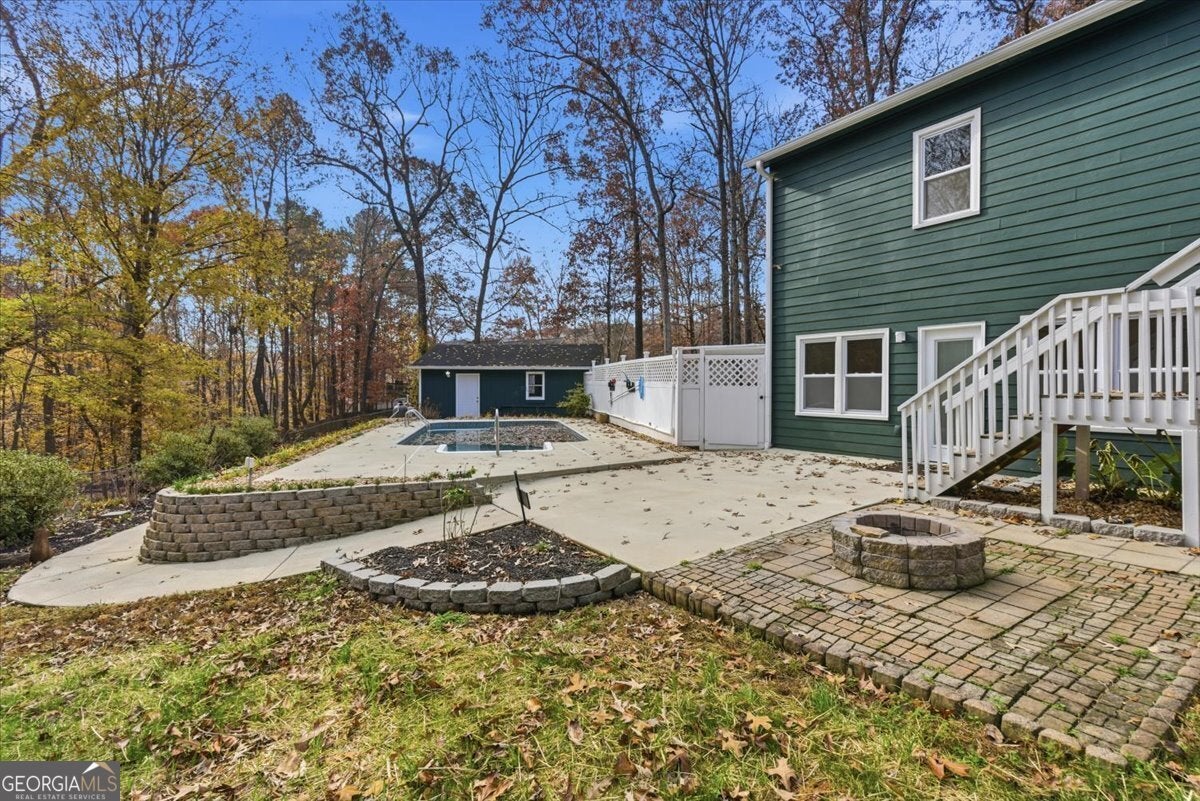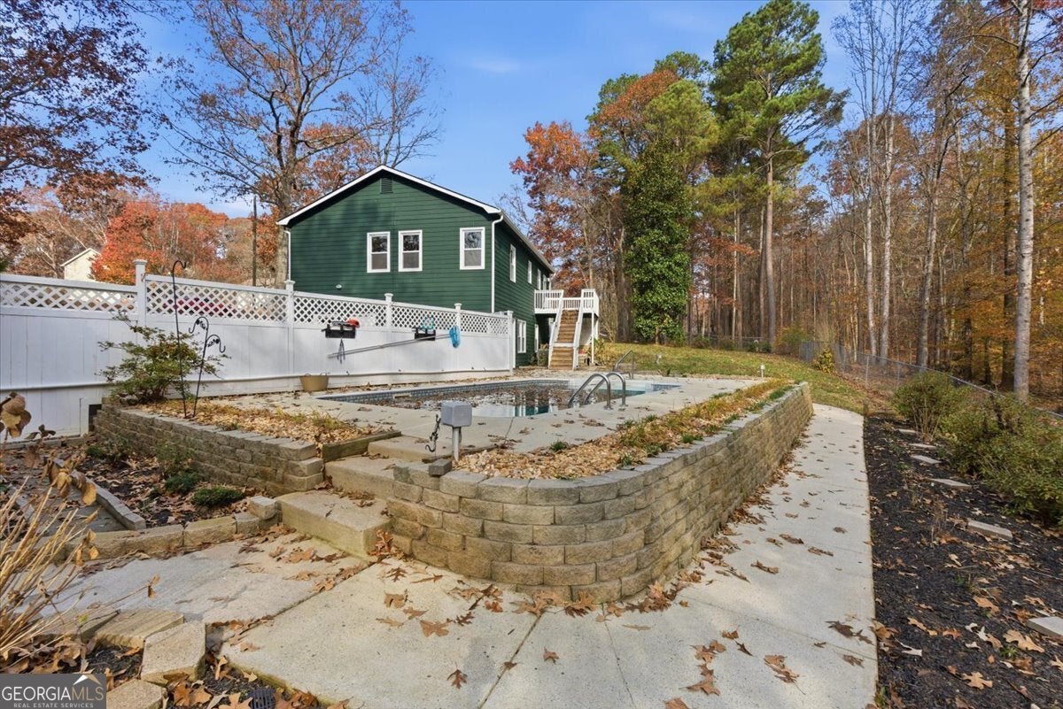 Beautiful cul-de-sac home located in Burnt Hickory Estates Neighborhood with an in-ground pool and a fenced in back yard. Updated 4-bedroom home, complete with a versatile bonus room perfect for an office, nursery, or hobby space. Designed for comfort and style, this property offers both functional living and nice touches throughout. Step inside to find new stone countertops with elegant brushed-gold finishes, adding a modern, high-end feel to the kitchen. The home's spacious layout includes an oversized master suite, providing a peaceful retreat with ample room to relax. Entertaining is effortless with a wet bar located downstairs and an inviting in-ground pool ideal for summer gatherings. The pool area and the rest of the property has been extensively landscape with blooming ornamentals that provide year around color to the property. You'll be delighted with year round perennials. The back porch offers space for a hot tub should you choose to add one, creating the perfect spot to unwind year-round. Additional highlights include a brand new septic system, a free-standing garage, and plenty of room for storage or future projects. This property truly has it all-style, functionality, and outdoor amenities that elevate everyday living. NO HOA - Don't miss the chance to make it yours!