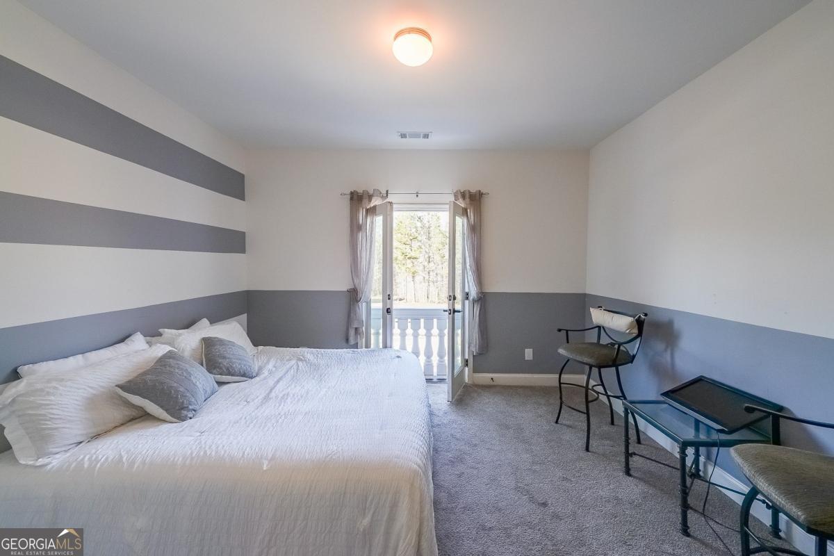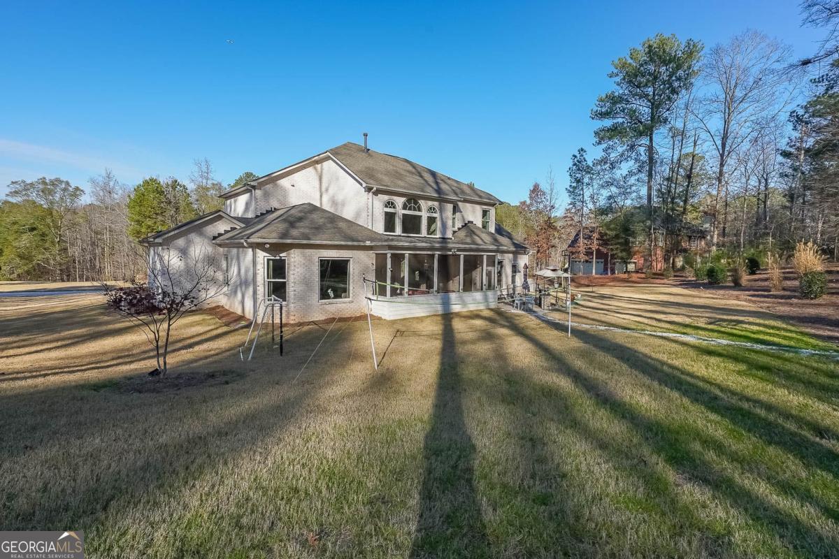 Tucked away on nearly three acres in one of Rockdale County's most distinctive settings, this custom-built estate feels less like a home and more like a private sanctuary. From the moment you arrive, the home's striking modern architecture makes a lasting impression. Step through the doors and into a breathtaking two-story foyer, where light pours in and vaulted ceilings soar overhead. The scale is undeniable, yet every detail feels intentional, refined, contemporary, and inviting. The great room unfolds with effortless elegance, offering a space that's equally suited for lavish gatherings or quiet evenings by the fire. It flows seamlessly into a beautifully appointed kitchen, thoughtfully designed to be both functional and stunning. Just beyond, a charming breakfast nook leads directly into an expansive sunroom, where morning coffee is paired with panoramic views of your own private retreat. On the main level, the primary suite offers a peaceful escape. Wake each day to serene views of the surrounding property, unwind in a space designed for comfort, and enjoy the luxury of dual walk-in closets that provide both style and practicality. Every inch of this suite feels like a personal haven. For evenings at home, a dedicated entertainment and theater room transforms ordinary nights into cinematic experiences. Whether hosting friends or enjoying a quiet film, the ambiance is unmatched. Step outside, and the story continues. A custom-built gas grill and gazebo create the perfect backdrop for outdoor entertaining, while a beautifully landscaped private path winds through the property inviting slow walks, reflection, and connection with nature. Here, tranquility isn't a destination; it's part of everyday life. With its exceptional acreage, masterful craftsmanship, and thoughtfully designed spaces, this estate offers more than luxury, it offers an experience. A rare opportunity to live expansively, entertain effortlessly, and retreat peacefully, all in one extraordinary place.