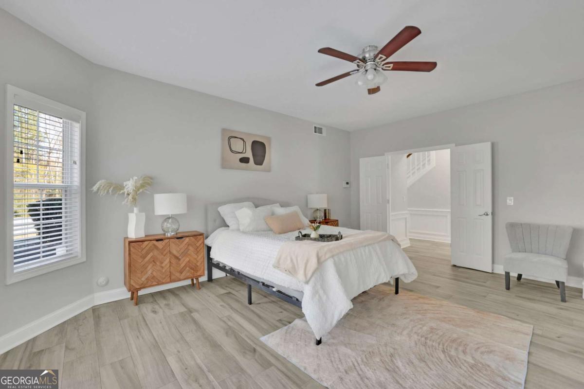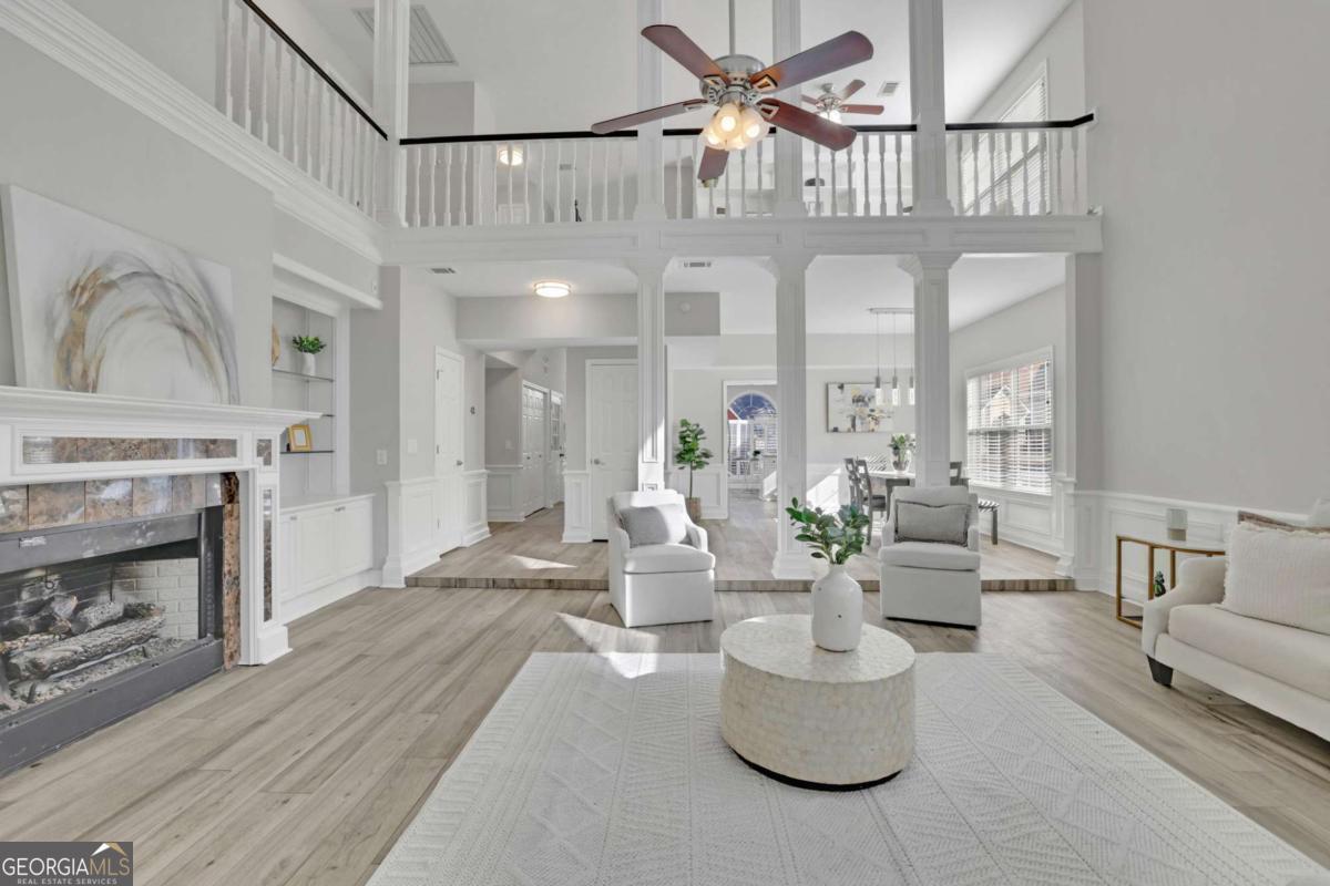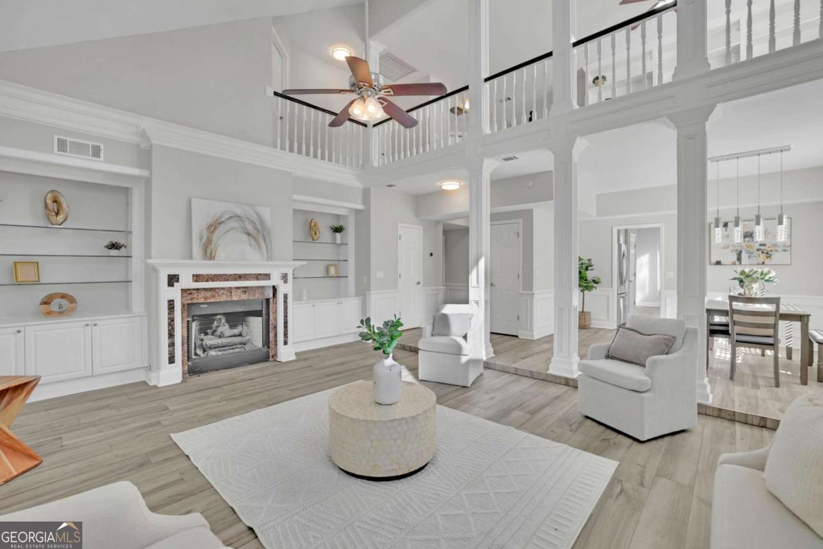 WELCOME HOME!!! Tucked away on a quiet cul-de-sac, this beautifully maintained 4-bedroom, 2 full and 2 half bath home offers approximately 3,000 square feet of thoughtfully designed living space, blending elegance, comfort, and functionality. Step inside to an impressive double-height foyer that sets the tone for the home's open and inviting layout. The kitchen features new granite countertops, stainless steel appliances, ample cabinet space, and a sun-filled eat-in breakfast area overlooking the front yard-perfect for everyday living. The oversized dining area flows seamlessly into the living space, which showcases a cozy and elegant fireplace with built-in bookshelves, creating an ideal setting for entertaining or relaxing. The living room opens to a sunroom, which leads to a private backyard, offering a peaceful retreat for outdoor enjoyment. The primary suite on the main level is a true sanctuary, complete with a sitting area, en-suite bathroom with a walk-in shower, jetted tub, and an oversized walk-in closet. The main level also includes a laundry room, powder room, and a 2-car garage for added convenience. Upstairs, you'll find three spacious secondary bedrooms sharing a Jack-and-Jill bathroom, along with a versatile flex space-perfect for a TV room, library, or home office-featuring built-in bookshelves and views overlooking the living area below. Ideally located close to major highways, shopping, and dining, this home is just 20 minutes from the airport and 12 minutes from The Battery, offering exceptional convenience and lifestyle appeal. A perfect blend of space, comfort, and location-ready to welcome you home.