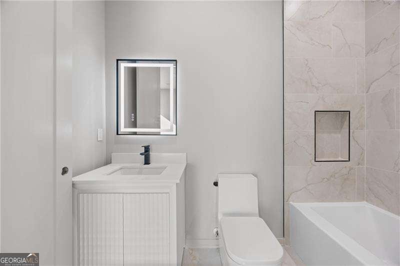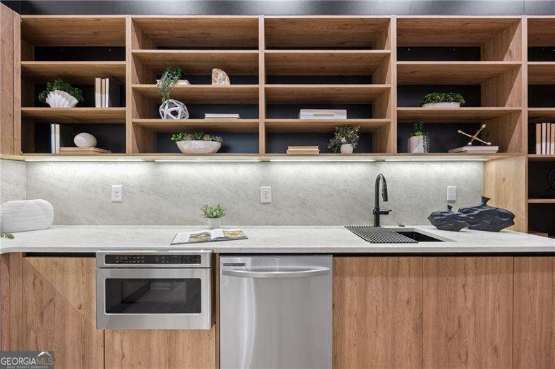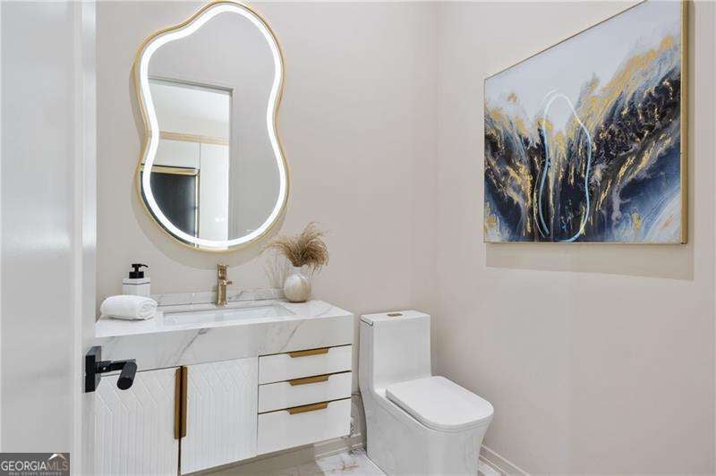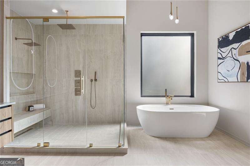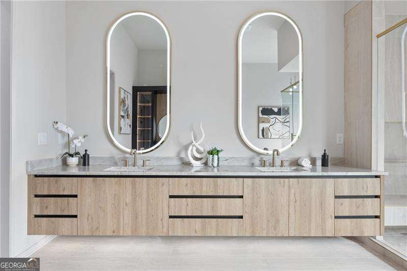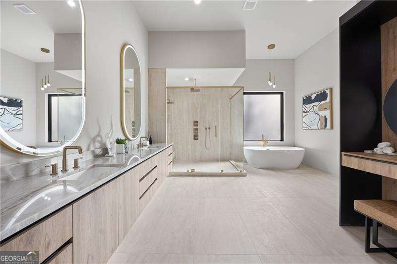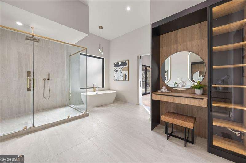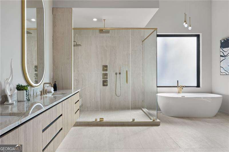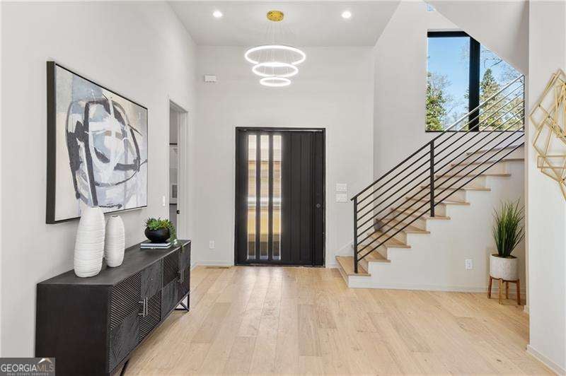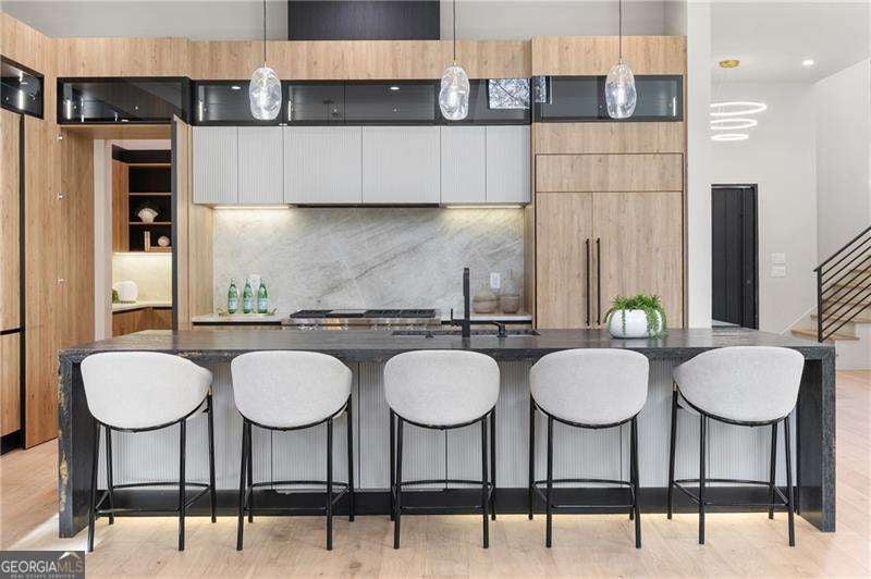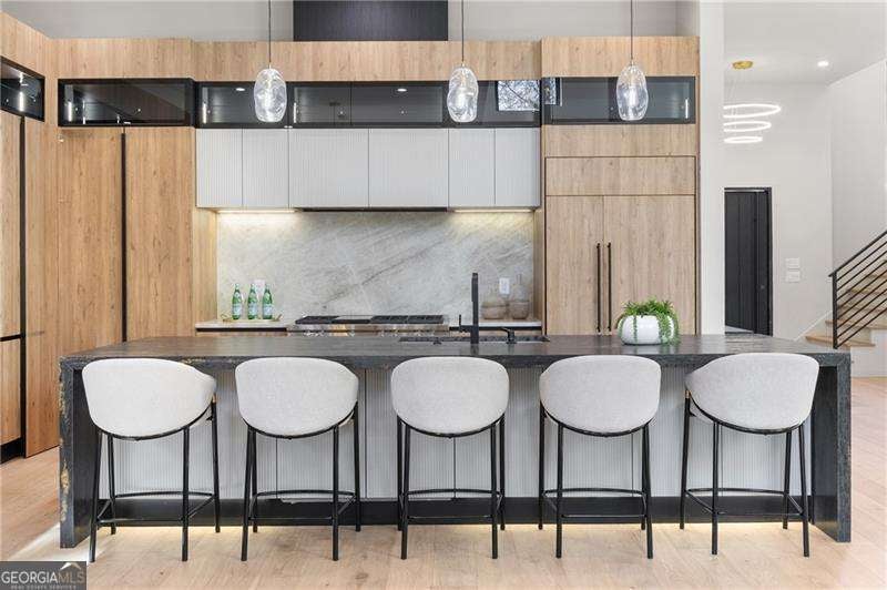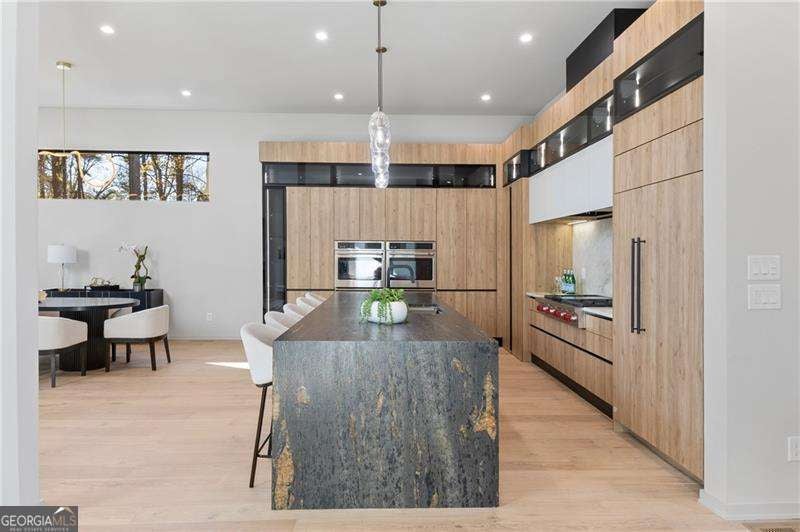 Experience elevated living in this stunning luxury modern-inspired new construction home showcasing exceptional craftsmanship, sophisticated design, and premium upgrades throughout. The heart of the home is the show stopping chef's kitchen featuring a Wolf gas cooktop, expansive leathered granite island, quartzite countertops, a hidden scullery with warming drawer, additional dishwasher, deep sink, and abundant storage, plus custom European cabinetry with integrated LED lighting that creates a truly unforgettable look. The open two-story family room offers a dramatic gas fireplace with modern fire rocks and seamless flow into the dining area and covered outdoor deck-complete with gas grill hookup and TV connection-perfect for year-round entertaining. The main level boasts wide-plank hardwood floors throughout and includes a luxurious primary suite with a spa-quality bath offering a large walk-in shower, soaking tub, dual vanities, and a dedicated makeup area, along with a jaw-dropping custom European LED-lit closet system. A secondary bedroom or office with a full bath adds convenience and flexibility on the main floor. Upstairs, four spacious bedrooms each feature en-suite baths, including a second primary suite option. Additional highlights include a 3-car garage with high ceilings accommodating lifts and EV connection, striking white and black brick facade with cedar accents, designer lighting, full irrigation system in front and backyard, and a massive 2,800+ sq ft unfinished terrace level ready to customize to your lifestyle-home theater, gym, additional bedrooms, or more. Located in the highly desirable Sandy Springs Glenridge Forest neighborhood and served by top schools, this exceptional home is close to the best shopping, dining, parks, and amenities the area has to offer-an unmatched blend of luxury and convenience. This lot does have room for a pool! Home has is all!