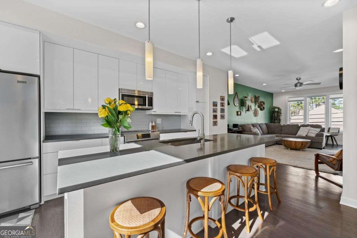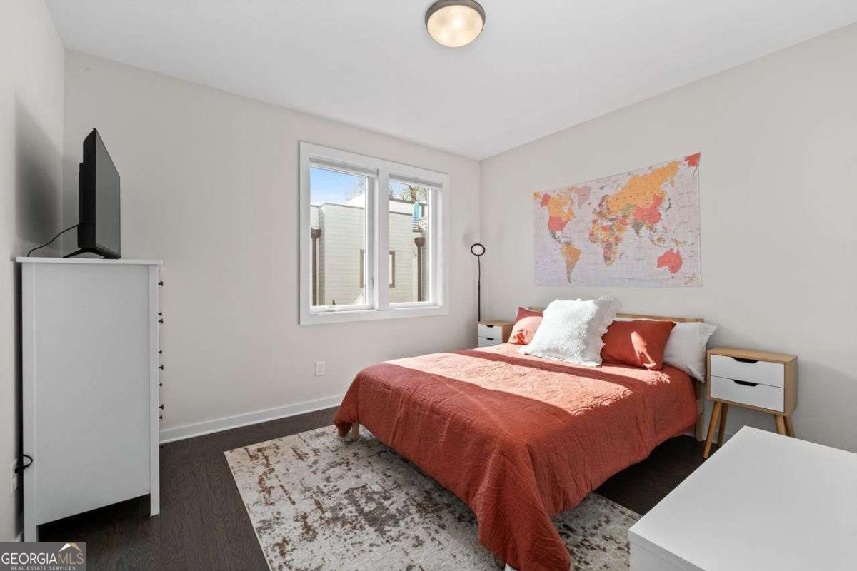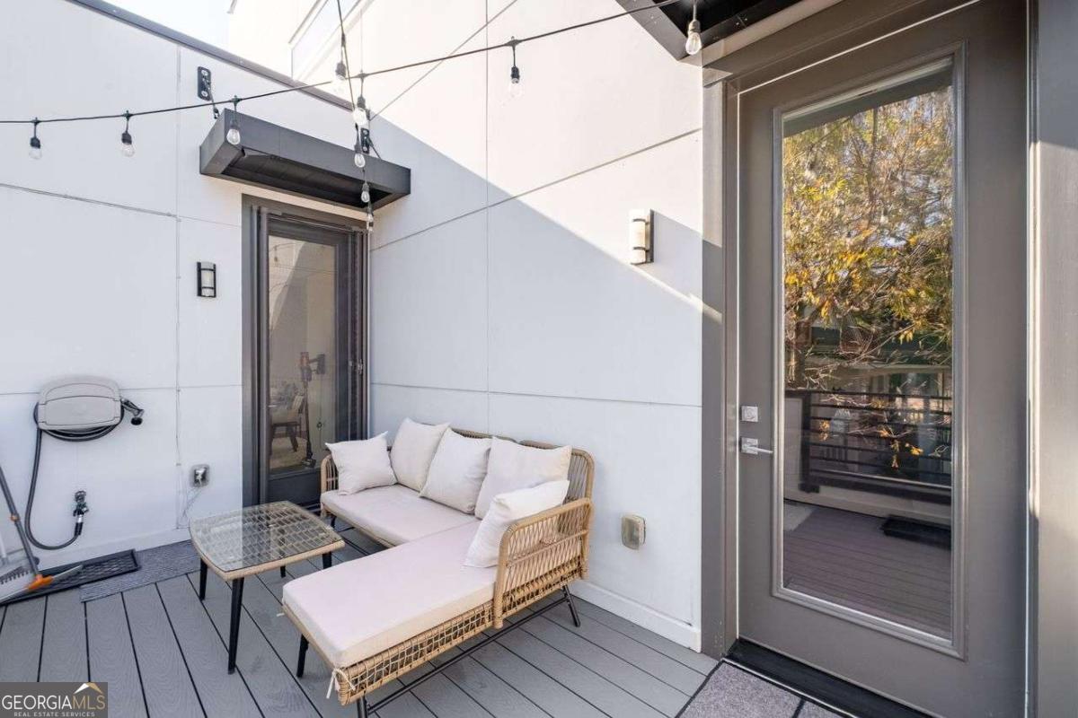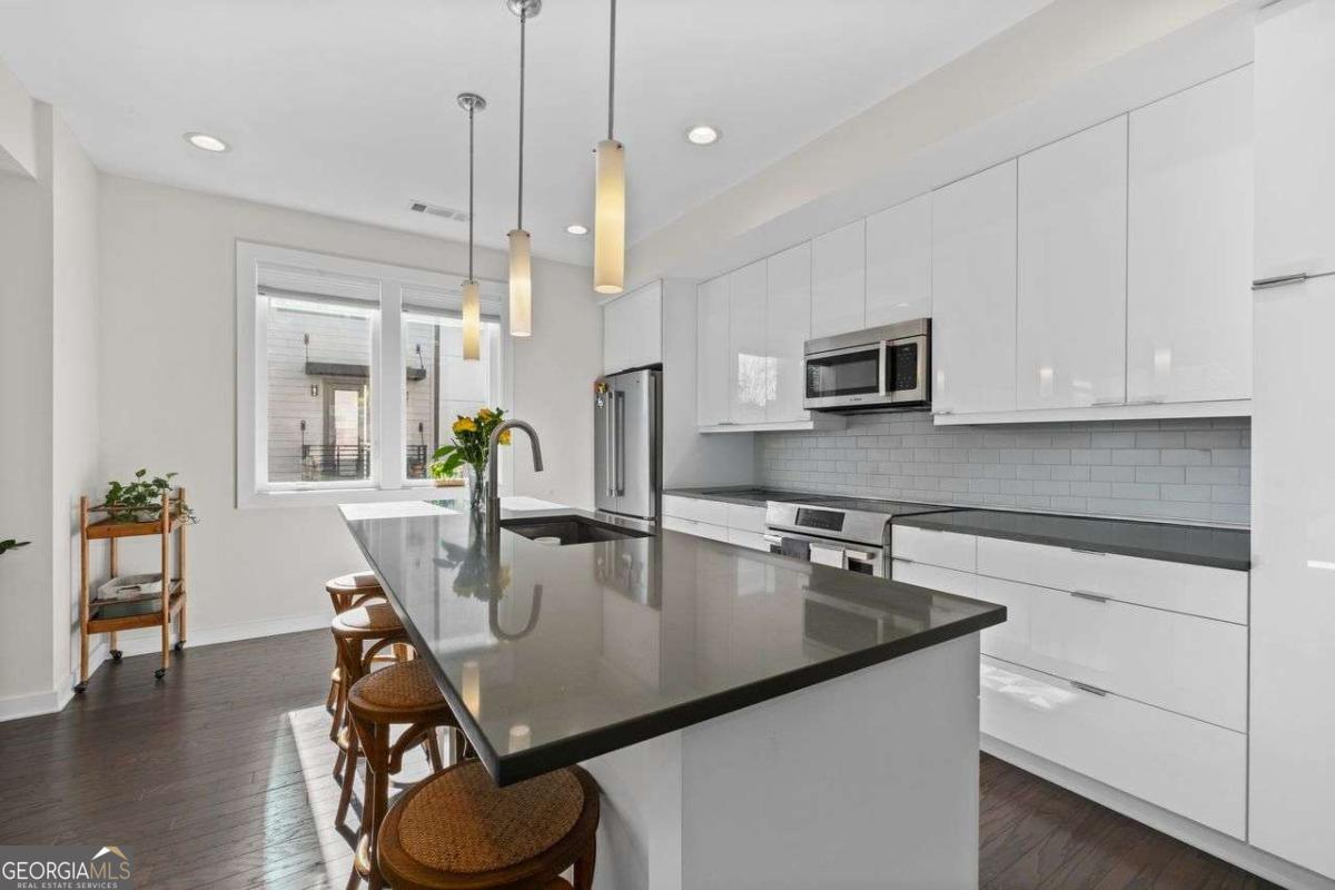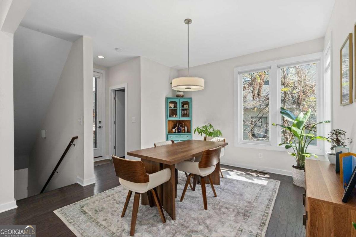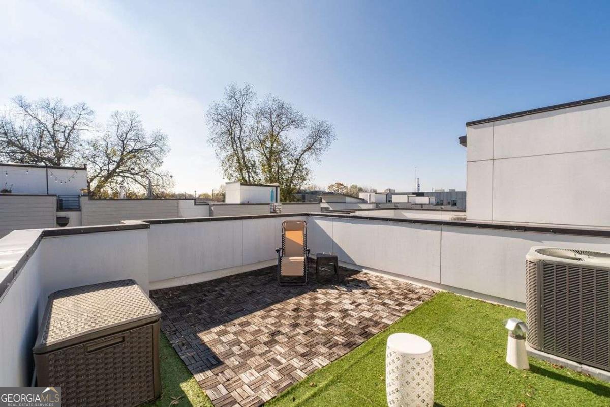 Welcome home to Four15 Stacks, where modern design meets unbeatable intown convenience! This stunning 4-bedroom, 3.5-bath end-unit townhome features the largest floorplan in the community and offers incredible indoor-outdoor living with a private rooftop terrace and a wrap-around side deck. Perfectly positioned less than half a mile from the BeltLine, Fetch Dog Park, Krog Street Market, Edgewood nightlife, coffee shops, restaurants, and more-this home places you right in the heart of Atlanta's most vibrant amenities. Flooded with natural light from its desirable northeast corner orientation, the main living level showcases an elegant, modern kitchen with white lacquer cabinetry, quartz countertops, high-end appliances, and a timeless ceramic tile backsplash. The spacious living room flows seamlessly onto the wrap-around deck, creating the ideal setting for relaxing or entertaining. A separate dining area provides defined space and elevated functionality not always found in contemporary townhome design. Upstairs, you'll find two bedrooms-each with its own en-suite bath. The luxurious primary suite boasts soaring ceilings, corner windows with custom blinds, dual custom closets with wooden shelving, vaulted storage, a double vanity, and a walk-in shower. The conveniently located laundry room is just steps away. Continue to the top level to discover your private rooftop retreat, featuring panoramic skyline views-a true showstopper for morning coffee or evening gatherings. The lower level offers two additional bedrooms, including one with a private full bath and another ideal for a home office, fitness space, or guest room. A rear-facing garage completes this thoughtfully designed layout. Residents also enjoy access to a community outdoor gathering area with seating and fire pit-perfect for connecting with friends and neighbors. Stylish, spacious, and perfectly located, this Four15 Stacks townhome delivers the best of intown living. Don't miss your chance to call it home!