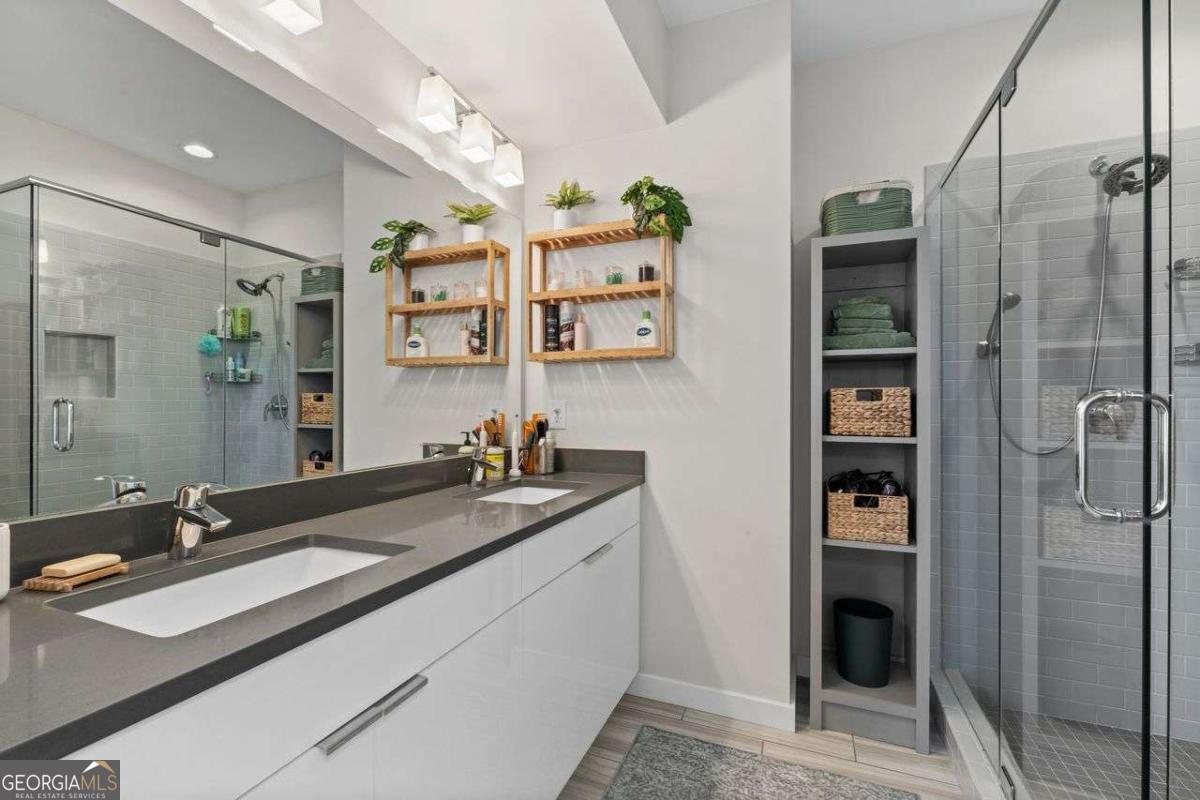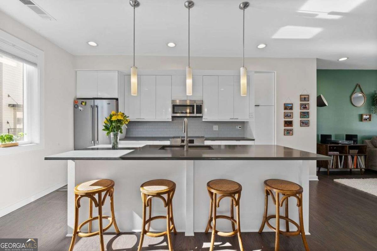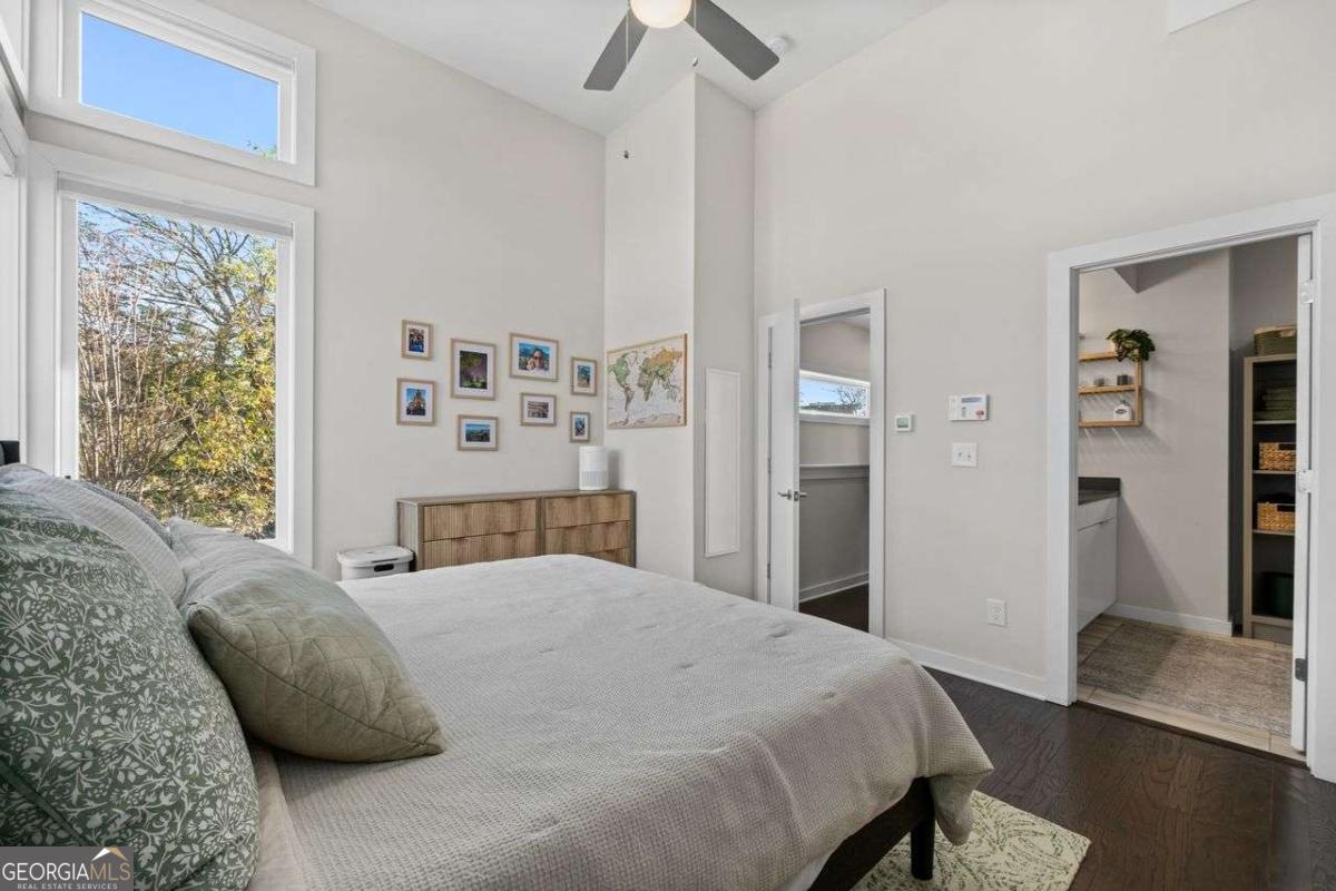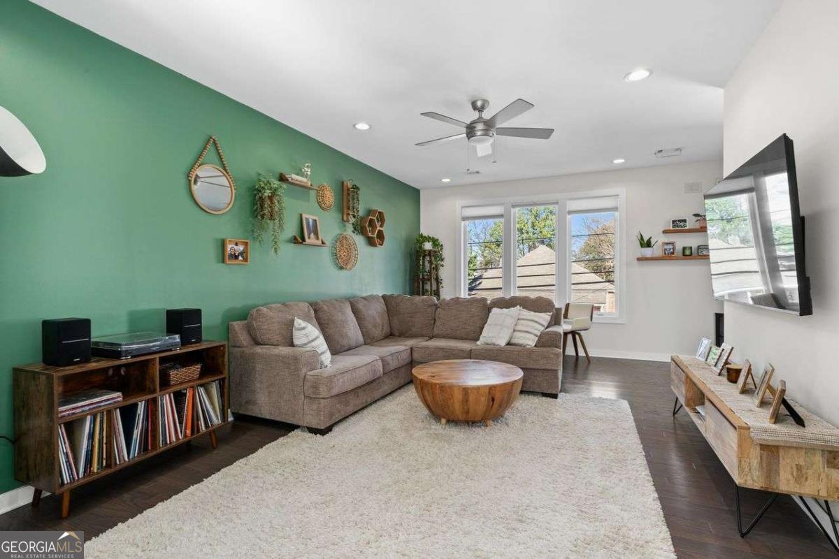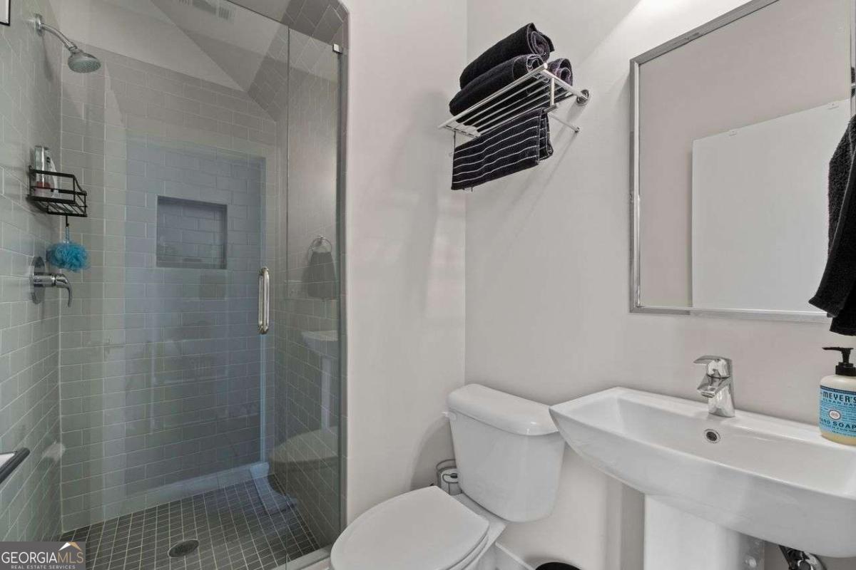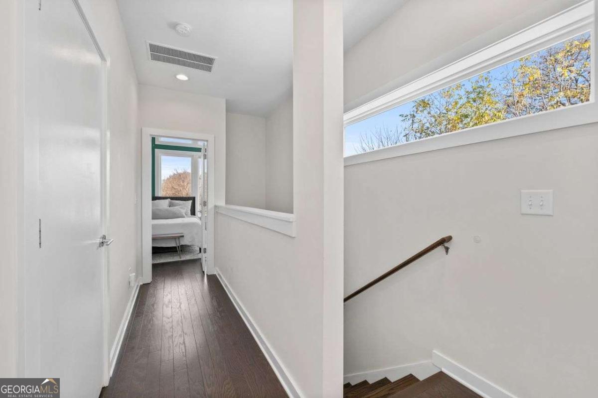 Welcome home to Four15 Stacks, where modern design meets unbeatable intown convenience! This stunning 4-bedroom, 3.5-bath end-unit townhome features the largest floorplan in the community and offers incredible indoor-outdoor living with a private rooftop terrace and a wrap-around side deck. Perfectly positioned less than half a mile from the BeltLine, Fetch Dog Park, Krog Street Market, Edgewood nightlife, coffee shops, restaurants, and more-this home places you right in the heart of Atlanta's most vibrant amenities. Flooded with natural light from its desirable northeast corner orientation, the main living level showcases an elegant, modern kitchen with white lacquer cabinetry, quartz countertops, high-end appliances, and a timeless ceramic tile backsplash. The spacious living room flows seamlessly onto the wrap-around deck, creating the ideal setting for relaxing or entertaining. A separate dining area provides defined space and elevated functionality not always found in contemporary townhome design. Upstairs, you'll find two bedrooms-each with its own en-suite bath. The luxurious primary suite boasts soaring ceilings, corner windows with custom blinds, dual custom closets with wooden shelving, vaulted storage, a double vanity, and a walk-in shower. The conveniently located laundry room is just steps away. Continue to the top level to discover your private rooftop retreat, featuring panoramic skyline views-a true showstopper for morning coffee or evening gatherings. The lower level offers two additional bedrooms, including one with a private full bath and another ideal for a home office, fitness space, or guest room. A rear-facing garage completes this thoughtfully designed layout. Residents also enjoy access to a community outdoor gathering area with seating and fire pit-perfect for connecting with friends and neighbors. Stylish, spacious, and perfectly located, this Four15 Stacks townhome delivers the best of intown living. Don't miss your chance to call it home!