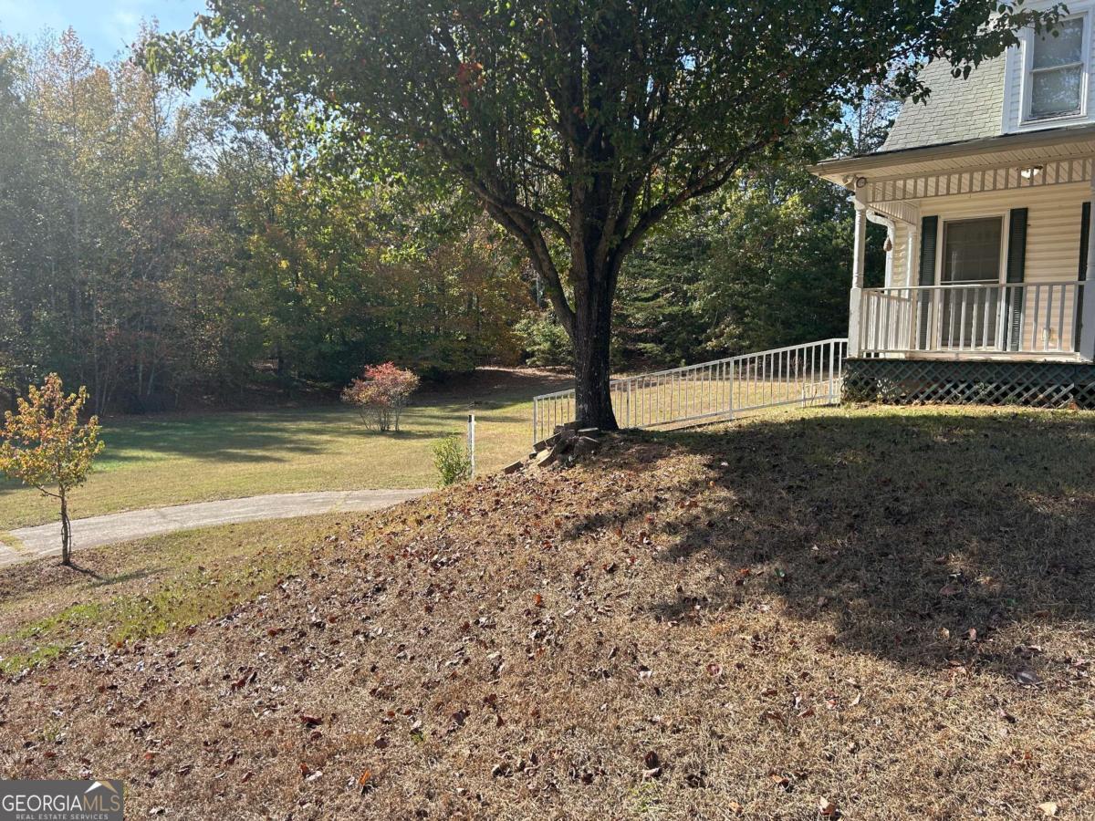 Beautiful private 10 acres and a quality home with Dawsonville Hwy frontage. 3 bedroom and 4.5 baths and a separate den/living area with mini kitchen Full Basement upstairs bedroom are private each with full baths. Master on the main with great closet and large bath. Vaulted great room with fireplace and built in bookshelves. Open Kitchen with updated cabinets and counter tops. Separate Dining room. Outdoors awaits with plenty of nature abound. Screen in porch on the back and open inviting rocking chair front porch.