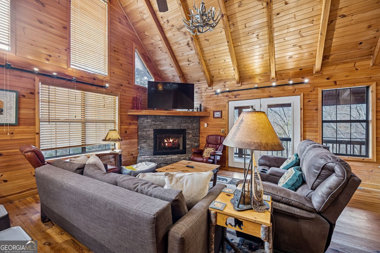 Stunning Toccoa Riverfront Property (over 1.5 acres), with mountain and river views. This spectacular 3/3 home and property provides something for everyone. Located in the 'Fishtrap Area', the river is stocked with various types of trout year round. Fly fishing enthusiasts must see this property, with access to the Toccoa River tailwater right outside your door. Experience unforgettable moments on the river deck, roasting marshmallows at the riverside firepit and enjoying the serenity of the river. There are three levels of covered decks/porches, including a private balcony from the master suite. Open and spacious floor plan, with wood floors, stacked stone fireplace (gas logs), soaring cathedral ceilings with exposed beams and lots of windows. Ideal Short Term Rental, with great rental history. This property boasts a fully booked calendar from March 1st through Thanksgiving, making it an excellent investment. For family use, plan a year in advance to secure your stay. Perfect for families with children, this property offers endless activities and amenities. Enjoy the river, nearby hiking trails, a game room, basketball area, and a relaxing hot tub. Convenient and cozy retreat where you will enjoy the relaxing and peaceful atmosphere, while being close to historic downtown attractions of Blue Ridge and McCaysville.