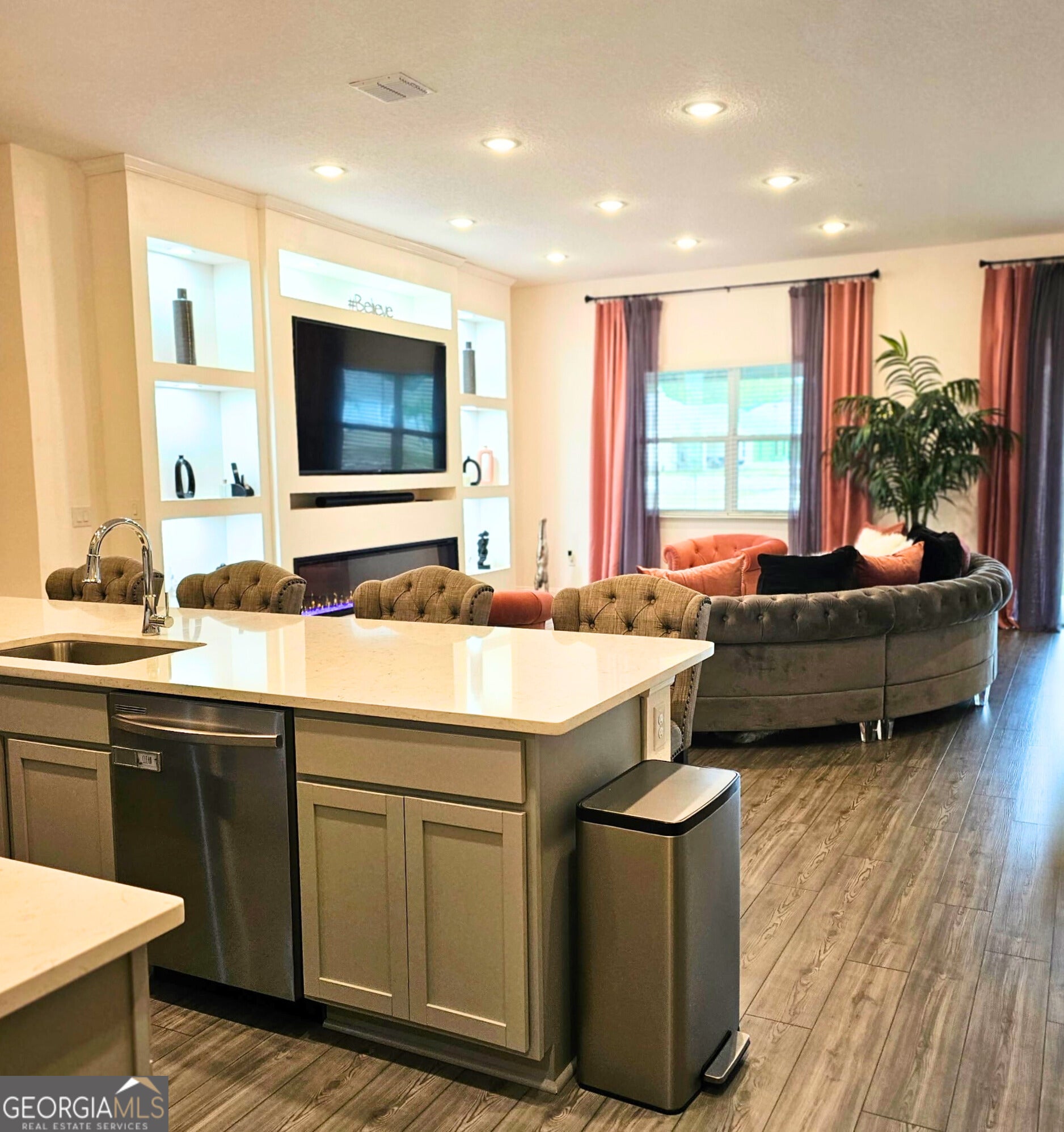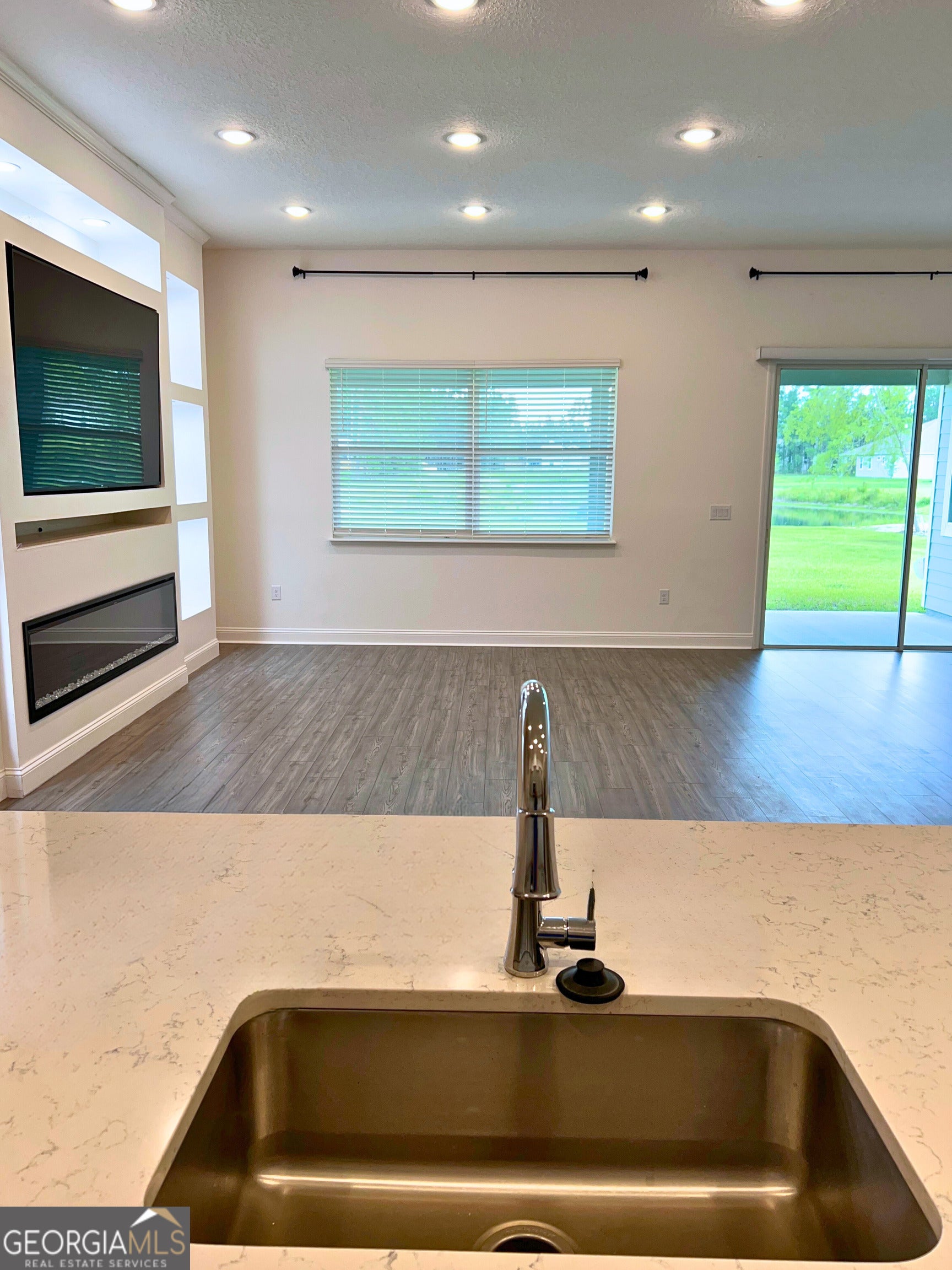 Available for rent in the sought-after gated community of Northshore in Kingsland, GA - this stunning 4-bedroom, 3-bathroom home built in 2024 offers over 3,300 square feet of like-new living space packed with premium upgrades. Step inside to discover a spacious, open layout featuring tall ceilings, 8-foot interior doors, and luxury vinyl plank flooring throughout. The triple-split floor plan provides privacy and functionality, ideal for families or roommates. The main living area boasts a custom-built media wall and a modern electric fireplace and a large screen TV that is being left as a courtesy.- perfect for cozy evenings or entertaining guests. The gourmet kitchen is equipped with an oversized quartz island, stainless steel appliances, soft-close cabinetry, walk-in pantry, and a wet bar that opens to the dining area. The private primary suite offers a serene retreat with a sitting area, dual walk-in closets, and a spa-style bathroom complete with double vanities, soaking tub, tiled walk-in shower, and private water closet. Two bedrooms with a shared full bath and additional storage are located in a separate wing, while a guest bedroom and adjacent bath sit near the front of the home, along with a flexible office or bonus room. Enjoy peaceful pond views and outdoor relaxation on the covered back porch surrounded by upgraded landscaping, palm trees, custom concrete curbing, and perimeter lighting. Additional highlights include: 3-car garage with epoxy-coated floors and upgraded lighting Tile showers in all bathrooms Whole-home water softener and treatment system Dedicated laundry room Painted interior doors & upgraded towel racks throughout Don't miss your chance to live in one of Kingsland's premier gated communities. Schedule your showing today - this home won't last long! Lease term is for a minimum of 12 months. Minimum monthly income requirement is $8700. No Cats, small dogs considered. Anyone over the age of 18 that will be residing in the home must fill out an application. Application fee is $60 and is non refundable. **HOME IS TENANT OCCUPIED, A 24 HOUR NOTICE PRIOR TO SHOWING IS REQUIRED. **