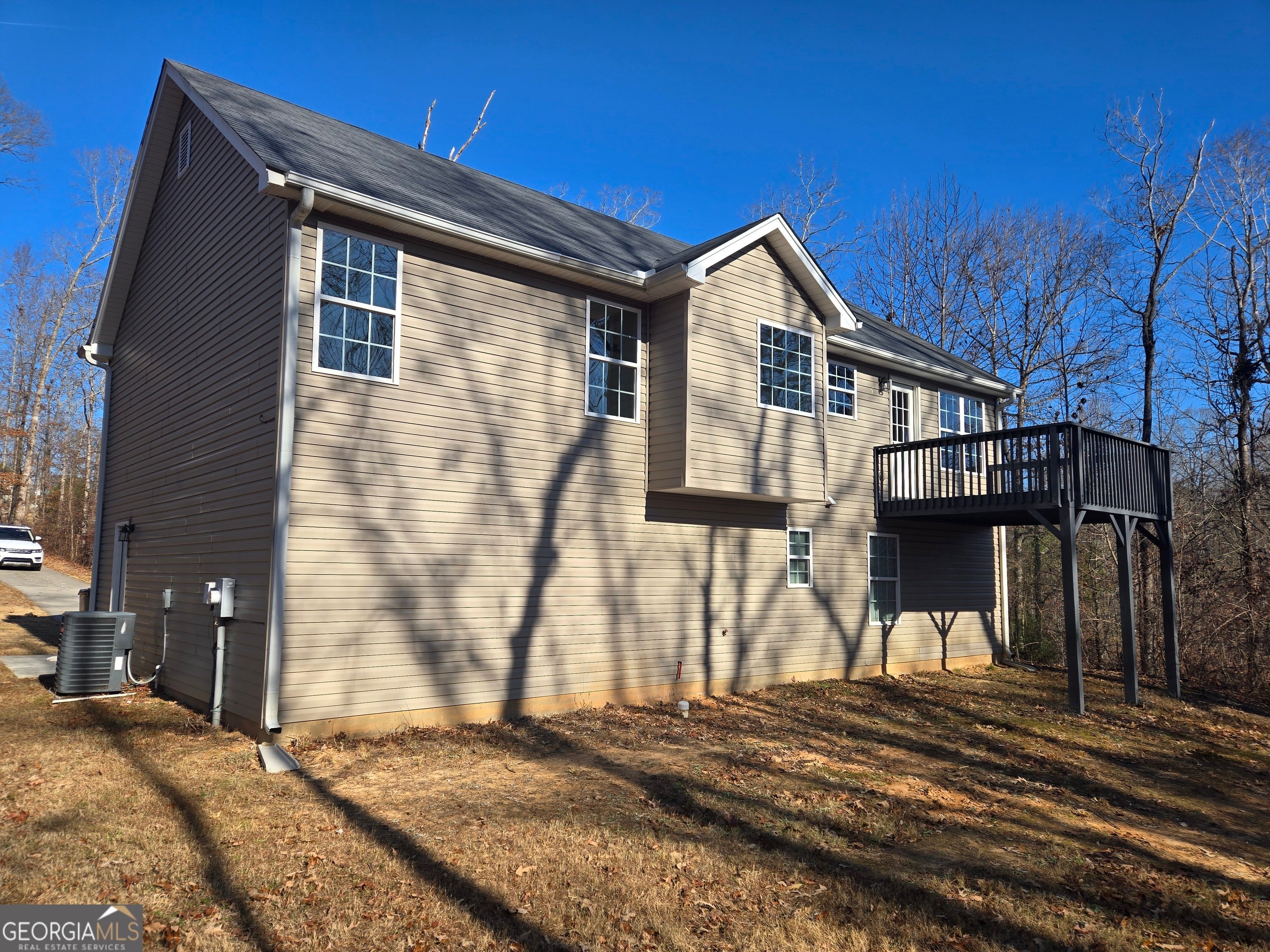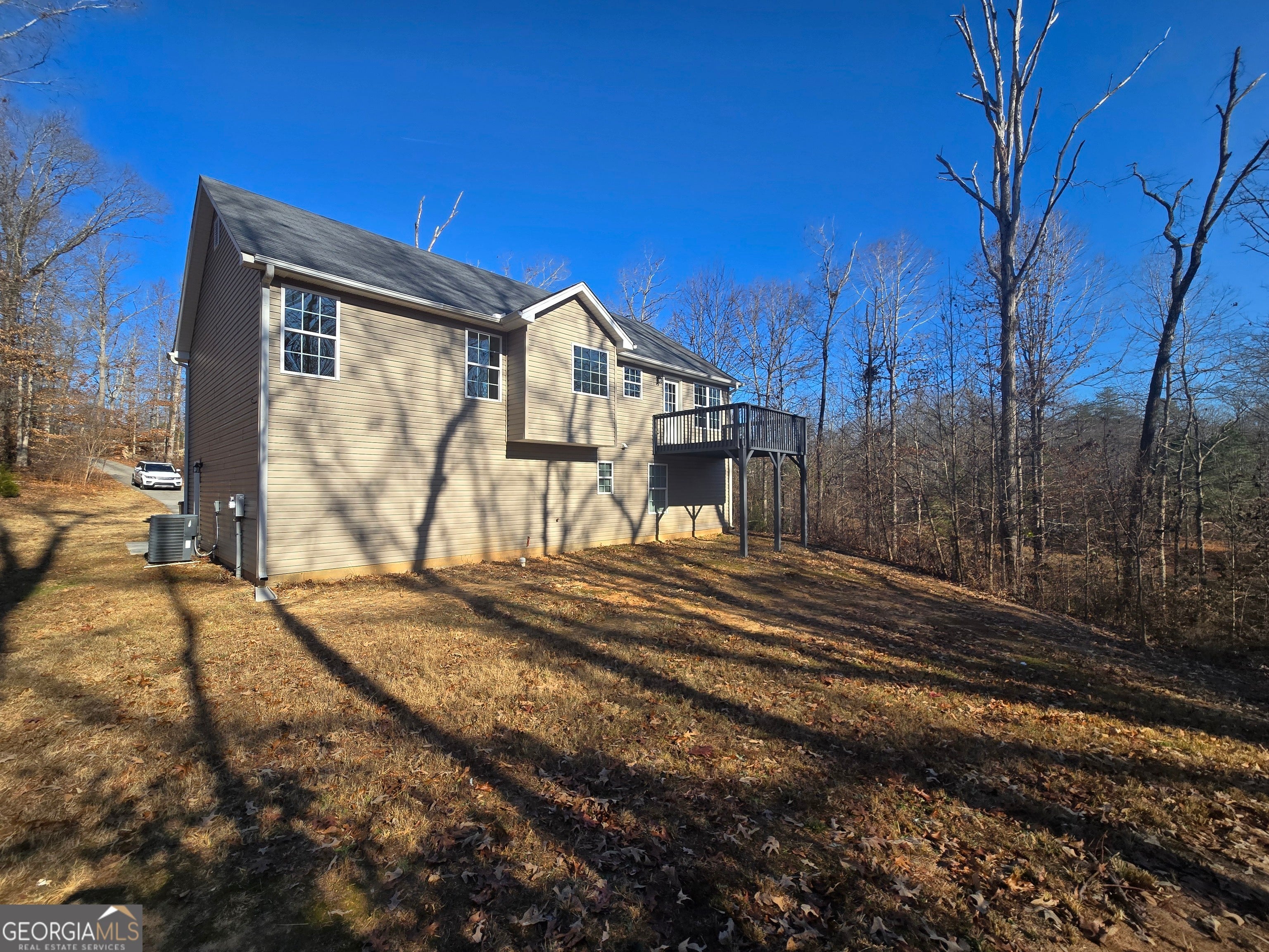 Experience the perfect blend of in-town convenience on 3.7 acres with a large creek and a serene wooded lot. There is no HOA. New paint and carpet throughout. New stainless steel appliance package with a side-by-side French door refrigerator included. The lower area is ready for customization and has heat and air, as well as electrical and plumbing in place. The oversized garage features room for a shop or storage and 2 cars with new door openers. Just a couple of miles to the vibrant and growing New Holland shopping district, Northeast Medical Center, and thriving downtown Historic Gainesville. Don't miss the opportunity to own 3.7 Acres with waterfrontage!