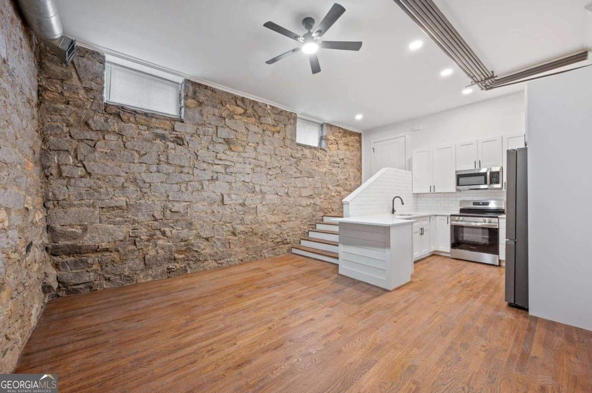 Come Check this Fully Renovated 1/1 w/ Office/Bonus Room in the Historic Deerfield Building. Where Modern Meets Historic this unit features Complete Open Floor Plan w/ Exposed Stone Walls makes this unit One-Of-A Kind. The unit features 12ft+ Ceilings throughout. New Kitchen w/ Custom Cabinets & Shelving, Eat at Bar,, New SS Appliances, Custom Backsplash and Quartz Countertops. Large Living Room. Spacious Bedroom & New Bath. Second Room Could be Office/Bedroom. New Washer & Dryer Included. . Close to Midtown, Ponce City Market, Atlanta Beltline. Fox Theater & Everything Downtown Atlanta has to offer! Ask the Agent about other Units! Off Street Parking Available at extra cost and plenty of On Street Parking on Durant Place.