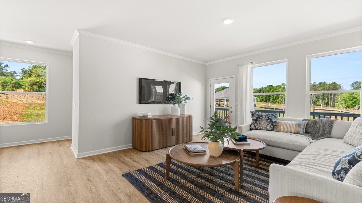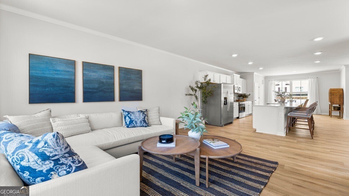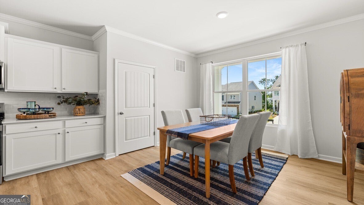 Welcome to the hottest new community in Flowery Branch, GA, Waypoint that is home to 6728 Leigh Street. This new Addington plan is a three-story townhome featuring 3 bedrooms, 2.5 bathrooms, and a 2-car rear-entry garage. Step into this exquisite home from the covered front porch, into the open layout floorplan. The dining room is immediately to the right and open to the updated kitchen. The chef of the family will love this kitchen with stainless-steel appliances, white quartz countertops, subway tile backsplash, and center island. A living area and a powder room are situated on the other side of the kitchen with access to the back deck. The perfect set-up to enjoy quality time with family and friends. The bedrooms are located on the next floor up, along with the laundry room. The spacious primary suite offers a luxurious en-suite bathroom and large walk-in closet. Two secondary bedrooms and an additional bathroom sit across the landing from the primary suite. Don't forget about the dive-under 2-car garage at the bottom level, that also offers abundant storage space. Come out to Waypoint today to get your personal tour of 6728 Leigh Street!