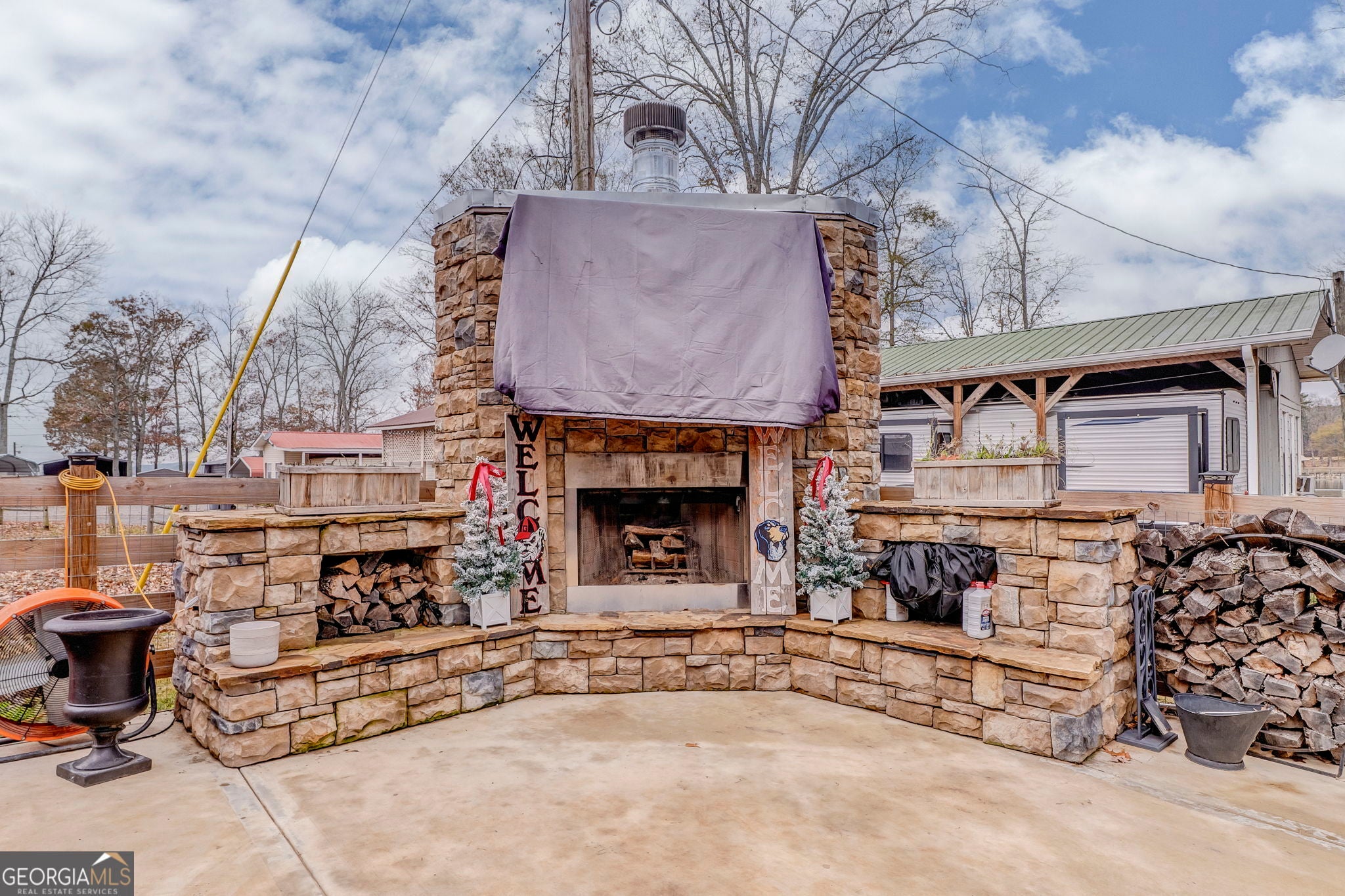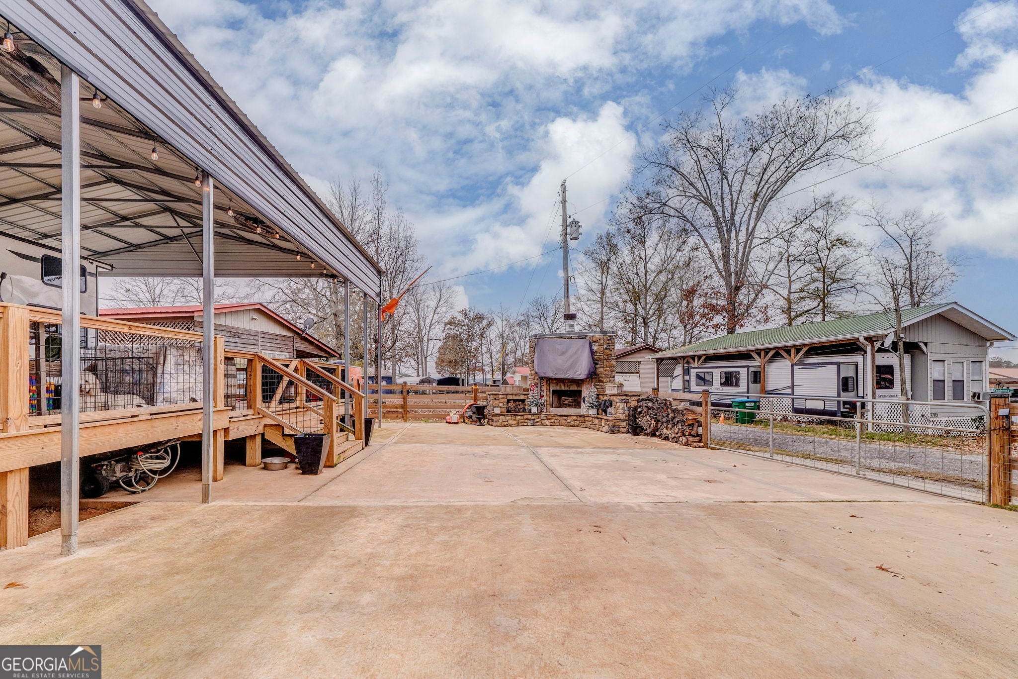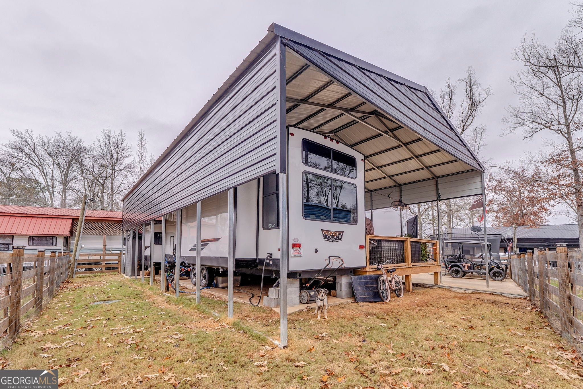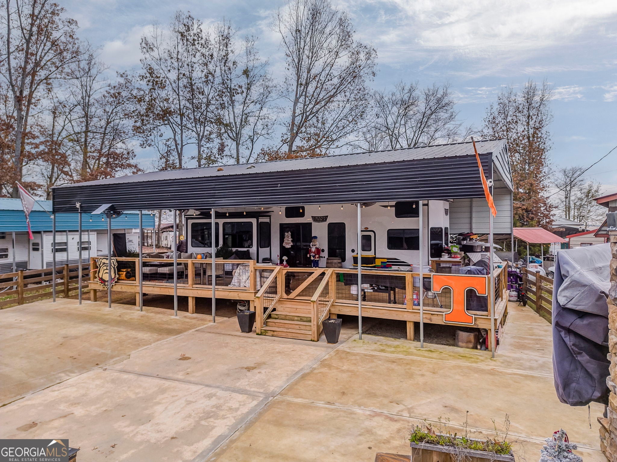 Enjoy turnkey lake living with this beautifully upgraded 2023 Forest River Wildwood Grand Lodge 42DL, valued at nearly $60,000 and loaded with high-end improvements. This setup features a concrete pad, sewer hookup, and a stunning covered deck and porch. This is ideal for year-round enjoyment. Relax or entertain around the custom-built fireplace with mounted TV, all within a fully fenced area for privacy. Significant investments have been made throughout, including the deck, cover, concrete, fencing, and utilities. Located in a prime spot with shared boat access and year-round water, this property offers the perfect blend of comfort, convenience, and lake-life fun. Move in and start enjoying immediately.