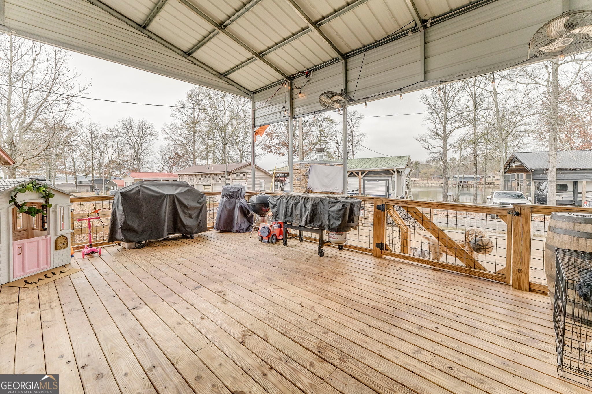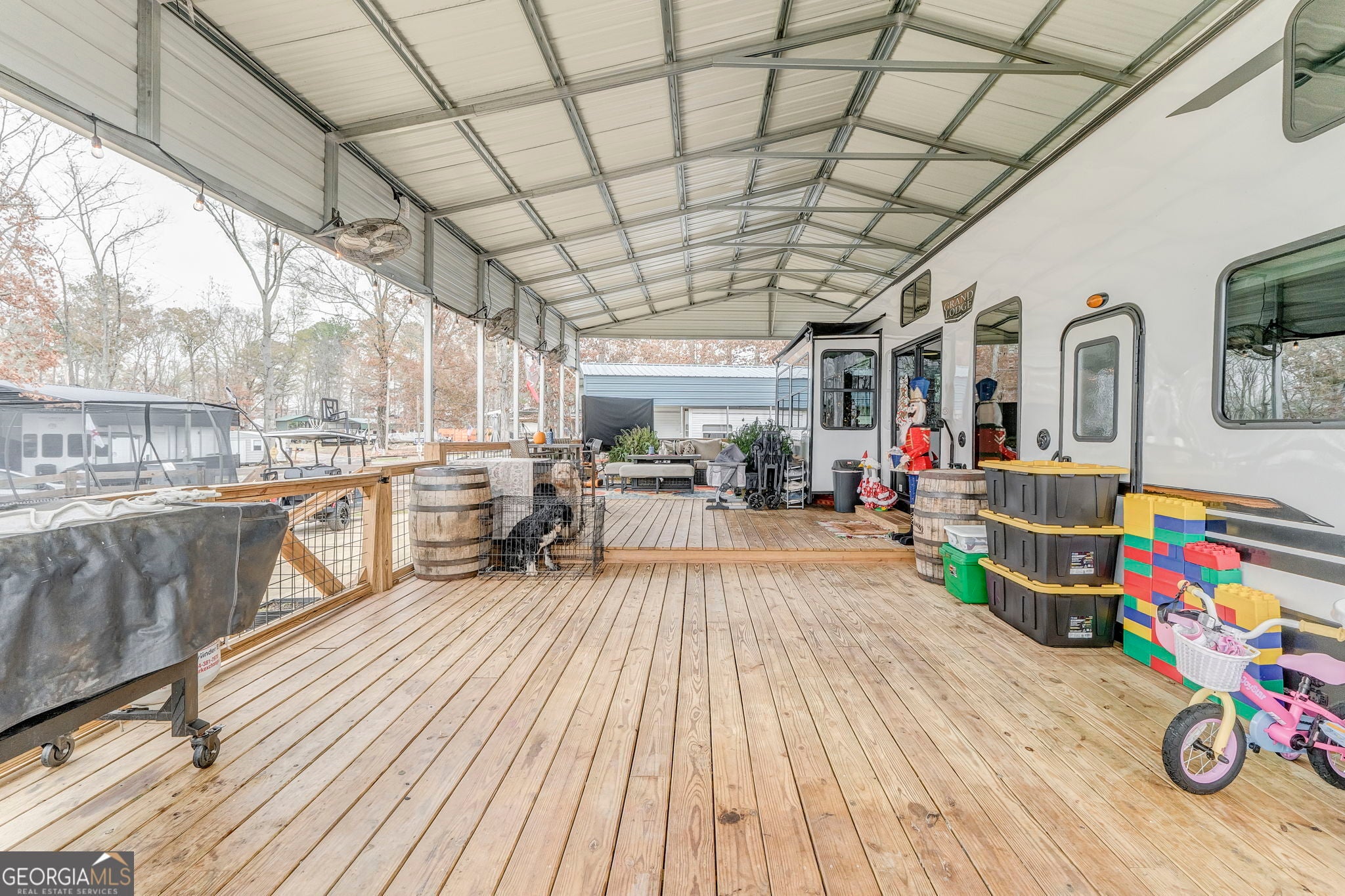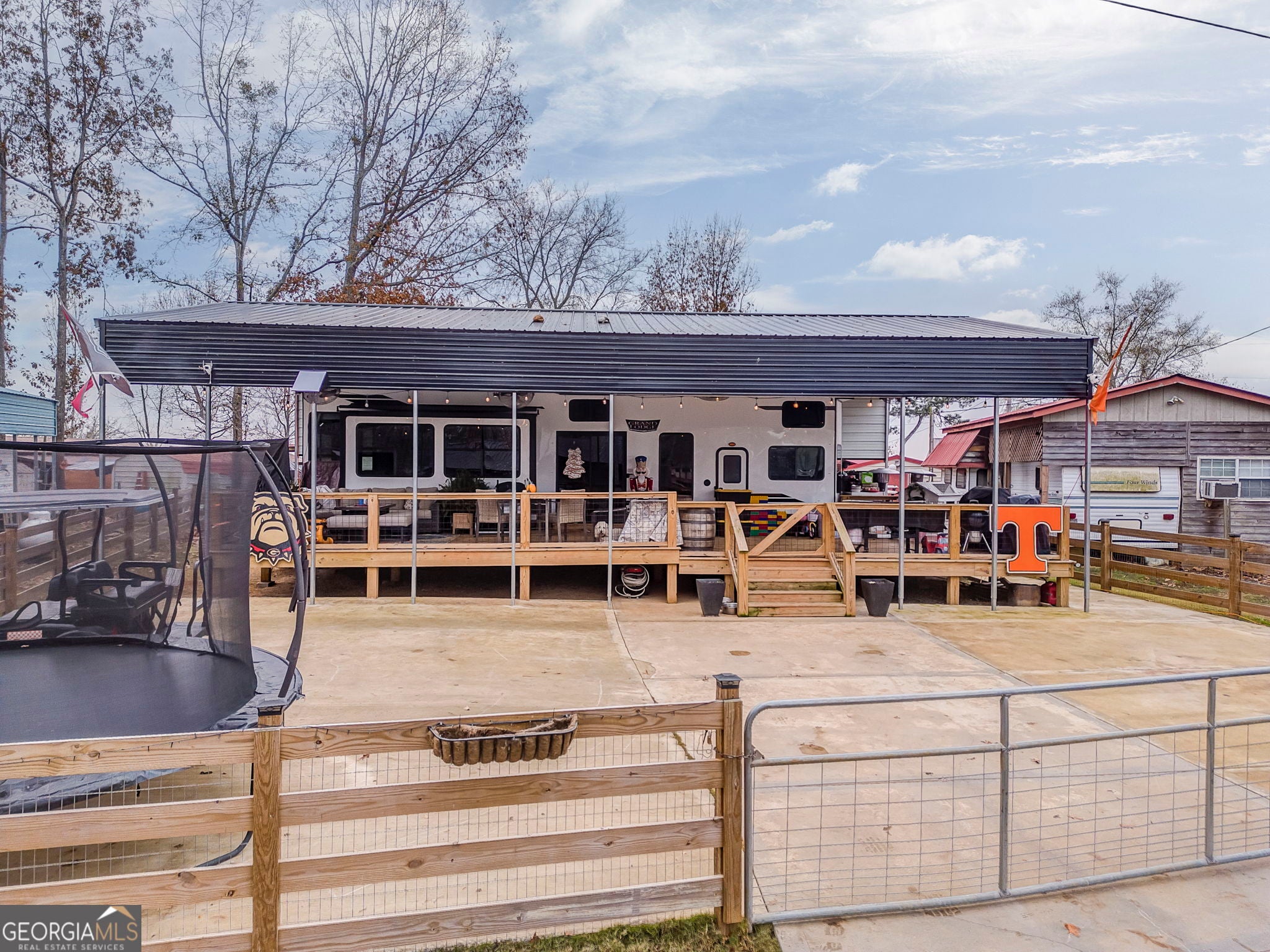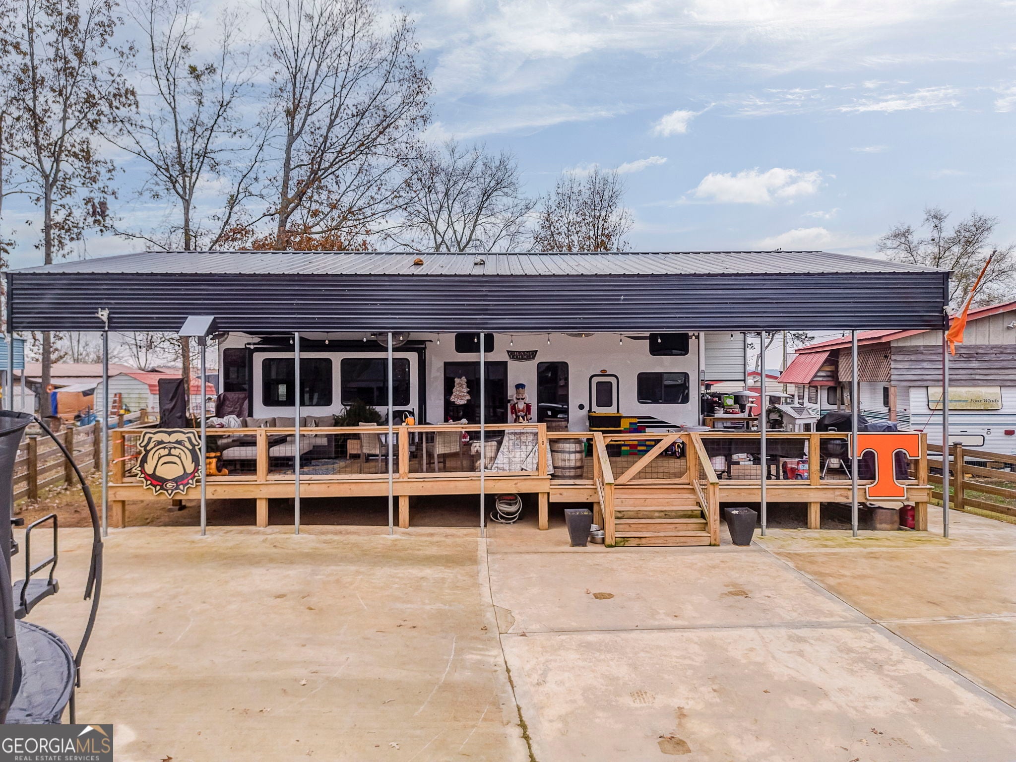 Enjoy turnkey lake living with this beautifully upgraded 2023 Forest River Wildwood Grand Lodge 42DL, valued at nearly $60,000 and loaded with high-end improvements. This setup features a concrete pad, sewer hookup, and a stunning covered deck and porch. This is ideal for year-round enjoyment. Relax or entertain around the custom-built fireplace with mounted TV, all within a fully fenced area for privacy. Significant investments have been made throughout, including the deck, cover, concrete, fencing, and utilities. Located in a prime spot with shared boat access and year-round water, this property offers the perfect blend of comfort, convenience, and lake-life fun. Move in and start enjoying immediately.