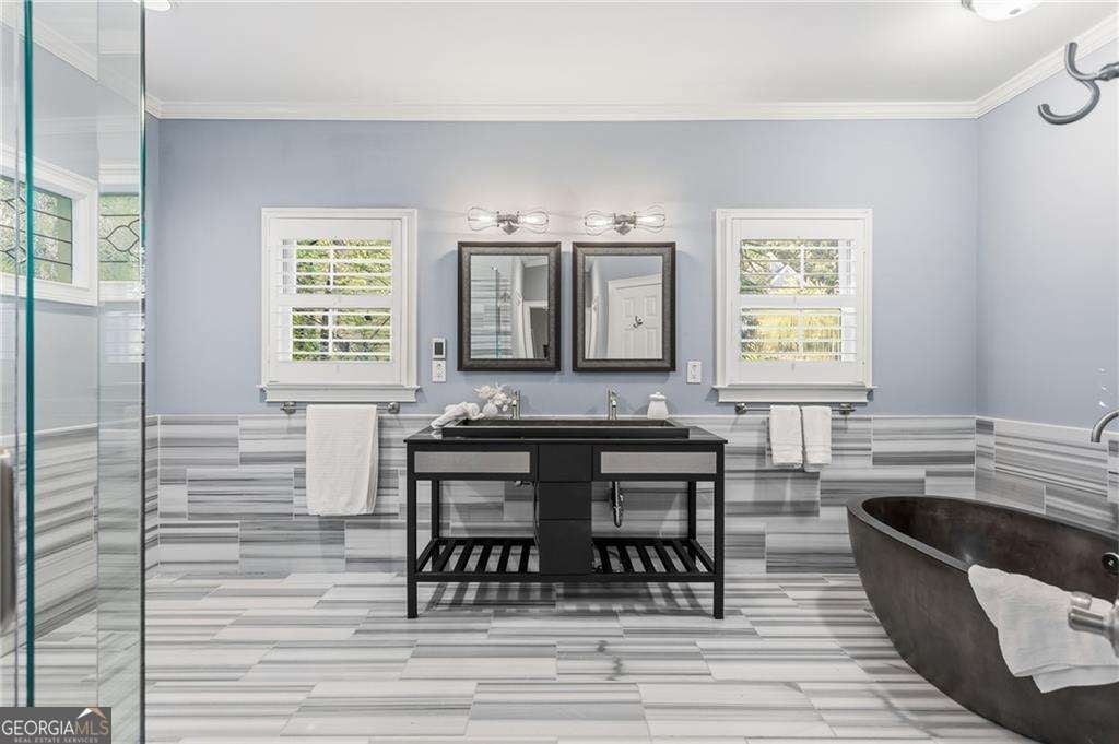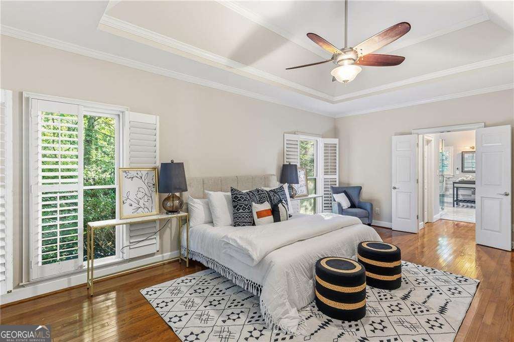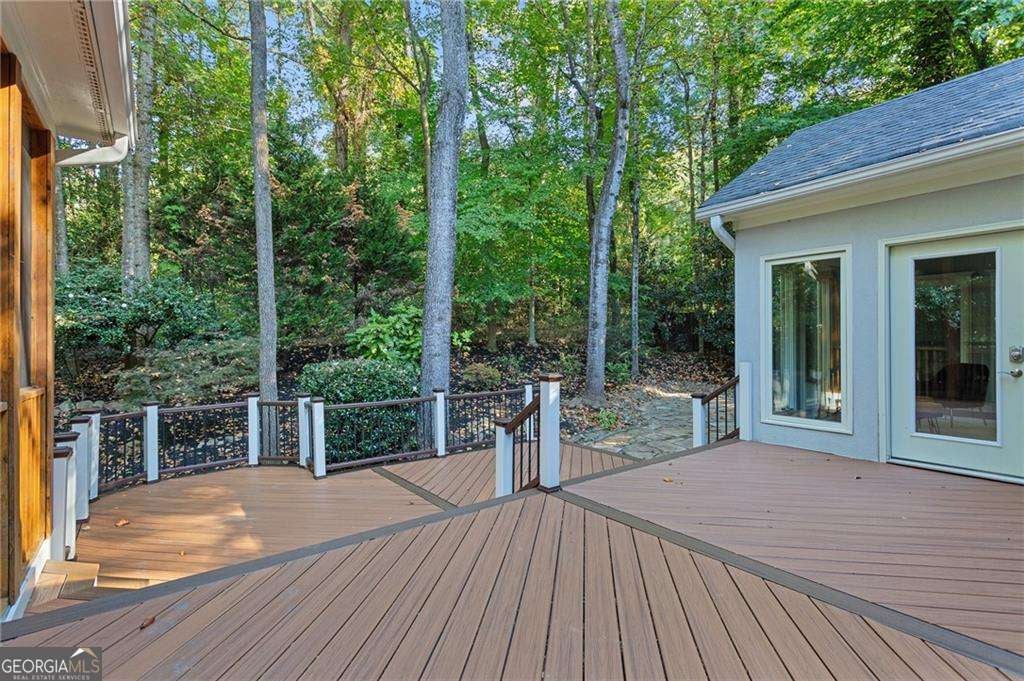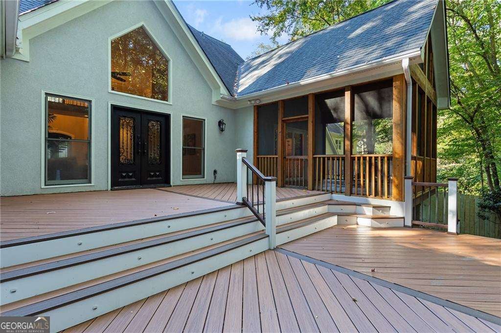 Welcome to an exquisitely appointed private retreat, masterfully designed for elevated entertaining and refined everyday living. Nestled on a lush 0.30-acre homesite, this distinguished 4-bedroom, 3.5-bath residence spans approximately 2,979 square feet of thoughtfully curated living space. Entry through stately iron-framed French doors reveals gleaming hardwood floors, dramatic tray and vaulted ceilings, and bespoke built-in bookcases that lend architectural depth and timeless character. The living room is elegantly anchored by a gas-starter fireplace, creating a warm yet sophisticated setting for intimate evenings or stylish gatherings. The heart of the home is the renovated gourmet kitchen, where form meets function in spectacular fashion. Upgraded appliances and counters, an expansive statement island, refined task lighting, and a sunlit breakfast room create a space equally suited for culinary creativity and casual elegance. From the kitchen, living spaces flow seamlessly to a screened porch, sunroom, and an impressive deck overlooking a stone patio-each framed by mature, manicured landscaping that offers both beauty and privacy. The main-level primary suite is a true sanctuary, featuring heated tile floors, a newly refinished soaking tub, dual vanities, a generous walk-in closet, and a spa-inspired shower designed for daily indulgence. Upstairs, secondary bedrooms offer en-suite baths and serene accommodations, complemented by a versatile loft or workspace and abundant storage, including permanent attic stairs providing easy access to additional space. Throughout the home, premium finishes and thoughtful upgrades-including double-pane windows-reflect a commitment to quality and enduring design. Ideally positioned just minutes from Buckhead and Midtown Atlanta, this exceptional residence delivers the rare balance of luxury, comfort, and convenience. This is not simply a home, but a lifestyle-where every finish, floor plan decision, and outdoor space has been intentionally curated to elevate the everyday.