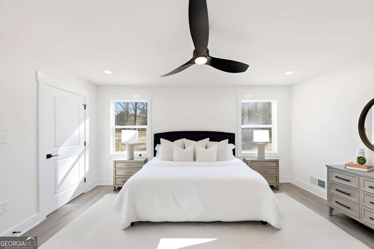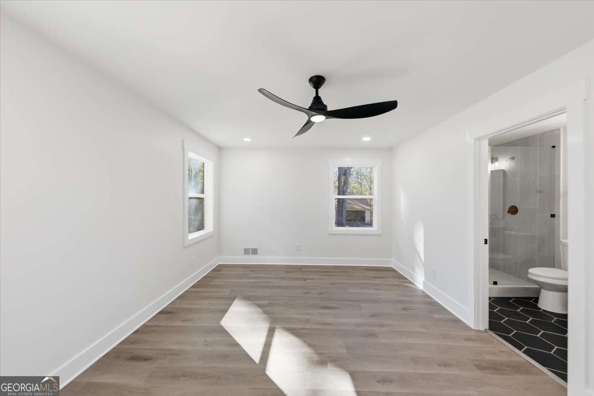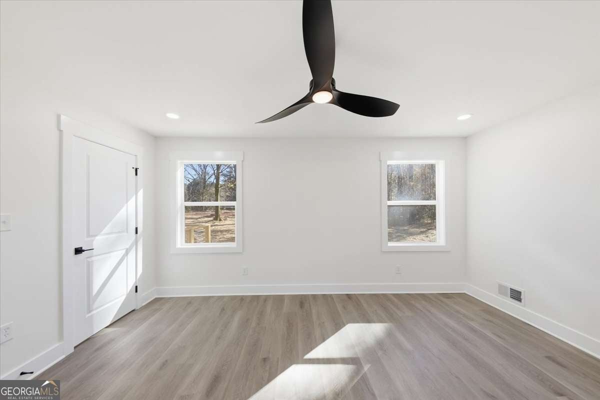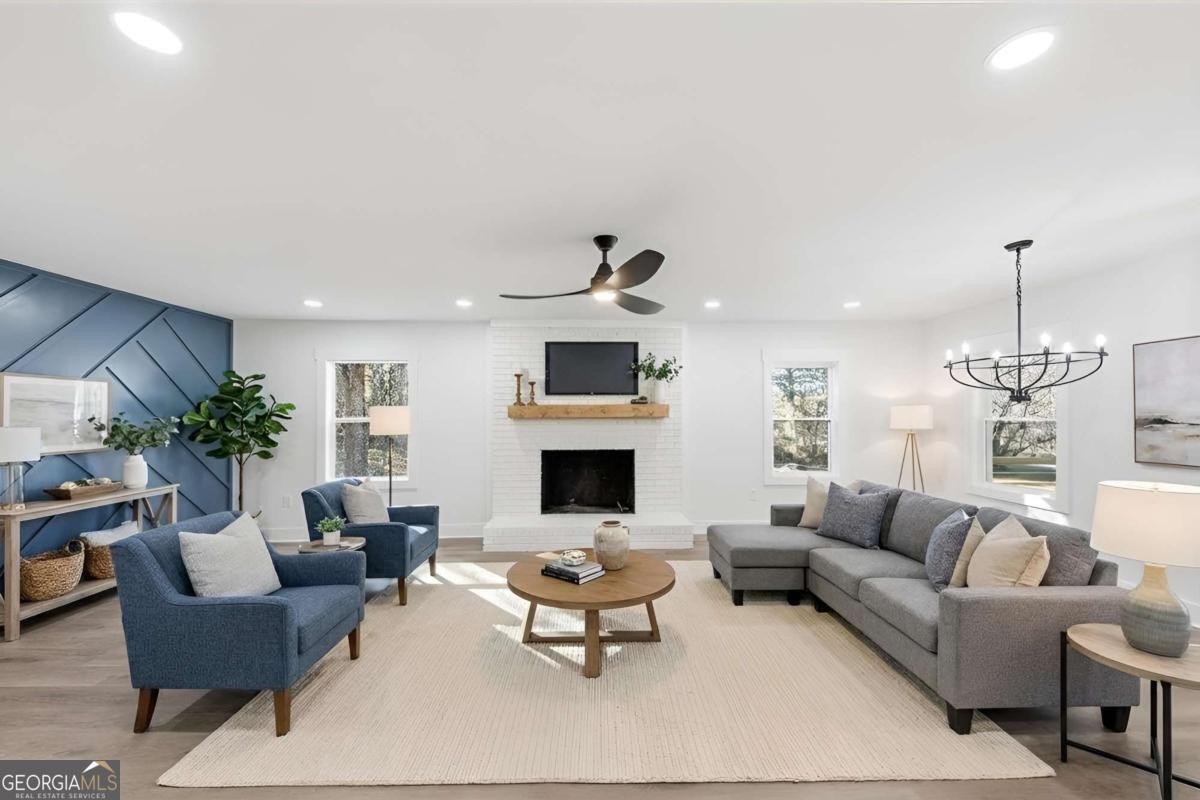 Welcome to this fully renovated Modern Farmhouse with cottage charm, perfectly set on a private 1.88-acre lot in one of Fayetteville's most sought-after school districts. This stunning 4-bedroom, 4.5-bath home has been completely transformed and offers the look, feel, and functionality of new construction, without the HOA. An inviting, oversized front porch sets the tone for relaxed farmhouse living, while the bright, open interior is filled with natural light and thoughtful design. The primary suite on the main level offers a true retreat, complete with a beautifully updated spa-style bathroom. Each secondary bedroom is located upstairs and features its own private en-suite bathroom, providing comfort and privacy for family and guests alike. The open-concept kitchen is a showstopper, featuring brand-new cabinetry, stainless steel appliances, modern finishes, and seamless flow into the family room-ideal for entertaining and everyday living. Additional highlights include a large mudroom, side-entry garage, updated bathrooms throughout, and stylish new lighting and flooring. No detail was overlooked in this renovation: new exterior batten siding, new interior and exterior paint, new doors and windows, updated plumbing and electrical, new flooring, and a tankless water heater ensure peace of mind for years to come. Step outside to a spacious back deck overlooking a private, wooded backyard, perfect for quiet mornings, gatherings, or future outdoor enhancements. Enjoy the freedom of no HOA and a prime location with easy access to Kiwanis Park, Pinewood Studios, Fayette Pavilion, Peachtree City shopping and dining, and top-rated schools-offering the perfect blend of privacy, convenience, and lifestyle. This home is truly one of a kind and move-in ready. Schedule your private tour today and experience the charm, space, and elevated living this exceptional home provides. ***OPENHOUSE on Saturday, December 20th from 1:30 to 3:30 pm***
