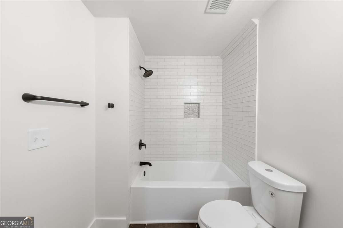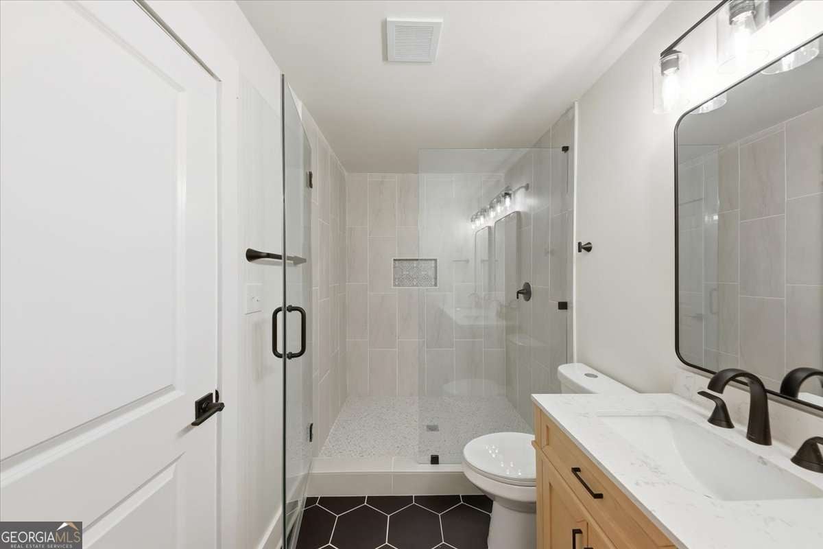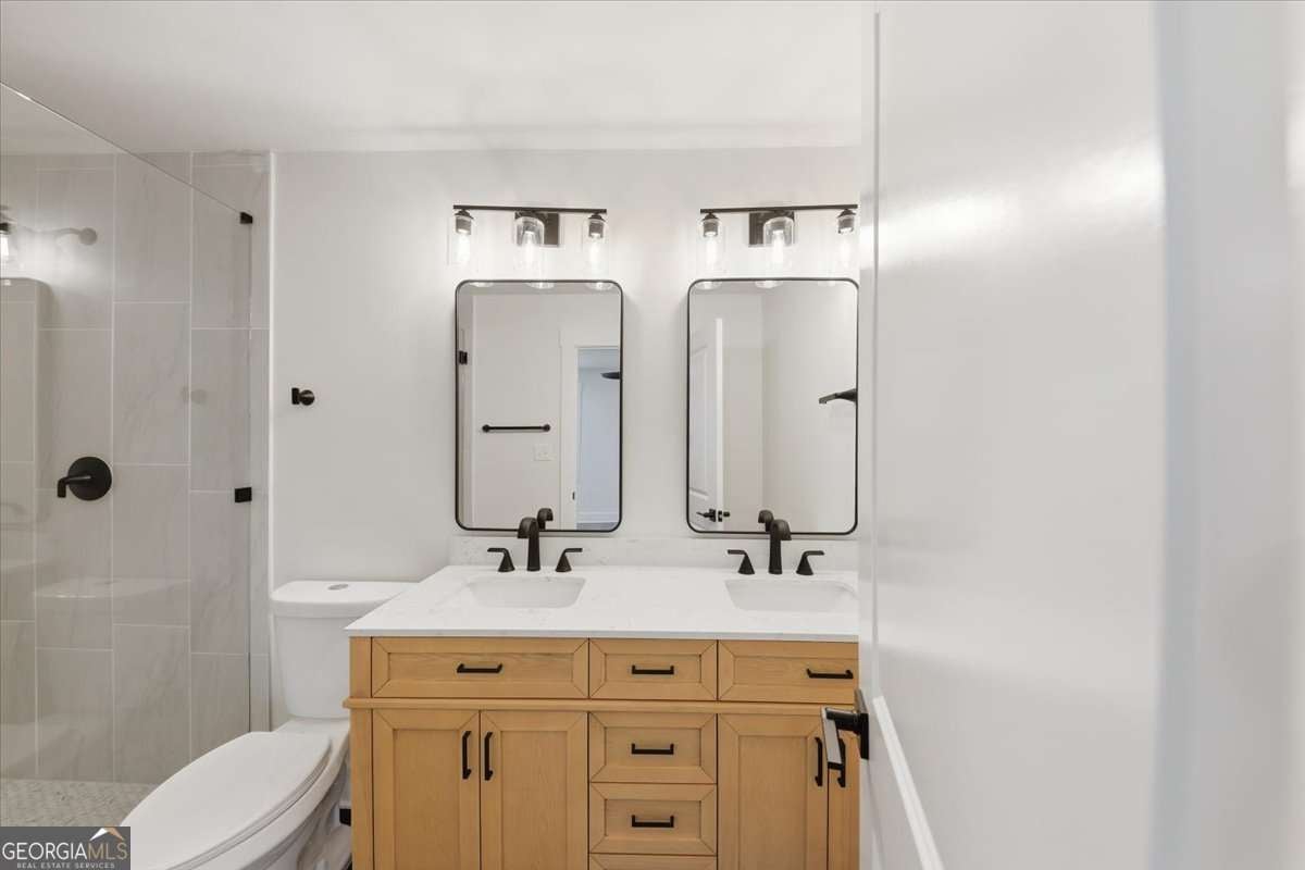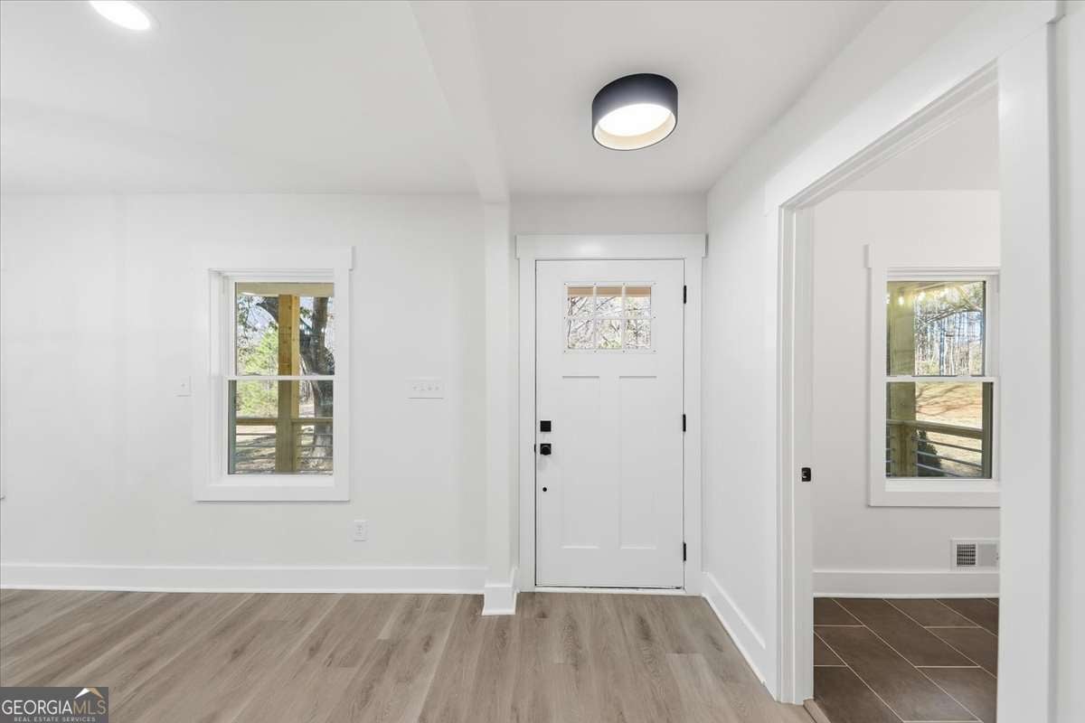 Welcome to this fully renovated Modern Farmhouse with cottage charm, perfectly set on a private 1.88-acre lot in one of Fayetteville's most sought-after school districts. This stunning 4-bedroom, 4.5-bath home has been completely transformed and offers the look, feel, and functionality of new construction, without the HOA. An inviting, oversized front porch sets the tone for relaxed farmhouse living, while the bright, open interior is filled with natural light and thoughtful design. The primary suite on the main level offers a true retreat, complete with a beautifully updated spa-style bathroom. Each secondary bedroom is located upstairs and features its own private en-suite bathroom, providing comfort and privacy for family and guests alike. The open-concept kitchen is a showstopper, featuring brand-new cabinetry, stainless steel appliances, modern finishes, and seamless flow into the family room-ideal for entertaining and everyday living. Additional highlights include a large mudroom, side-entry garage, updated bathrooms throughout, and stylish new lighting and flooring. No detail was overlooked in this renovation: new exterior batten siding, new interior and exterior paint, new doors and windows, updated plumbing and electrical, new flooring, and a tankless water heater ensure peace of mind for years to come. Step outside to a spacious back deck overlooking a private, wooded backyard, perfect for quiet mornings, gatherings, or future outdoor enhancements. Enjoy the freedom of no HOA and a prime location with easy access to Kiwanis Park, Pinewood Studios, Fayette Pavilion, Peachtree City shopping and dining, and top-rated schools-offering the perfect blend of privacy, convenience, and lifestyle. This home is truly one of a kind and move-in ready. Schedule your private tour today and experience the charm, space, and elevated living this exceptional home provides. ***OPENHOUSE on Saturday, December 20th from 1:30 to 3:30 pm***