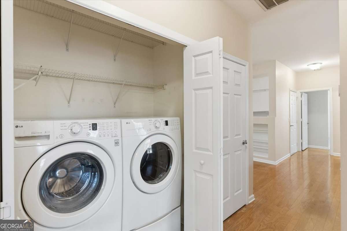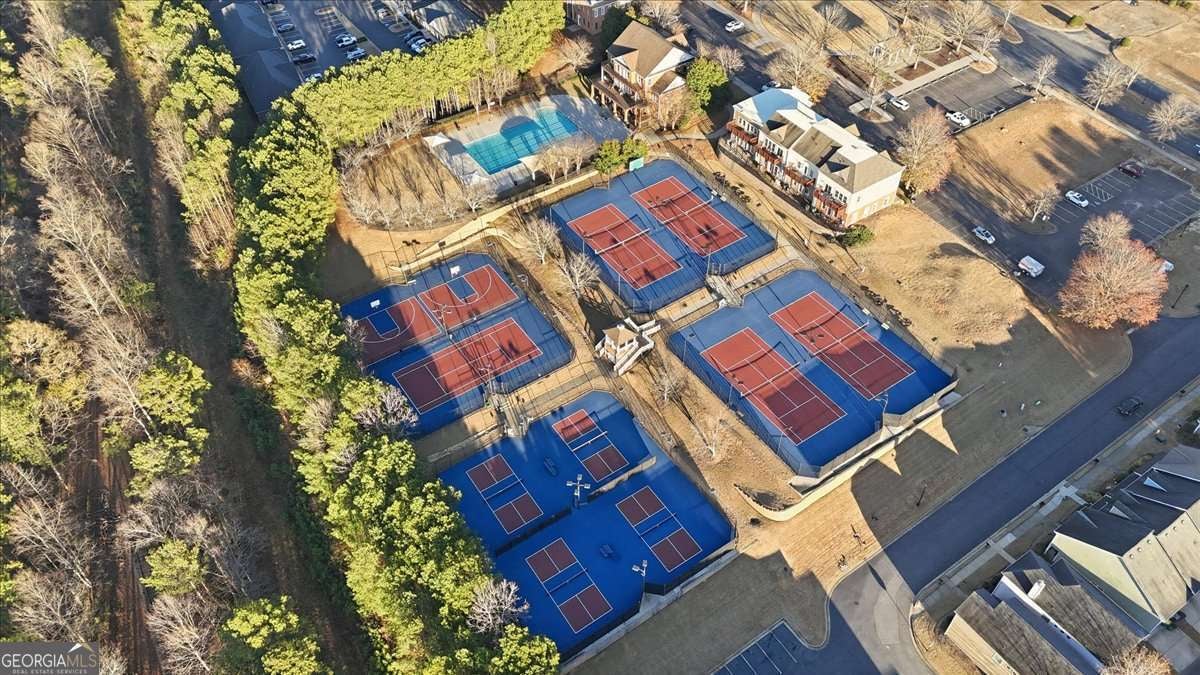 Start off the new year in your new home! The home features 9-foot ceilings, a fireplace flanked by built in shelving, two bedrooms with access to their own bathrooms, and flex/open area that would make a great office, dining or play room. The kitchen overlooks the spacious family room with lots of natural light. Upgraded stainless steel appliances and washer and dryer remain with the home! The courtyard has a privacy fence, covered patio, and even a doggy door! Updates include built in shelving in the closets, new water heater in 2024, and garage door/opener were replaced in August of 2025. The neighborhood offers so many wonderful amenities including an Olympic-sized swimming pool, a clubhouse, tennis courts, pickleball courts, a basketball court, playground, pavilion, and fitness center! You are also walking distance to the neighborhood cafe, Cafe Bom Dia, and bakery, Bananas and Beehives, in this great live, work and play community. It's conveniently located minutes from Downtown Woodstock, one exit north of the The Outlet Shoppes at Atlanta, and easy access to the Peach Pass Express Lanes. Welcome home!