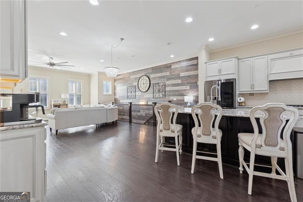 Experience the height of easy luxury in this four-bedroom townhome, where modern refinement meets absolute comfort. The open main level features hardwood floors and an upgraded kitchen with granite countertops and a convenient coffee bar area. The living space is meticulously designed, offering a large sitting area anchored by a wall nook that allows for an oversized television to sit flush, ensuring clean lines and maximum style. Abundant natural light pours into this level, enhancing the upscale vibe. The upper-level hosts three large private bedrooms, while the versatile lower level provides an exceptional oversized fourth bedroom with a full ensuite bath and its own private entrance. This space is perfectly adaptable as a secluded guest suite, a larger home office, or an additional media room. Another plus ? The expanded garage is over-sized to allow for larger vehicles. Enjoy unparalleled walkability to Reformation Brewery, the public walking trails and the Woodstock Amphitheater for Summer concerts and great live events. Furthermore, anticipate even greater local ease with the new Publix opening in 2026 just a short distance away. Nestled less than one mile from Exit 8 on 575, this location is perfect for those on the go. Or stay local and enjoy Downtown Woodstock's award-winning restaurants, boutique shopping, and premier entertainment. This is more than a home-it is a coveted downtown address offering a sophisticated, low-maintenance lifestyle.