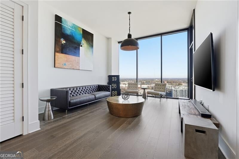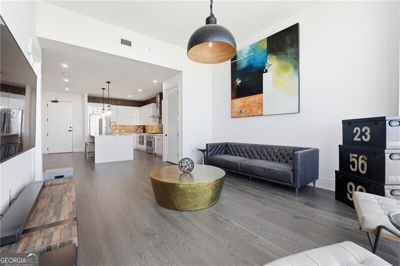 CALLING ALL INVESTORS - transferable LEASING PERMIT and PRICED BELOW 2021 developer pricing! Soaring above West Midtown is Unit 1806, a PENTHOUSE level 1BR, 1BA condo that spans nearly 1,000 square feet. With 11-foot ceilings and dramatic floor-to-ceiling windows, this space lives exceptionally large and the views are spectacular! Kitchen features stainless steel KitchenAid appliances, gas range, quartz countertops with waterfall island, and sleek white lacquer cabinetry with plenty of storage space. The generous-sized bedroom is complemented by a large bathroom with dual vanities, quartz countertops, frameless glass shower door with shower head and wand, laundry closest with stackable washer and dryer, and a large walk-in closet. Seven88 West Midtown's amenities include 24/7 concierge, fitness center, pool, hot tub, out-door gathering spaces and grilling area, club room with kitchen and billiards table, storage room access, indoor dog walk and dog spa, and electric car charging access. Two PRIME covered parking spots located near elevator. Close to restaurants, shopping, Georgia Tech, and all West Midtown has to offer!!