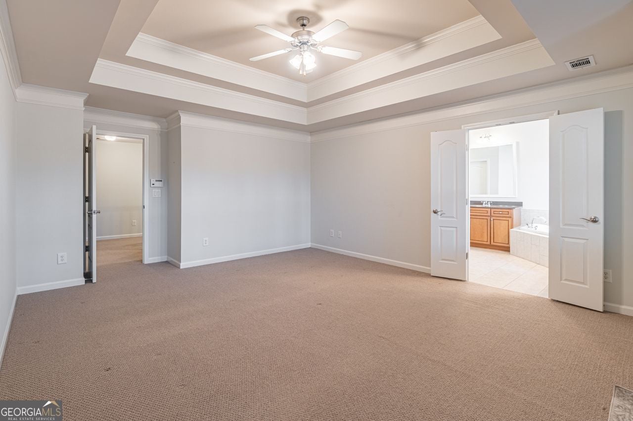 - Interior FeaturesDouble Vanity, Pulldown Attic Stairs, Tray Ceiling(s), Walk-In Closet(s)